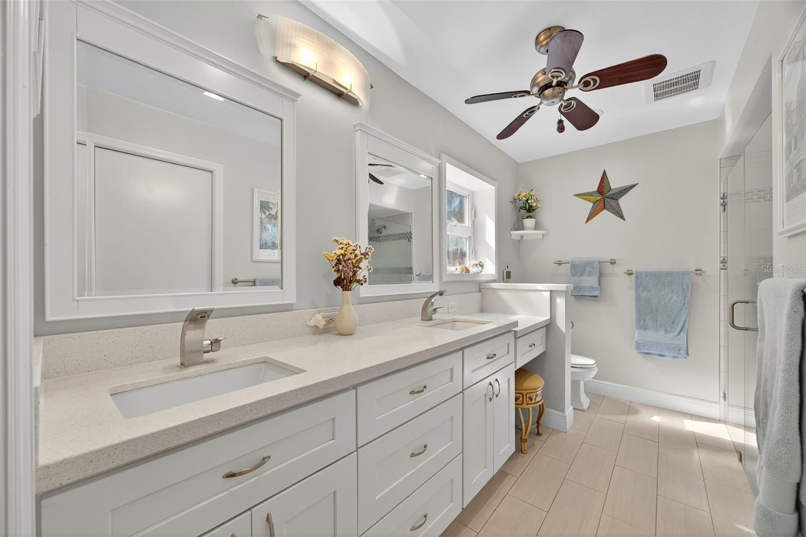 - Ceiling Fans(s), Primary Bedroom Main Floor, Solid Surface Counters, Solid Wood Cabinets, Thermostat, Walk-In Closet(s)