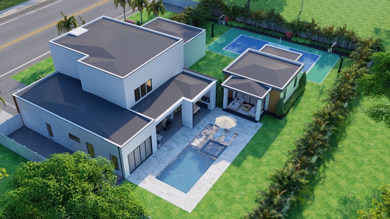 Under Construction. Car enthusiasts, recreational sports lovers … this one is for you! A house that suits all your needs often comes on a limited lot footprint. This opportunity is a game changer. A custom home crafted by local builder, TDI Coastal Homes, is now being offered with a completely customizable adjacent parcel. A large garage, totally personalized pool house, or your very own pickleball or basketball court, the limit is your imagination for the outdoor opportunities offered here. Situated a mere 10 minutes from the world famous Crescent beach on Siesta Key and just minutes to downtown Sarasota, this nicely appointed home also provides peace of mind as this property is not in a flood zone and is perched a safe 21 feet above sea level. A sharp, contemporary flair blends with coastal materials in this sophisticated sanctuary. Quality and durable engineered hardwood floors throughout the first floor create the perfect foundation for the exquisite open concept design. A chef’s kitchen, featuring Thermador appliances, quartz countertops, an oversized island, intriguing fixtures and a walk-in pantry, lies at the heart of the home and is undoubtedly where your guests will gather to enjoy your coastal inspired culinary creations. Find respite in your primary suite that will envelope you in luxury as you rest and recharge from your days filled with Suncoast adventures. The first floor also offers a home office, mud room, laundry space and multiple sets of sliders to the outdoor oasis consisting of a spacious lanai with a fully appointed outdoor kitchen and multiple seating areas. The refreshing pool will keep you comfortable on sunny afternoons while the warm spa will soothe as the day fades into night. The second floor grants room for guests or additional personal space with three generous bedrooms; one bedroom with a private bath and two that share an adjoining bath. Additional features to include a motorized screen system on the lanai for versatility and added comfort, a two car garage, and a reverse osmosis system for clean, filtered ice and water. With an incredible location in a vibrant community and top notch schools just around the corner, this home offers the best of Sarasota, brimming with culture, recreation, convenience and the quintessential Florida lifestyle.