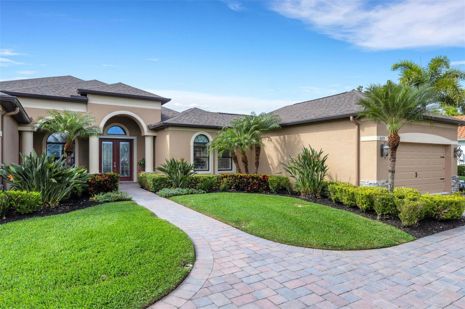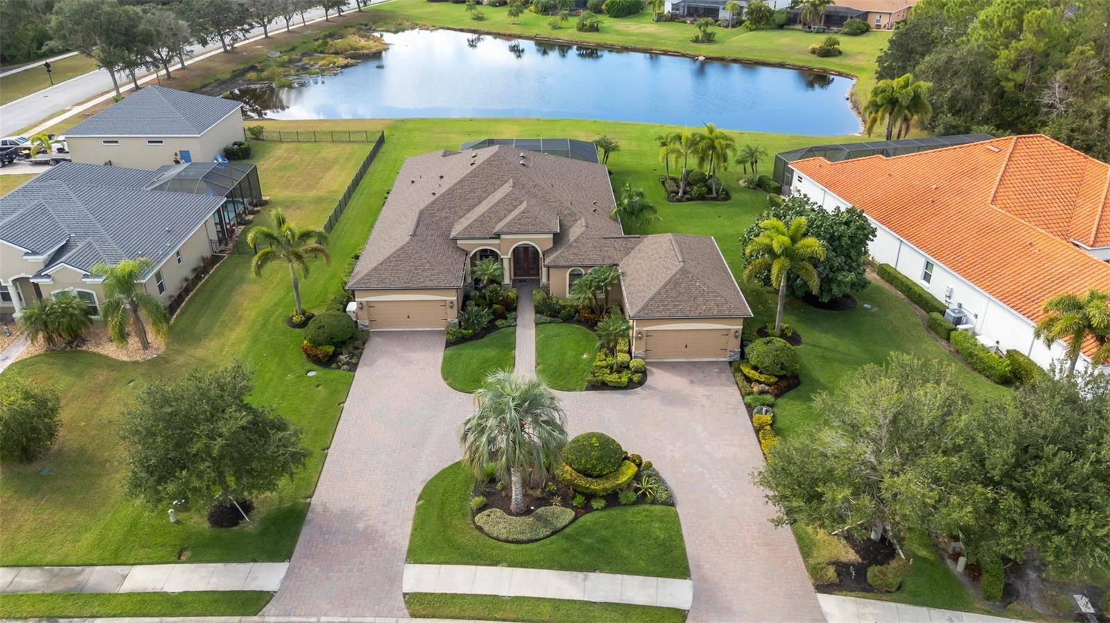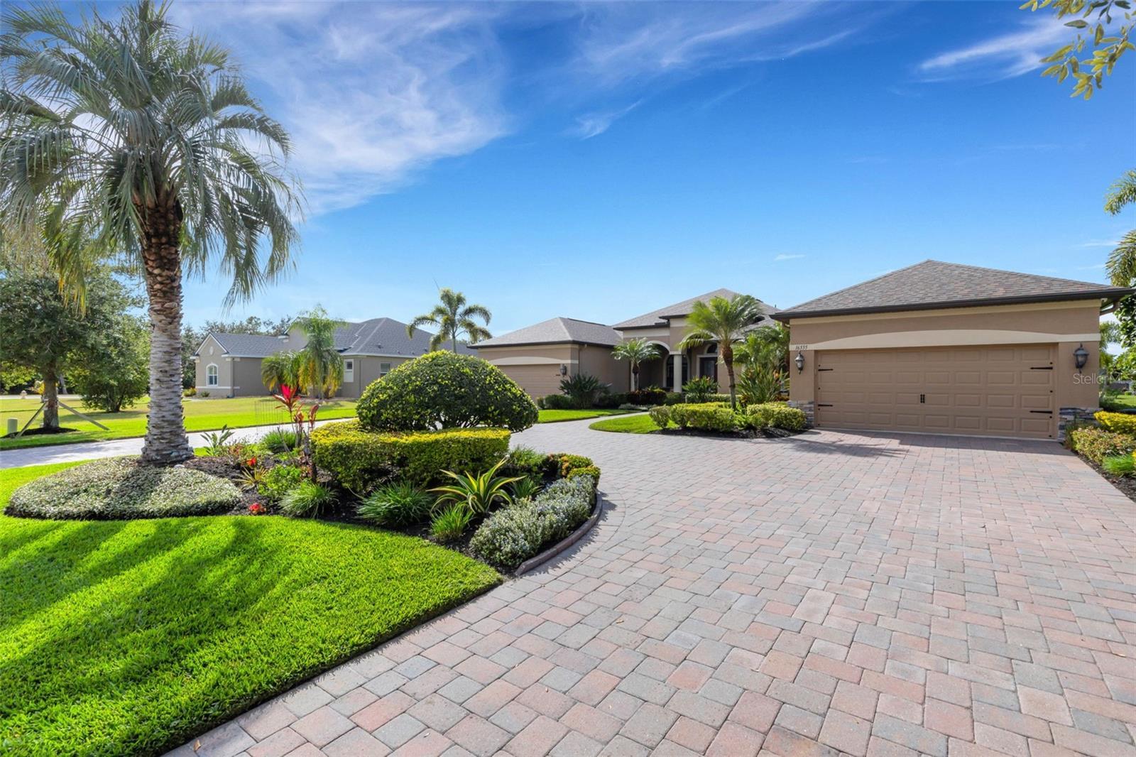 Beautiful Custom Home in Twin Rivers — Spacious, Upgraded, and Move-In Ready! Welcome to 16335 26th St East, a stunning custom-built home in the desirable Twin Rivers community. Offering 3,180 sq. ft. of living space, this property features 3 bedrooms, 3 full baths, a large bonus room, and two spacious offices (14’x15’ and 14’x20’) — perfect for remote work, creative pursuits, or flexible living. Designed for comfort and style, this open-concept home showcases a brand-new 2024 roof with seamless gutters, elegant tray and barreled ceilings, crown molding, plantation shutters, and wood-planked outdoor ceilings. Tile flooring runs throughout the main living areas, with wood floors in the bedrooms, offices, and bonus room — no carpet anywhere. The upgraded kitchen impresses with custom cabinetry featuring soft-close drawers, a built-in wall oven and convection microwave, a gas/propane range with vented hood, and a generous island ideal for entertaining. A private 500-gallon propane tank fuels the range, outdoor grill, tiki torches, and whole-home Generac generator, ensuring convenience and reliability throughout the home. The spacious living area features six built-in ceiling speakers and a subwoofer integrated into the wall, creating an immersive audio experience for movies, music, or entertaining guests. Step through the 12-foot pocketing sliding glass doors to your backyard retreat, complete with a large covered porch, no-see-um screened lanai, outdoor kitchen, and heated pool and spa overlooking a tranquil pond. At night, the propane-fueled tiki torches add warmth and ambiance, making this outdoor space perfect for relaxing or entertaining under the Florida sky. The beautifully landscaped .6-acre lot provides excellent privacy with no rear neighbors and sits outside the flood zone. For those who value storage or workspace, this home includes two oversized garages (34’x20’ and 24’x20’) connected by a circular paver driveway. The 24’x20’ garage opens into a versatile air-conditioned workshop/office, ideal for a studio, storage, or equipment area. Behind the garage, a shell patio offers a perfect spot for raised garden beds, a fire pit, or additional outdoor storage. Residents of Twin Rivers enjoy outstanding amenities, including multiple playgrounds, a sand volleyball court, a hard court, and a private boat ramp with access to the Manatee River. Low HOA fees — just $104/month — include irrigation water. From the community boat ramp, explore scenic waterways or enjoy a day of fishing all the way to the Gulf of Mexico.
