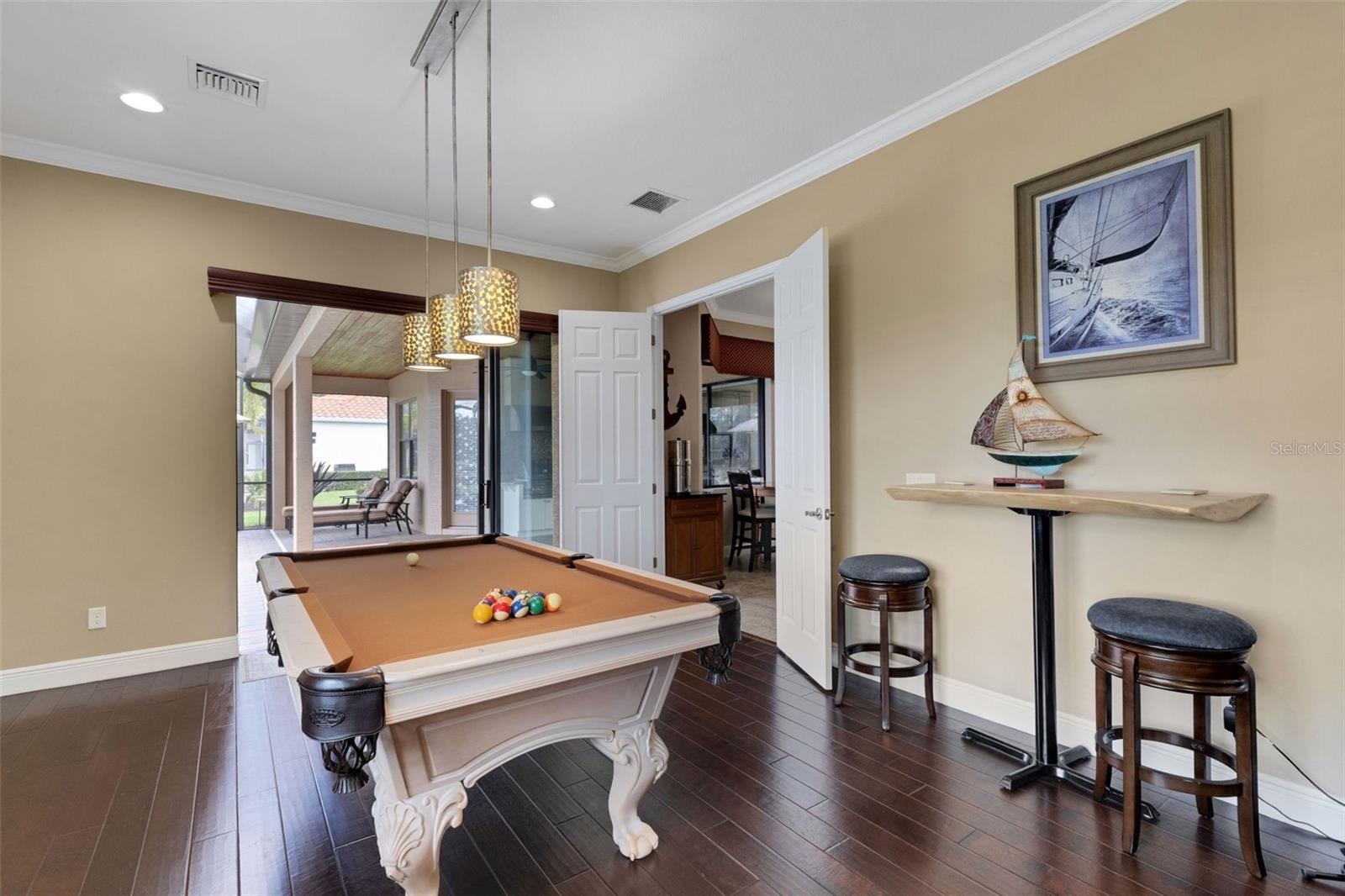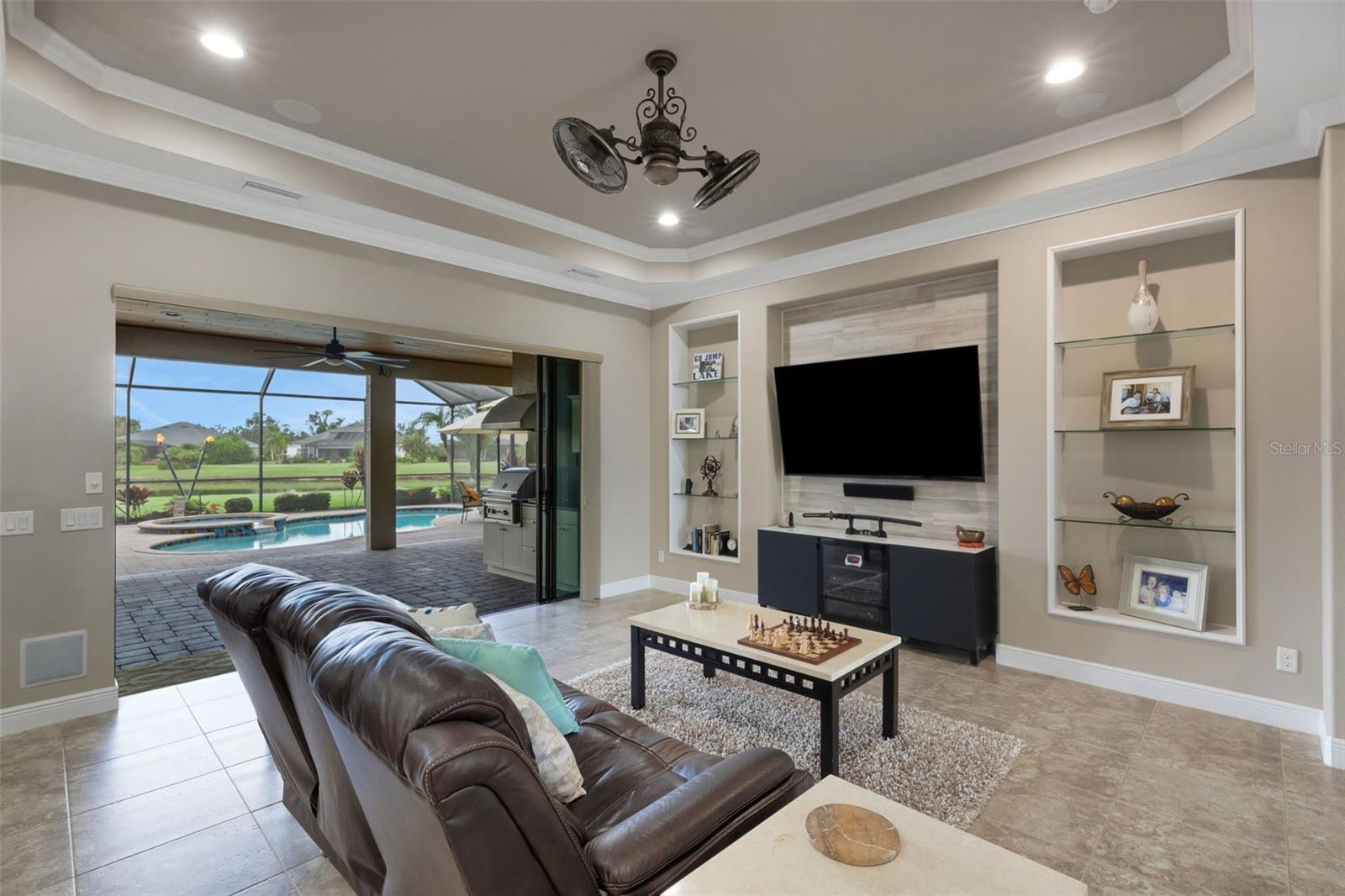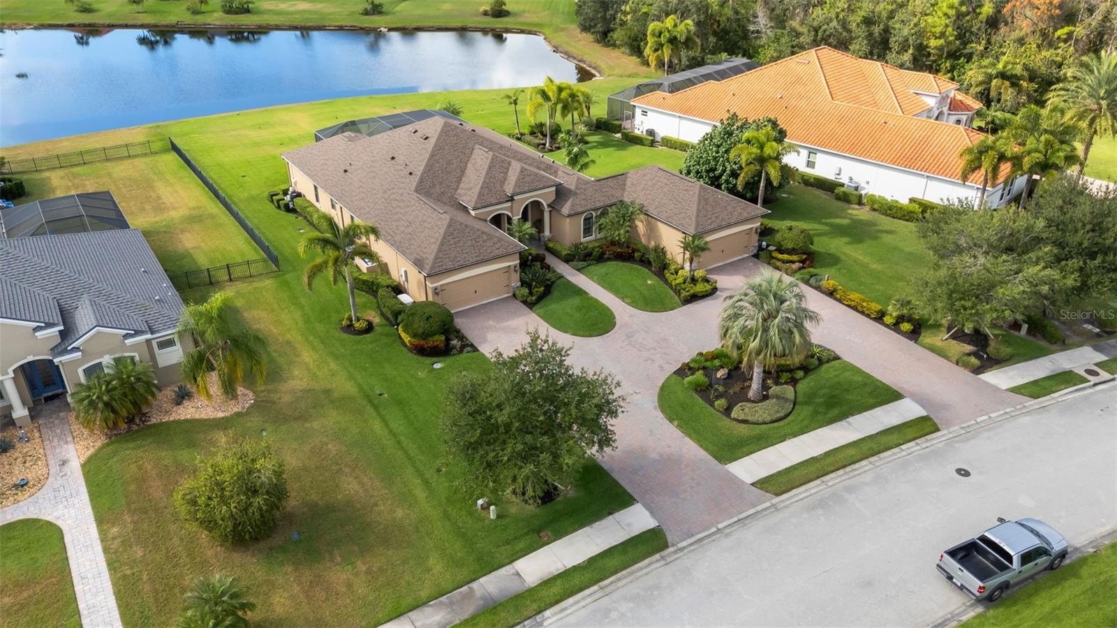 Beautiful Custom Home in Twin Rivers — Spacious, Upgraded, and Move-In Ready! Welcome to 16335 26th St East, a stunning custom-built home in the desirable Twin Rivers community. Offering 3,180 sq. ft. of living space, this property features 3 bedrooms, 3 full baths, a large bonus room, and two spacious offices (14’x15’ and 14’x20’) — perfect for remote work, creative pursuits, or flexible living. Designed for comfort and style, this open-concept home showcases a brand-new 2024 roof with seamless gutters, elegant tray and barreled ceilings, crown molding, plantation shutters, and wood-planked outdoor ceilings. Tile flooring runs throughout the main living areas, with wood floors in the bedrooms, offices, and bonus room — no carpet anywhere. The upgraded kitchen impresses with custom cabinetry featuring soft-close drawers, a built-in wall oven and convection microwave, a gas/propane range with vented hood, and a generous island ideal for entertaining. A private 500-gallon propane tank fuels the range, outdoor grill, tiki torches, and whole-home Generac generator, ensuring convenience and reliability throughout the home. The spacious living area features six built-in ceiling speakers and a subwoofer integrated into the wall, creating an immersive audio experience for movies, music, or entertaining guests. Step through the 12-foot pocketing sliding glass doors to your backyard retreat, complete with a large covered porch, no-see-um screened lanai, outdoor kitchen, and heated pool and spa overlooking a tranquil pond. At night, the propane-fueled tiki torches add warmth and ambiance, making this outdoor space perfect for relaxing or entertaining under the Florida sky. The beautifully landscaped .6-acre lot provides excellent privacy with no rear neighbors and sits outside the flood zone. For those who value storage or workspace, this home includes two oversized garages (34’x20’ and 24’x20’) connected by a circular paver driveway. The 24’x20’ garage opens into a versatile air-conditioned workshop/office, ideal for a studio, storage, or equipment area. Behind the garage, a shell patio offers a perfect spot for raised garden beds, a fire pit, or additional outdoor storage. Residents of Twin Rivers enjoy outstanding amenities, including multiple playgrounds, a sand volleyball court, a hard court, and a private boat ramp with access to the Manatee River. Low HOA fees — just $104/month — include irrigation water. From the community boat ramp, explore scenic waterways or enjoy a day of fishing all the way to the Gulf of Mexico.