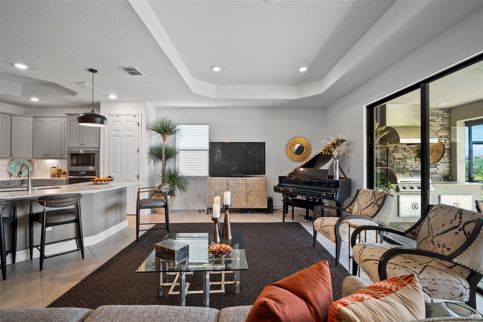 Voted Best Golf and Gate Community on the West Coast! Golf included in HOA featuring two Champion Golf Courses (Featured on The Korn Ferry Tour). Nestled within the prestigious Lakewood National Golf Club community in Lakewood Ranch, this exquisite home offers an unparalleled lifestyle for golf enthusiasts and luxury seekers alike. The open-concept Isabella floor plan features 4 bedrooms and 2 full baths in a split layout for added privacy. Step inside to discover a spacious kitchen featuring elegant quartz countertops, solid wood cabinetry, a stone backsplash, a gas cooktop, a built-in oven, under-cabinet lighting, and an expansive breakfast bar overlooking the living room. The formal dining area is ideal for entertaining, while the living room boasts tray ceilings and large sliding glass doors, opening to the inviting extended lanai. The primary suite is a true sanctuary, complete with dual walk-in California closets, an ensuite bathroom with double sinks, a glass-enclosed walk-in shower, and a luxurious garden tub. Sliding glass doors provide direct access to the lanai, offering a seamless blend of indoor and outdoor living. Three additional bedrooms and a full guest bathroom provide ample space and functionality. The expansive lanai, equipped with hurricane blinds, overlooks the pristine golf course and is perfect for outdoor entertaining, complete with a full outdoor kitchen featuring a built-in grill and hood, a beverage fridge, seating areas, and dining space. Extra touches throughout the home include a 2-car garage with epoxy flooring, California closets in the garage and laundry room, Ring security system, and gutter installations. Ownership includes a full membership to Lakewood National’s 36-hole championship golf course and access to outstanding amenities. Enjoy the heated main pool with waterfalls and lap lanes, a poolside Tiki Bar & Café, a new clubhouse with two on-site restaurants, tennis and pickleball courts, a state-of-the-art fitness center, and more. Lakewood National offers a Lifestyle Director who organizes trivia and karaoke nights, holiday parties, and music/movie nights. Don’t miss the chance to experience this extraordinary home and lifestyle firsthand. Schedule your private showing today and step into the Lakewood National dream!