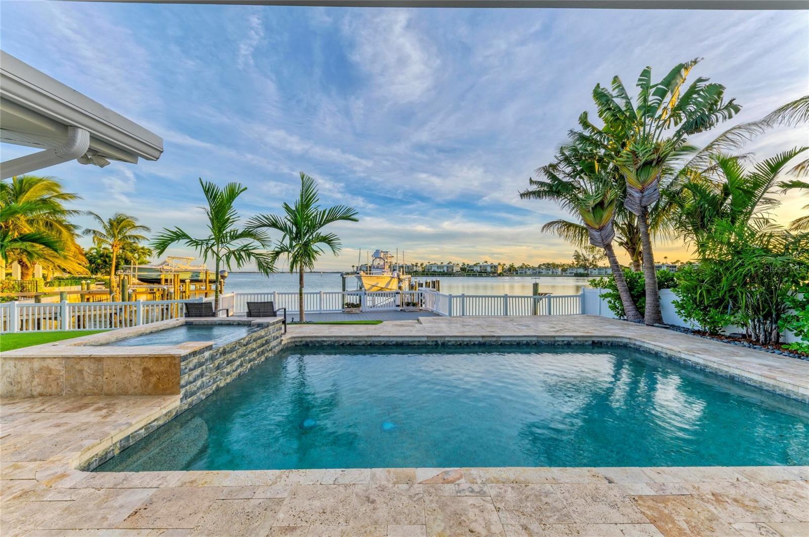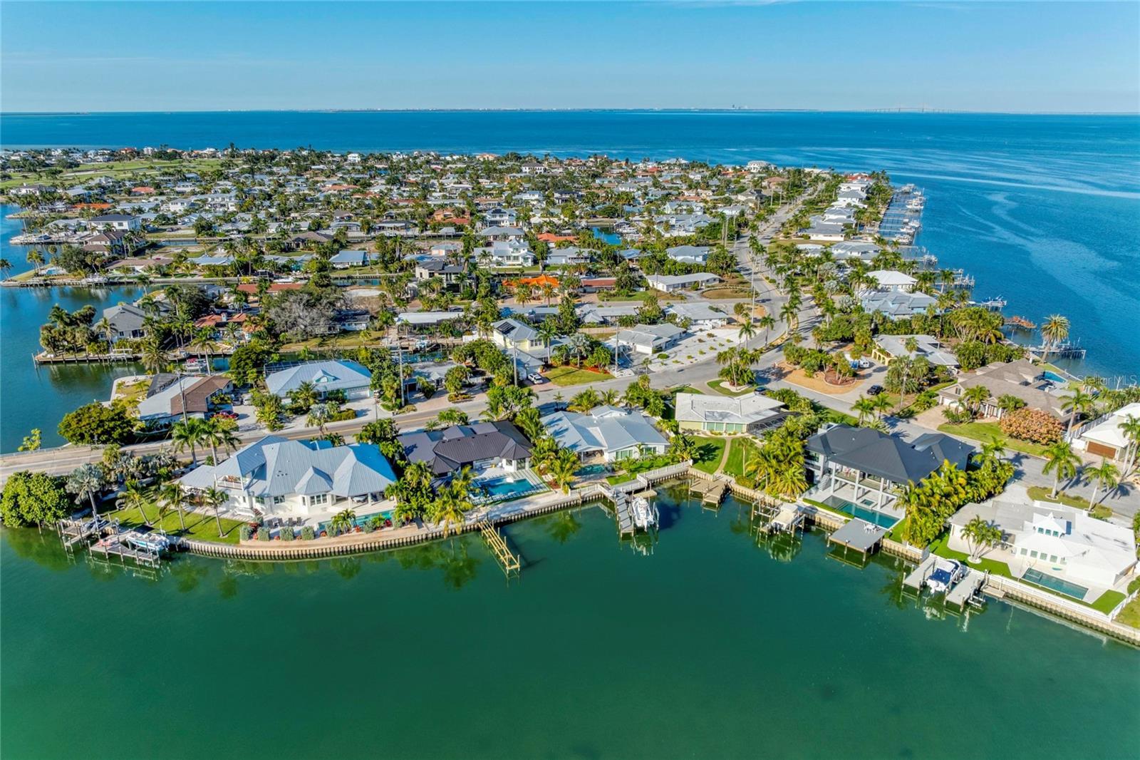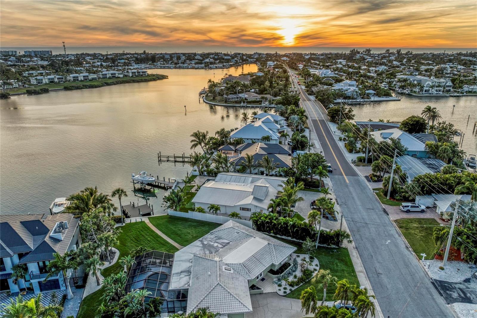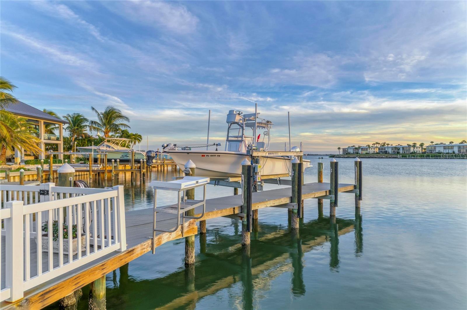 Welcome to coastal luxury living in the highly coveted Key Royale neighborhood of Holmes Beach. This fully remodeled 3-bedroom, 3.5-bath waterfront home is a rare find—offering breathtaking views, modern upgrades throughout, and direct access to Tampa Bay and the Gulf of Mexico. Situated on a tranquil south-facing cove along the Intracoastal Waterway, this property provides both stunning scenery and natural protection. Step inside to an open, airy floor plan featuring all-new wood flooring, new interior and exterior doors, new windows with shutters, and exceptional craftsmanship at every turn. The chef’s kitchen is a true showstopper, showcasing top-of-the-line Thermador appliances, custom cabinetry, and a spacious layout designed for effortless hosting and everyday living. The primary suite is a retreat of its own with dual walk-in closets and a beautifully updated ensuite bath. The second bedroom functions like a second primary, offering a generous bedroom space and its own private ensuite bathroom—ideal for guests or multi-generational living. Outdoors, the home transforms into a private waterfront paradise. Enjoy a saltwater pool and spa, a full outdoor kitchen, and your own putting green—all overlooking sparkling water views where dolphins are frequent visitors. Boaters will appreciate the 16,000-lb boat lift, deep water access, and plenty of side-yard space for additional toys, including a 50-amp RV hookup and room for a boat or trailer. With luxury updates, protected water, and unparalleled views, this is Florida waterfront living at its finest!