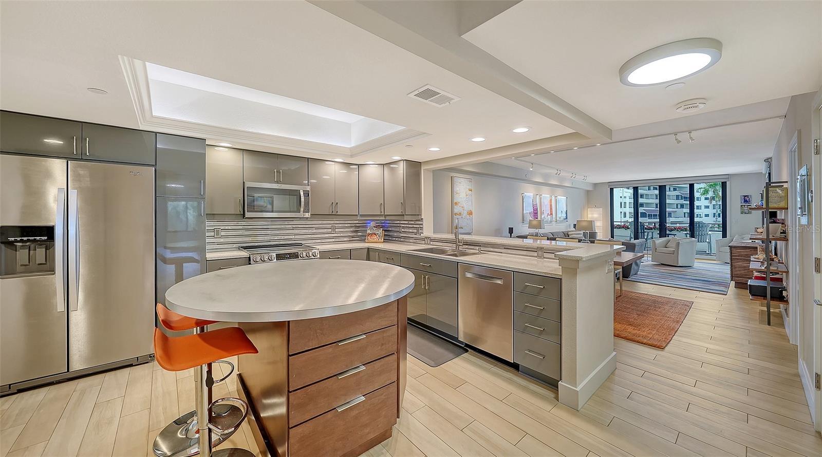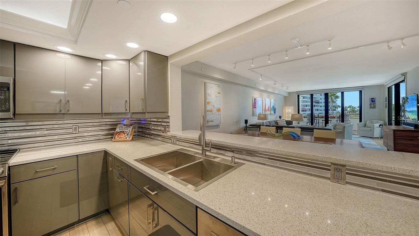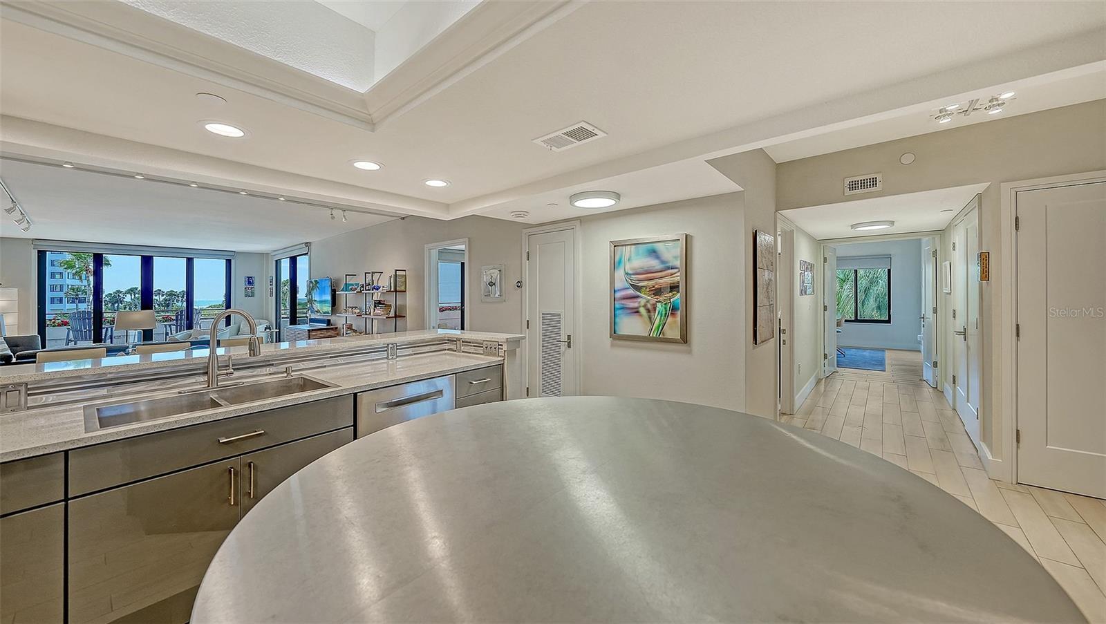 Welcome to luxury Gulf-front living at The Players Club. This sophisticated furnished residence is a three-bedroom, three-bathroom, end-unit condominium. The great room and two primary suites each provide beautiful Gulf views and private access to the two spacious covered terraces. Its thoughtfully designed floor plan maximizes vistas and natural light across an expansive interior. The residence has undergone a comprehensive renovation, featuring a modern kitchen outfitted with custom cabinetry, quartz countertops, a center island adorned with stainless steel and espresso wood base cabinets, as well as a contemporary tile backsplash and high-end appliances. Additional upgrades include new porcelain plank flooring, freshly interior painting updated all interior doors and hardware, moldings, baseboards designer window treatments, and enhanced lighting throughout. All bathrooms have been beautifully updated with new cabinetry, countertops, tile, and premium fixtures. The great room layout with two master suites, each providing water views and private access to the extended terrace. Impact-resistant windows and sliding doors have been installed to comply with the latest building codes. For convenience, the unit includes both an assigned under-building parking space and an enclosed garage, accompanied by an external storage room. The Players Club demonstrates a commitment to excellence with recent engineering and reserve studies, ensuring ongoing community stability and maintenance. Elevator systems have been modernized and certified. The association maintains fully funded reserves for long-term reliability. Spanning 11 pristine Gulf-front acres on Longboat Key, this private community offers unparalleled amenities. Life at The Players Club is defined by luxury and leisure. Residents enjoy a newly renovated clubhouse equipped with a state-of-the-art fitness center, library and meeting room, catering kitchen, various gathering spaces, four Har-Tru tennis courts with pickleball capabilities, a 70-foot heated saltwater pool and spa, putting green, fire pits, outdoor grills, lushly landscaped grounds, deeded beach access, and the assurance of 24/7 gated security and on-site management. Players Club is ideally situated near the new St. Regis Resort, with optional membership available at The Longboat Key Club & Resort, granting privileged access to golf, dining, tennis, and the only deep-water marina on the island. Beyond the community, residents benefit from proximity to local conveniences, including Publix, CVS. and boutiques within two minutes, and the upscale shops and restaurants of renowned St. Armands Circle just five minutes away. The famed cultural amenities, many fine dining options, and shopping in downtown Sarasota is just 15 minutes from The Players Club.