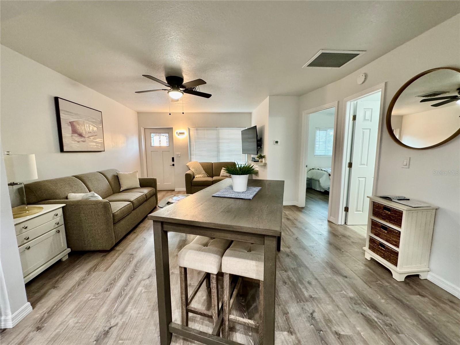 Completely Renovated Modern-Rustic Triplex Income producing or Multi generational home Across from Stump Pass Marina — Boater’s Dream! Discover a one-of-a-kind income-producing opportunity in the heart of Englewood, Florida! Perfectly positioned across the street from Lighthouse Grill and Stump Pass Marina, this fully renovated (2025) modern-rustic triplex offers unbeatable access to live waterfront entertainment, convenient boat docking, and quick access to the Gulf of America within minutes — truly a boater’s paradise. Every inch of this property has been meticulously updated with new plumbing, windows, roof, HVAC, appliances, and designer finishes. This turnkey, fully furnished property is ready for its next owner—whether as a profitable rental, a personal coastal retreat, or a hybrid investment. Two (2) beautifully updated 2-bedroom, 1-bath units — each comfortably sleeps four, featuring cozy coastal décor, open floor plan, spacious kitchen with modern touches. Separate laundry building for the two front units, complete with a half bath and outdoor shower—ideal for guests returning from the beach or a day on the water. One (1) spacious 2-bedroom, 2-bath main unit — includes its own private laundry room and a stunning rustic-modern design. Step inside to find a perfect balance of comfort and craftsmanship, with exotic pecky cypress walls, large exposed wood beams, and a hand picked meticulously crafted stone wall that frames a wood-burning fireplace and indoor grill, each with its own chimney. A large loft area overlooks the large family room and fireplace, offering a billiard table and additional lounge area — the ultimate spot for entertaining. Enjoy generous outdoor spaces for relaxing or entertaining, with room to soak in beautiful sunset views after a day on the water. Unmatched Location right across from Stump Pass Marina and Lighthouse Grill, you’ll have easy access to live music seven days a week, delicious dining, boat storage, and docking. This location captures the essence of coastal living and offers incredible rental potential year-round. Whether you’re seeking a profitable investment, a vacation retreat, or both — this property checks every box. Turn the key and start living your dream coastal life today! This is truly a one-of-a-kind opportunity with an unbeatable location. Properties like this rarely come available along the Gulf Coast of Florida — it’s all about location, location, location! Act now — this one won’t last long. It doesn’t get any better than this!