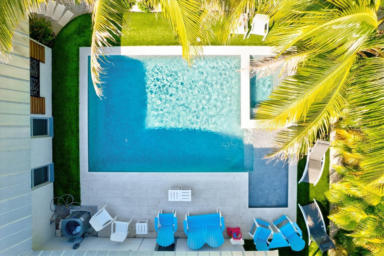Property did NOT flood! Sold turnkey! Stunning 4 bedroom 4 bath luxury duplex pool home just 1 block from the beach! Newer heated salt water pool & backyard is a private oasis in paradise. Each unit features its own kitchen, dining area, living room & 2 bedrooms & 2 beautiful baths with private enclosed porches. Shared 1 car garage & inside laundry room with full-size washer & dryer. Both units feature designer finishes in a light, bright & renovated space, newer quartz countertops & stainless appliances. Professionally landscaped with mature trees & plenty of parking even if both units are occupied. This amazing home is located right in the heart of Holmes Beach on Anna Maria Island. Situated along the free island trolley route & close to restaurants & shopping. Welcome to paradise!