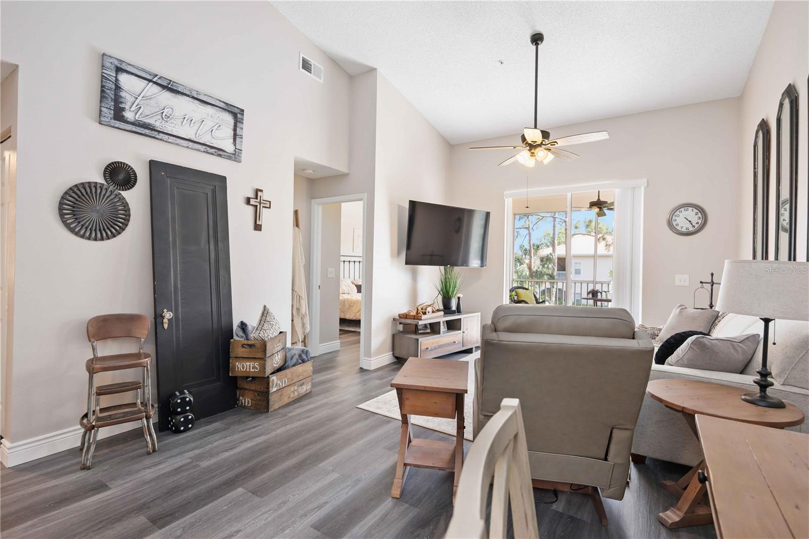 - Ceiling Fans(s), High Ceilings, Living Room/Dining Room Combo, Primary Bedroom Main Floor, Split Bedroom, Thermostat, Window Treatments