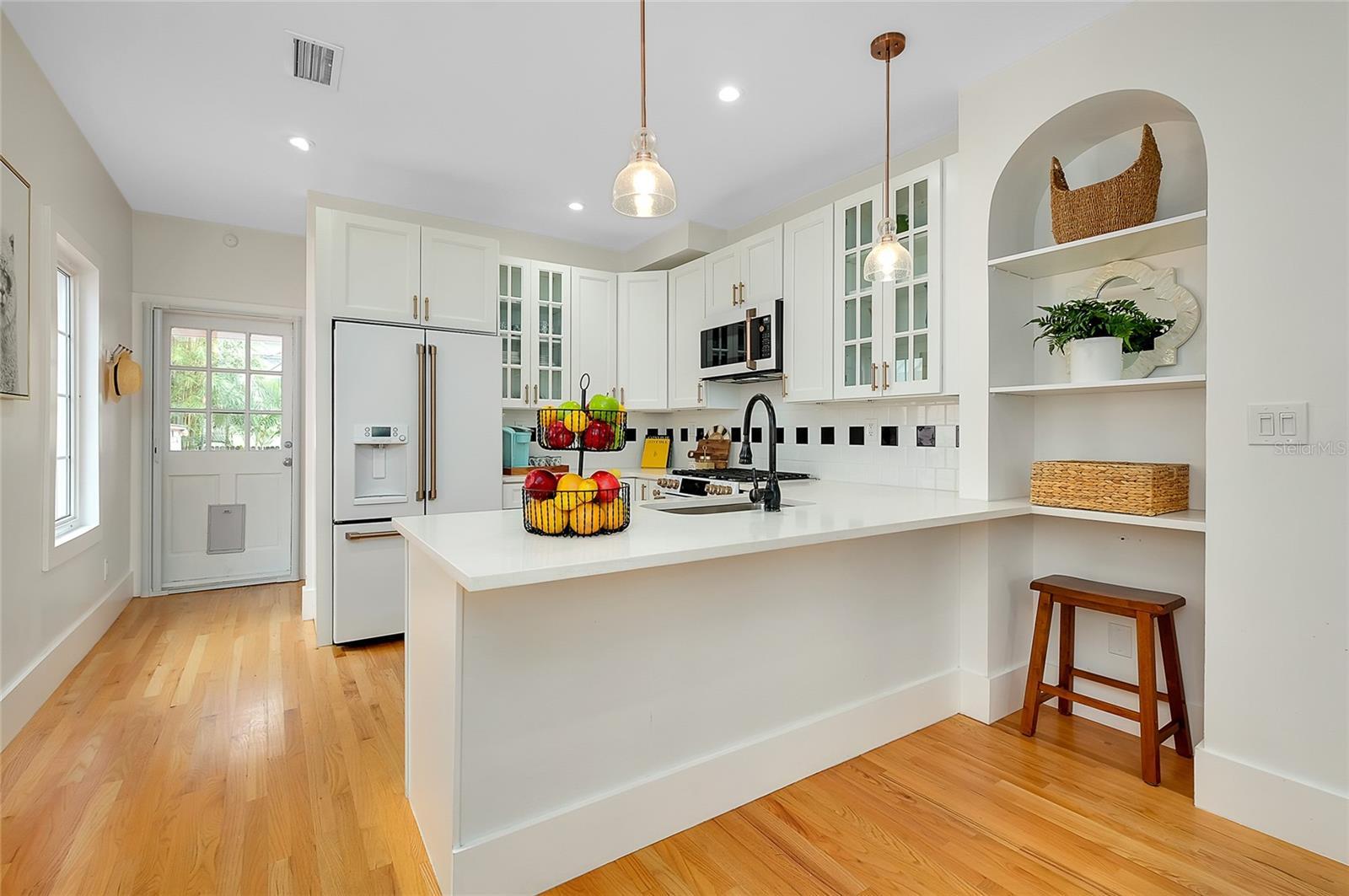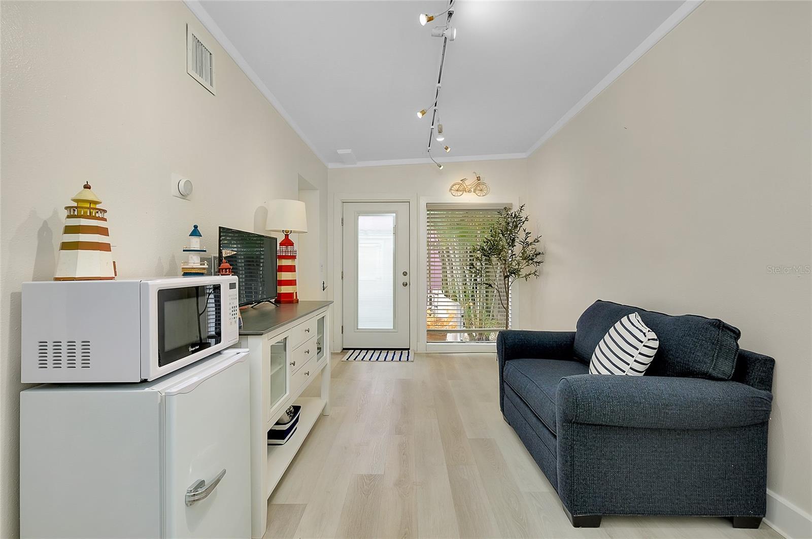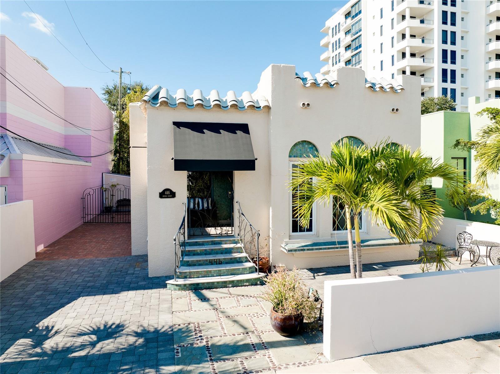 Nestled in one of Sarasota’s most sought-after neighborhoods, this beautifully restored Burns Court residence offers the rare opportunity to own a true piece of Downtown history. Blending timeless charm with modern comfort, this property is ideal as a rental investment, a live-work setup, or simply a vibrant in-town retreat for those who crave the downtown lifestyle. The main home offers one bedroom and one and a half baths, thoughtfully remodeled to blend charm with modern comfort. High ceilings, gleaming wood floors, impact-rated windows, natural gas, and a whole-home water-filtration system enhance the living experience. The cozy living room centers around a classic fireplace, while the chef’s kitchen shines with GE Café appliances, solid wood cabinetry, stone counters, and a welcoming breakfast bar. The primary suite features a beautifully updated bathroom with double sinks, a large walk-in shower, and a custom closet system for optimal organization. Completing the home is an enclosed front porch — a perfect spot to unwind and enjoy the day’s end. A separate 1-bed/1-bath guest cottage extends the property’s versatility, complete with a separate living space, kitchenette, and spacious bath with double sinks and a walk-in shower. The attached screened lounge—perfect for entertaining—opens to a private, brick-paved courtyard with a storage shed and lush tropical landscaping.With DTC zoning, the possibilities are endless—residential, rental, live/work, or even small business use (verify with city guidelines). Surrounded by multimillion-dollar condominiums, galleries, cafés, boutiques, and restaurants, this home puts you in the heart of it all. Just two blocks from Main Street and moments from the Sarasota Bayfront and marina, this residence places you at the heart of downtown living. Enjoy close proximity to Selby Gardens, Owen’s Fish Camp, the Burns Court Cinema, and an array of local shops and cafés. Opportunities like 446 Burns Court are few and far between—don’t miss your chance to own a landmark property in Sarasota’s most vibrant and walkable district.