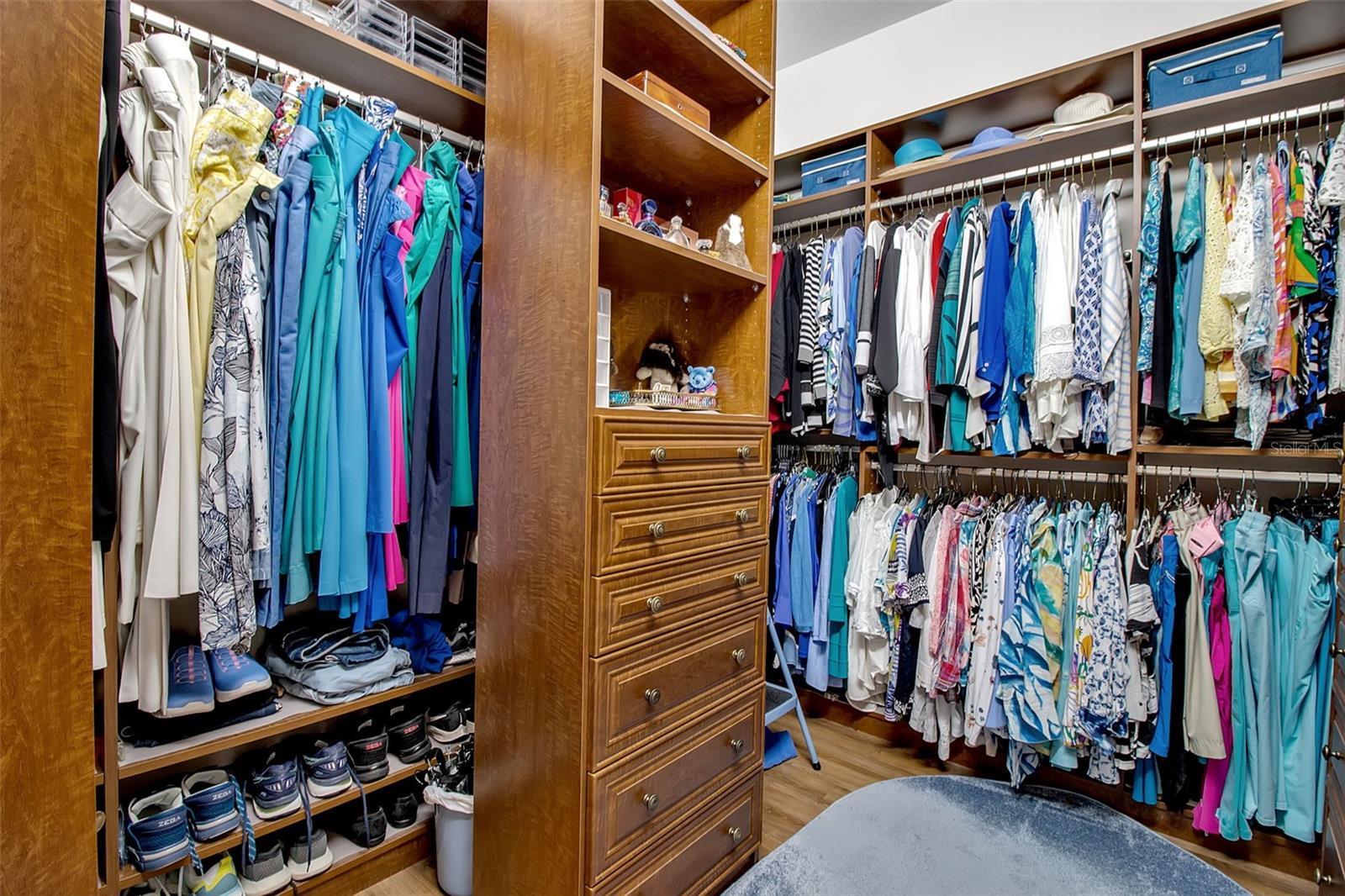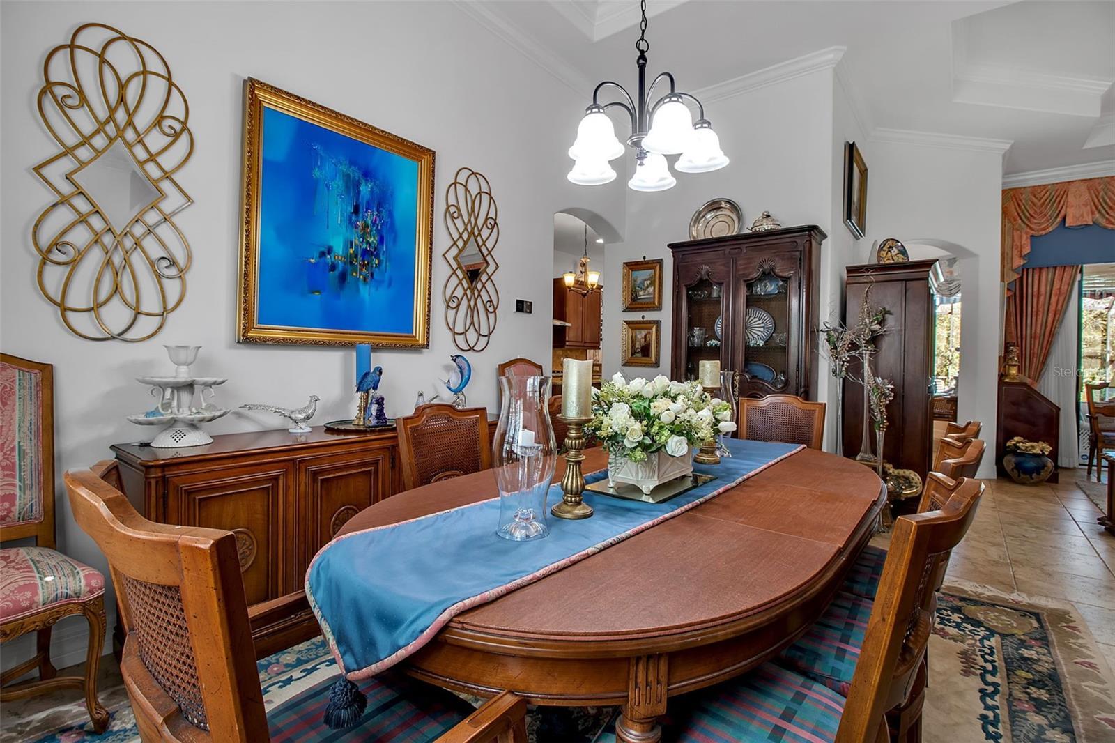- Ceiling Fans(s), Kitchen/Family Room Combo, Living Room/Dining Room Combo, Primary Bedroom Main Floor, Solid Wood Cabinets, Split Bedroom, Stone Counters, Thermostat, Tray Ceiling(s), Vaulted Ceiling(s), Walk-In Closet(s), Wet Bar, Window Treatments