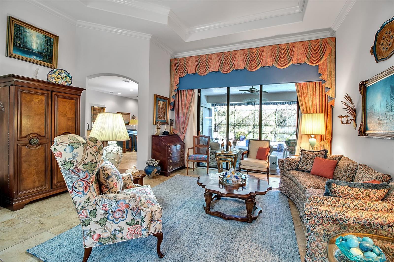 Under contract-accepting backup offers. This exquisite custom home, crafted by Tivoli Homes and built in 2014, sits gracefully behind the gates of The Hammocks—a community known for its manicured landscaping, brick-paved driveways, timeless tile roofs, and generously sized homesites. This home has customized landscaping both in front and in the back garden area. Inside, thoughtful upgrades bring warmth and elegance to every corner. Crown molding highlights the formal spaces, while tray ceilings add depth and character to the master suite, living room, and dining room. The gourmet kitchen is a true centerpiece: granite counters, a center island, rich cabinetry with soft-close features, top-tier appliances, a gas cooktop with pot filler, and a custom hood and backsplash—all coming together to create a space that’s as functional as it is beautiful. The master suite offers peaceful views of the pool and the nature preserve beyond, giving the room a sense of quiet retreat. The en-suite bath features dual granite vanities with abundant storage, a separate garden tub, a walk-in shower, and two custom walk-in closets designed to keep everything effortlessly organized. A versatile Den/Library features rich wood-look luxury vinyl planking—an ideal spot for work, reading, or overflow guest space. Two other guest bedrooms have the same luxury vinyl planking and custom closets. Three sets of glass doors open to an outdoor living area designed for year-round enjoyment. The custom saltwater heated pool and spa include a swim shelf and an awning with lighting that elevates the entertainment area, giving ample shade when needed. The outdoor kitchen—with its built-in grill and bar—anchors the extended paver lanai, creating an inviting space for gatherings large or small. Exterior painted in 2024, and the crowning touch is the air-conditioned garage with custom cabinetry. All of this is just a short drive from UTC Mall, multiple golf courses, and the area’s renowned beaches, as well as Rothenbach Park—making The Hammocks a perfect blend of serenity and convenience. There are many upgrades the seller has made to this property, feature sheet is available.