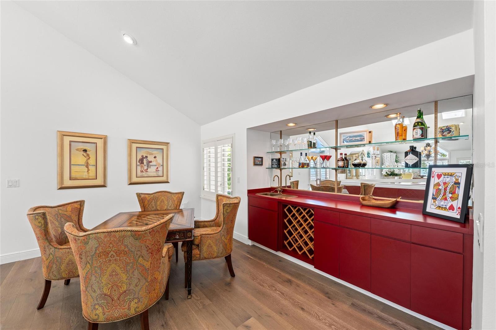 - Built-in Features, Cathedral Ceiling(s), Ceiling Fans(s), Dry Bar, Eat-in Kitchen, Elevator, High Ceilings, Kitchen/Family Room Combo, Living Room/Dining Room Combo, Open Floorplan, Primary Bedroom Main Floor, Solid Surface Counters, Solid Wood Cabinets, Split Bedroom, Thermostat, Vaulted Ceiling(s), Walk-In Closet(s), Wet Bar, Window Treatments