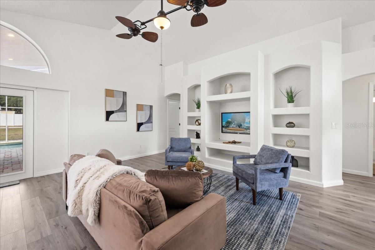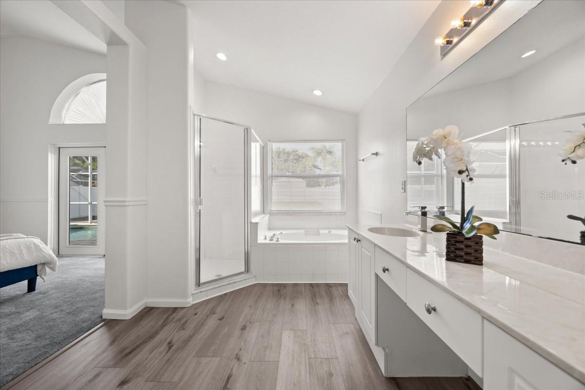 Enjoy gated community living in beautiful Weston Hills. This 3 bedroom/2 bath home features a great room, spacious covered patio with paver deck, screen enclosed pool, and a HUGE backyard. The kitchen features granite counters, tile backsplash, and equipped with stainless-steel appliances including a gas range. This property was just updated with new floors throughout, freshly painted, new appliances and prepared for sale. This home is immaculate and move-in ready. Roof redone in 2018. The master bath features dual vanities, a walk-in shower, and separate garden tub. Weston Hills is a fantastic community with plenty of amenities including community pool, kiddie splash pad, playground, covered pavilion, recreation building, and tennis, soccer, & basketball courts. Enjoy this prime location, conveniently located to major theme parks, shopping, and dining. This home will not last long.