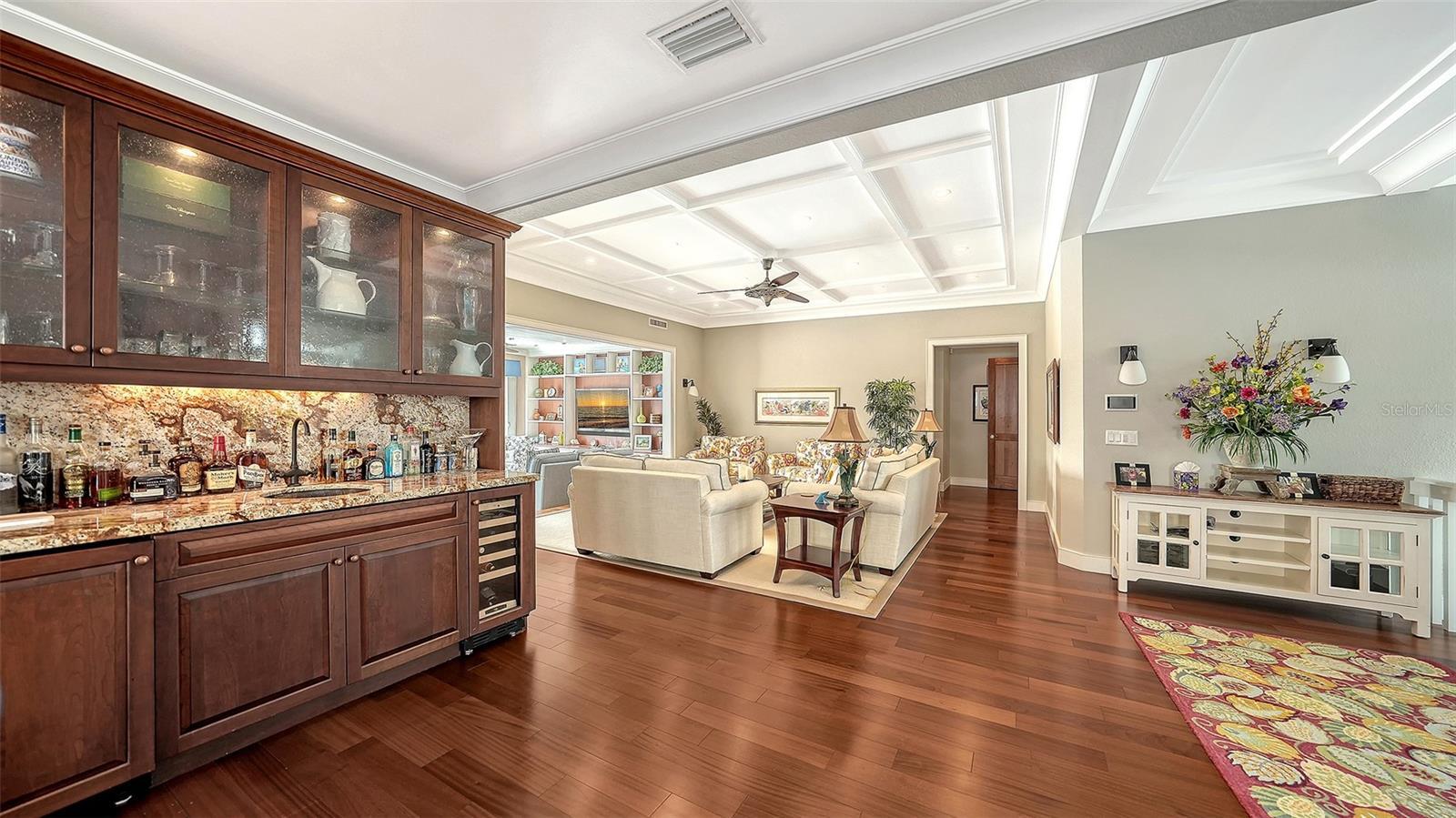 - Ceiling Fans(s), Elevator, High Ceilings, Solid Wood Cabinets, Wet Bar, Window Treatments