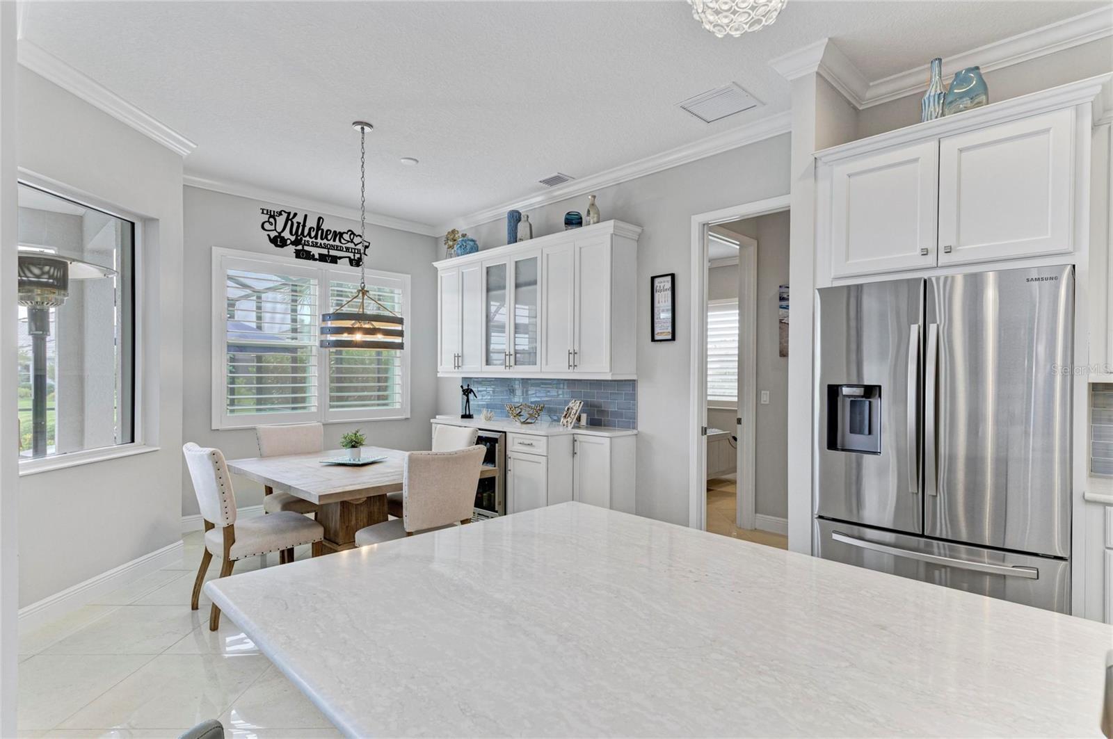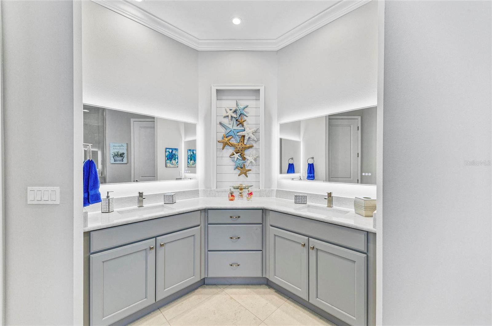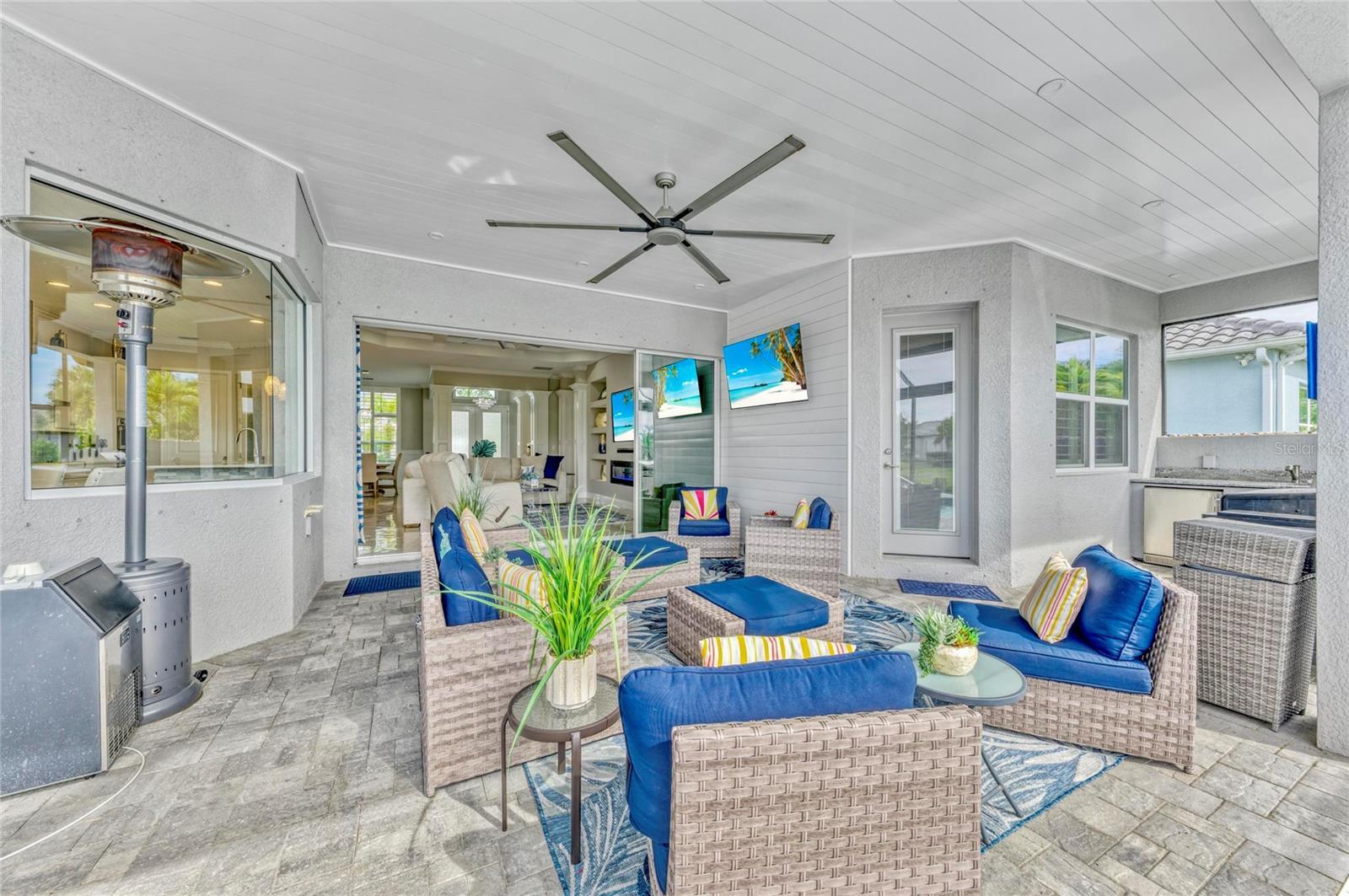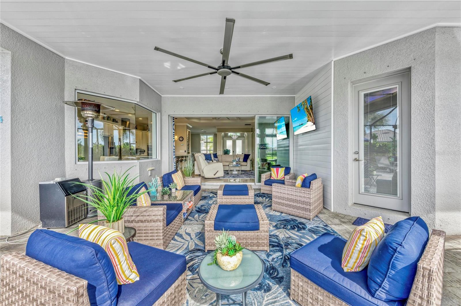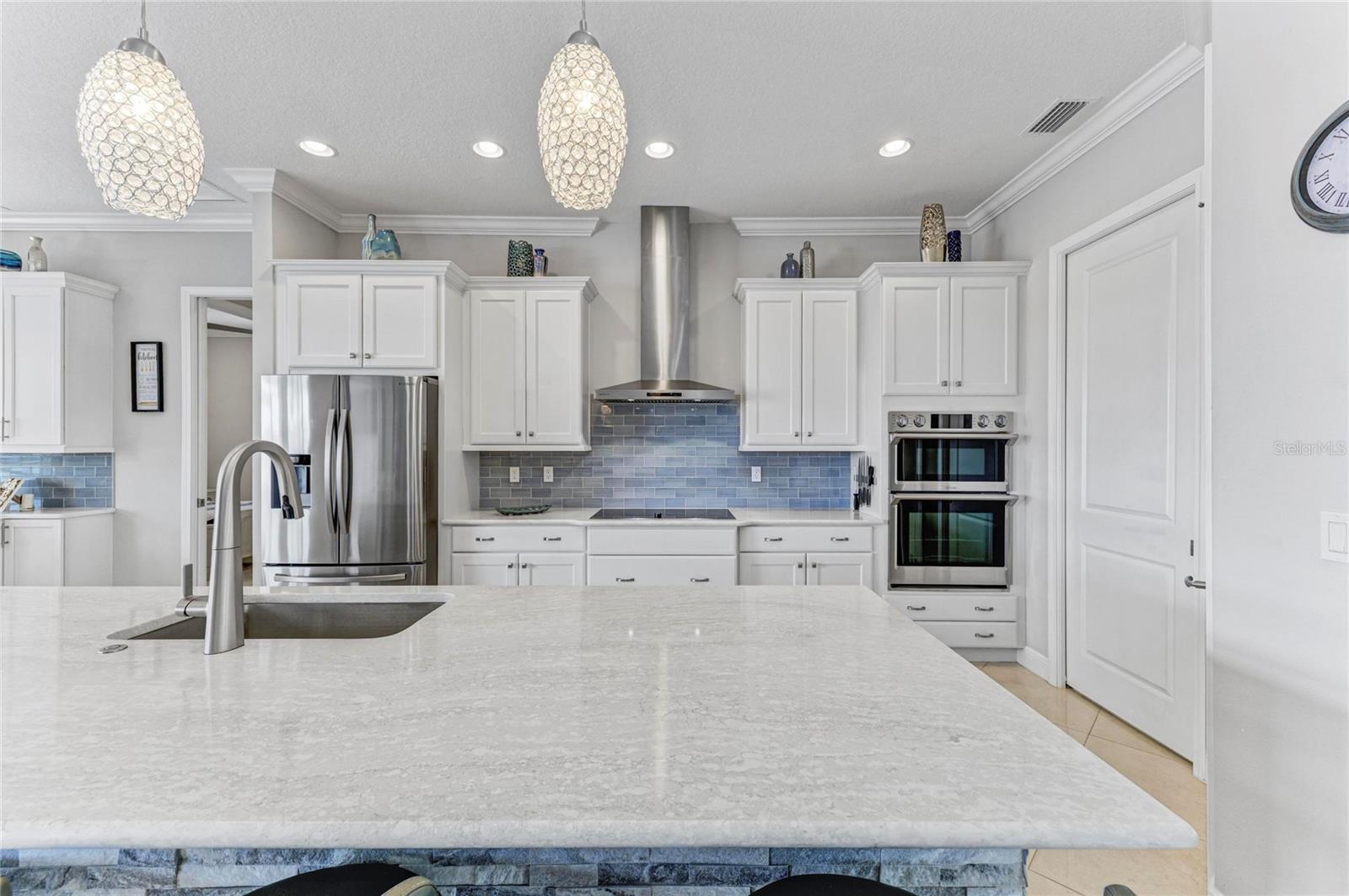 Upon entering the Gates of this Beautiful Boutique Enclave community Waverley of 110 homes you will not be disappointed! Medallion Home constructed this gated community of single-family residences, offering a selection of Luxury Homes. Located on a tranquil spacious lake lot. The Aruba open floor plan concept 3-bedroom 2 -bath plus office. Great Room highlights gorgeous ceiling details, tray with recessed lighting featuring daytime and nighttime ambiance, media wall built in with lights, electric fireplace, polished porcelain tile flooring throughout. Home has plantation shutters, a frosted front entry door along with all bedrooms, and office doors which give this home an elegant feeling! The gourmet kitchen features a quartz Island accented with stone detail, gourmet cabinets, vivid lighting, glass tile backsplash, an induction cooktop, microwave mounted on the wall, and an oven with a special insert that allows for two separate temperature zones, stainless steel appliances and a matching exhaust system complete the space, making it both functional and visually appealing. Owners Suite features custom accent wall on a diamond pattern, niche with shiplap, crown molding, custom tray ceiling with led lighting, recessed lighting, and fan, also door that leads out to lanai. Owners Bathroom features Illuminated mirrors, double vanity with quartz counter tops and floor to ceiling walk in shower. Office space seller has added shiplap wall, custom cabinets with quartz, crown molding, recessed lighting, and fan. As you step outside you have an extended lanai covered area with ceiling and wall special outdoor shiplap made for outdoors only. Lots of areas for entertaining. Outdoor day and night light that change color. Outdoor kitchen area with refrigerator, sink and grill that overlooks beautiful pool and lake. Owner had company installed a screen that is on a remote that comes down for privacy. Paver driveway leads you to the 3-car right-hand side load oversized garage. AC has 3 zones. So many upgrades to mention! Nestled in one of Sarasota’s top-rated school districts, this exclusive neighborhood combines elegance with an exceptional lifestyle including water irrigation, walking trails, and great convenience to I-75. Waverley is a short drive to Sarasota’s best beaches, Siesta Key, Lido Beach, golf courses and close to everyday shopping conveniences. No CDD and low HOA fees.