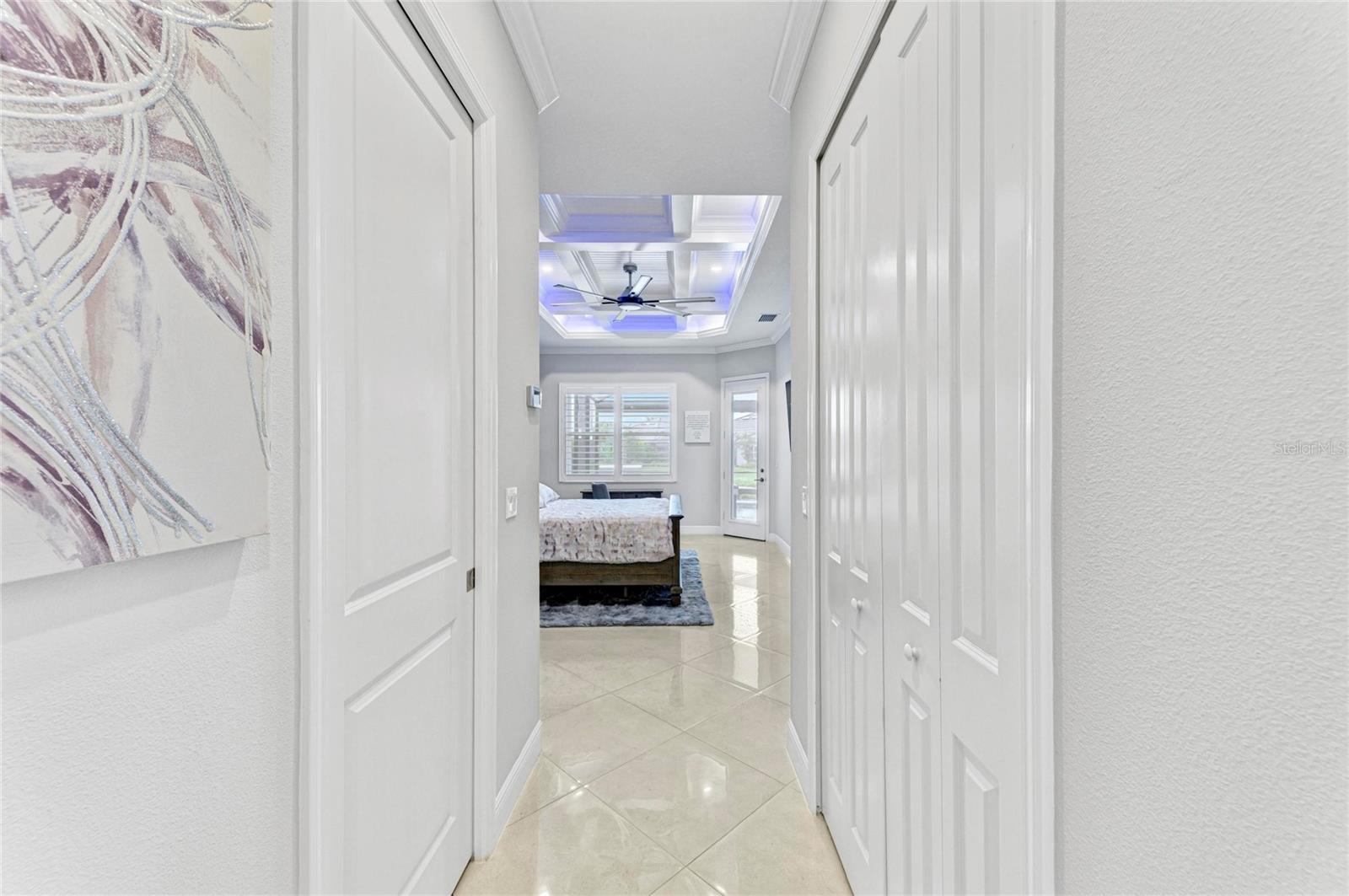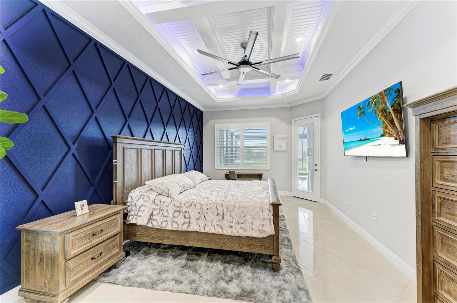 - Built-in Features, Ceiling Fans(s), Coffered Ceiling(s), Crown Molding, High Ceilings, In Wall Pest System, Open Floorplan, Pest Guard System, Primary Bedroom Main Floor, Split Bedroom, Tray Ceiling(s), Vaulted Ceiling(s), Walk-In Closet(s), Window Treatments