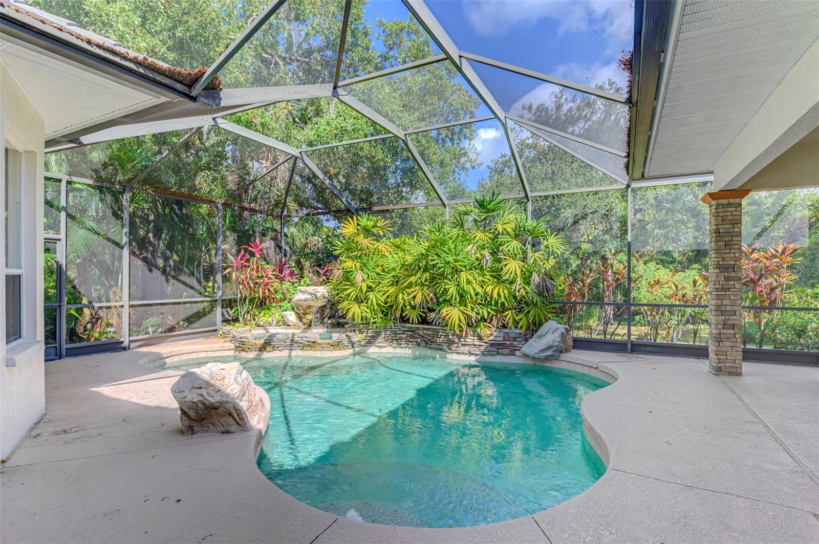 Welcome to Treymore – A Private Retreat of Luxury and Style This stunning open-style home, surrounded by lush tropical landscaping, is located in the sought-after gated community of Treymore. From the moment you arrive, the beauty of mature trees, blooming gardenias, and orchids in the branches set the tone for this elegant residence. A new slate tile roof (2022) enhances the home’s curb appeal and value. The side-load three-car garage, complete with a Garage Tek wall system and workbench, offers ample storage and a private driveway with plenty of guest parking. Step through the double front doors and experience high coffered ceilings, refined architectural details, and a seamless open floor plan. The formal dining room features a view of the front gardens and a convenient pass-through to the kitchen, while the living room centers around a double-sided fireplace, perfect for cozy evenings or entertaining. The open kitchen and family room are the heart of the home, offering generous counter space, built-ins, and a bright breakfast nook overlooking the custom pool with waterfall and lush landscaping. Two covered lanai spaces, an outdoor kitchen with gas hook-up, and elegant evening lighting create the perfect setting for relaxed outdoor living. The private owner’s suite is a true sanctuary, featuring pool and lanai access, serene views, and a luxurious spa-style bath with dual sinks, vanity, and double walk-through showers. The guest wing provides two spacious bedrooms with new wood-look tile flooring, a full bath, and a half bath for convenience. Upstairs, a large bonus room offers flexible space for a hobby area, or guest retreat. The home office provides an ideal workspace, while the media room with en suite bath offers flexible options as a fourth bedroom or guest suite.Treymore offers privacy and beauty while being conveniently close to UTC Mall, fine dining, SRQ Airport, the Ringling Museum of Art and Mansion, USF/New College, downtown Sarasota, St. Armands Circle, and Lido Beach. Experience luxury living in Treymore — where elegance, comfort, and location come together beautifully.