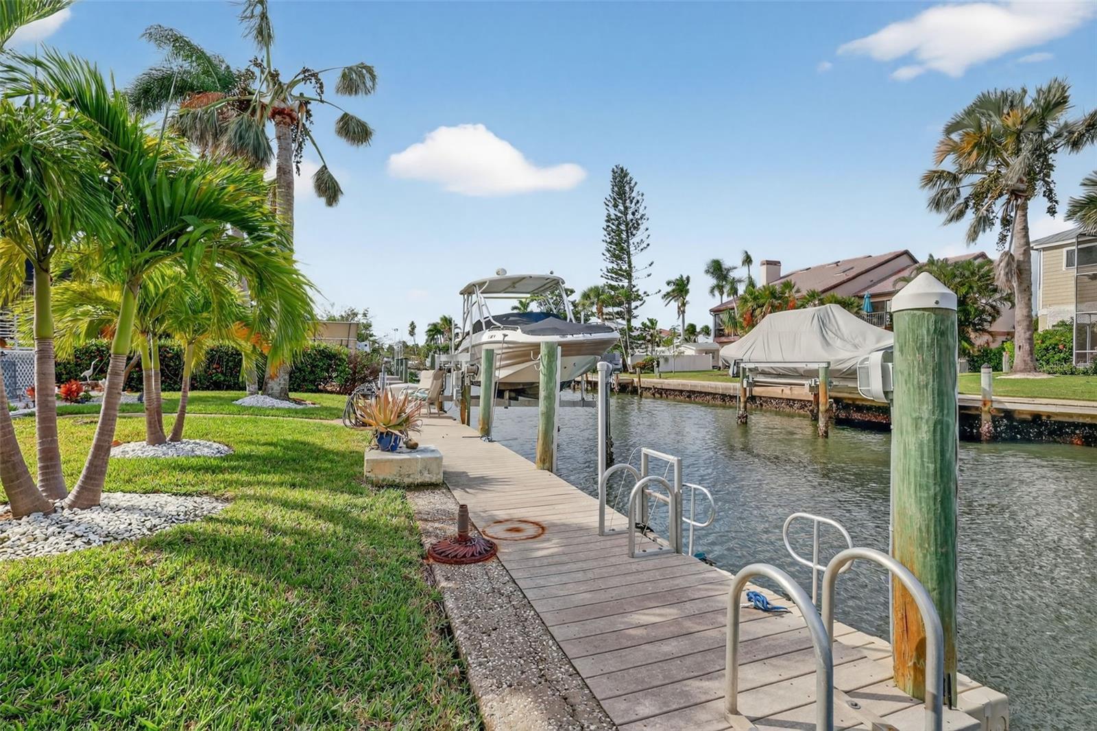 Welcome to Your Waterfront Paradise! This beautiful home even includes the Boat! This beautifully renovated coastal retreat is in the highly desirable Sleepy Lagoon community. A deep-water, saltwater canal is in your backyard, and it’s just seconds from the Intracoastal and the Gulf on your new boat! The single-story home has been gorgeously remodeled, featuring – 3 bedrooms, 2 luxurious bathrooms, new flooring throughout, and new kitchen with quartz countertops and stainless steel appliances. The open-concept floor plan and fully retractable sliding glass doors create a seamless connection between indoor and outdoor living – ideal for entertaining or relaxing in style. The primary suite offers a private balcony overlooking the heated pool, boat dock, and tranquil canal. Up a few stairs is a bonus loft that provides a perfect space for a home office or nursery. For the boating enthusiasts, enjoy a concrete seawall, composite dock, boat lift, plus water and electric hookups for ultimate convenience. The boat is a 2016 Southwind Sport Deck Series 2600SD/DB with an upgraded 300HP motor, in excellent condition. All of the recent updates to the home ensure comfort and peace of mind. Best of all, the home is just a short stroll to the beach via the community’s deeded beach access. Experience the best of island living—schedule your private tour today!
