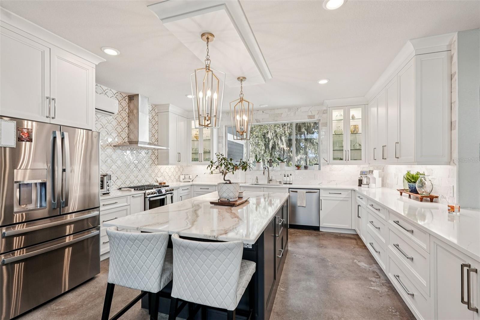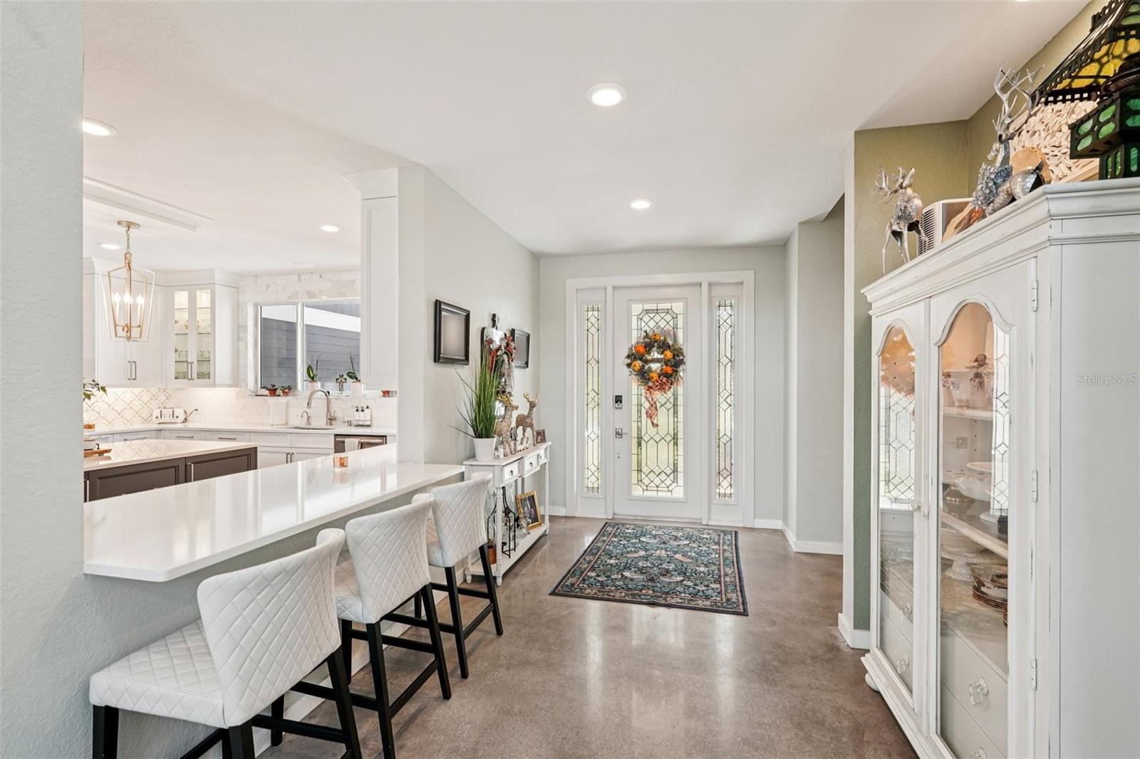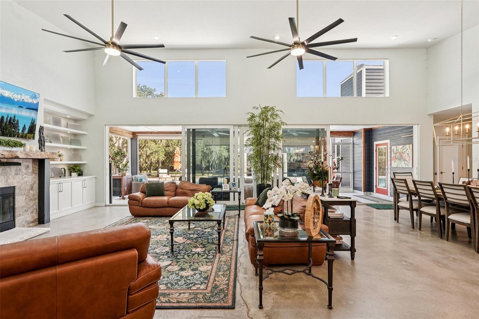 Under contract-accepting backup offers. Discover an extraordinary blend of luxury and country living at 30950 Mossy Oak Terrace—an opportunity that rarely comes available in Myakka City. Set on over five private acres in a quiet cul-de-sac, this Four-bedroom, two-and-a-half-bath home offers soaring high ceilings ranging from 10 to 16 feet, polished concrete flooring, and beautiful natural light throughout. The fourth bedroom has been converted into an office/den that has gorgeous built in shelves and desk area. Gives the next owner options to leave as is or convert back to a bedroom if needed. The heart of the home is the expansive chef-inspired kitchen, complete with premium finishes, an oversized island with generous eat-in seating, and multiple dining spaces perfect for entertaining or everyday comfort. The home flows seamlessly into a large screened outdoor patio, creating the ideal indoor-outdoor lifestyle. Step outside to your own private oasis featuring a sparkling pool and peaceful views of the pond full of Tilapia. The property is fully fenced with an electronic gated entry, offering privacy, security, and a true sense of retreat. Wildlife such as deer, turkey, sand hill cranes, and owls frequently visit, adding to the tranquil, natural ambiance. A spacious three-car garage with an overhead storage loft that provides abundant storage and convenience. Another impressive feature of this estate is the 3,456-square-foot pole barn, offering unmatched versatility and value. Two enclosed stalls have been converted into enclosed spaces with electric, water, and plumbing already in place. You’ll also find two additional stalls, a large open workshop area, a loft with extensive storage area—ideal for equipment, animals, hobbies, the possibilities are endless. Properties combining this level of craftsmanship, acreage, privacy, and functional multi-use outbuildings rarely hit the market. If you’ve been searching for a true luxury country estate with room to grow and live freely, this home stands out above the rest. Don’t miss your chance to secure it before it’s gone.