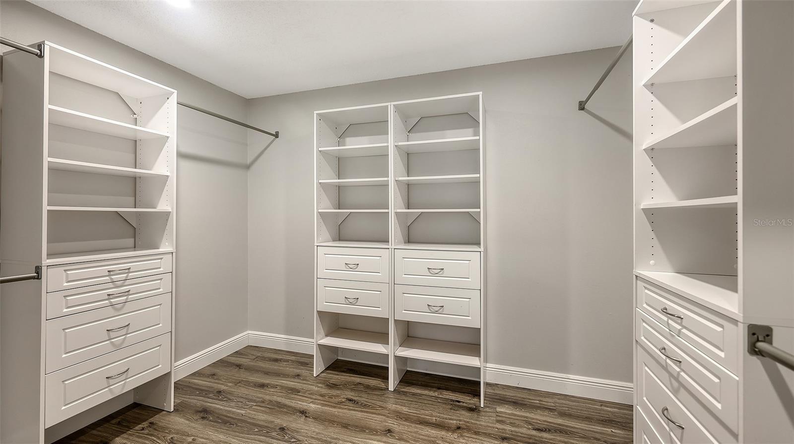 - Ceiling Fans(s), Central Vaccum, High Ceilings, Primary Bedroom Main Floor, Solid Surface Counters, Solid Wood Cabinets, Split Bedroom, Thermostat, Vaulted Ceiling(s), Walk-In Closet(s), Window Treatments