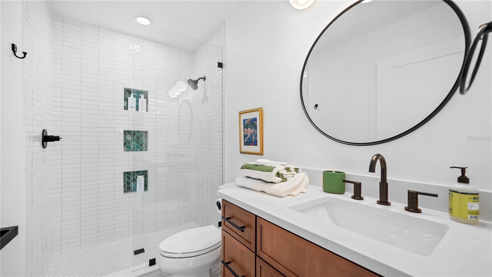 Completely renovated in 2025, this beach bungalow offers a rare blend of privacy, style, and modern coastal living. Its private heated saltwater pool and fully enclosed tropical courtyard create a secluded coastal retreat with a character all its own. The interior has a bright, updated design with modern coastal finishes throughout, and the home’s seamless indoor–outdoor flow makes it an ideal retreat for spending time by the beach. With an established rental history and a location close to parks, dining, and entertainment, it’s a turnkey opportunity for both personal enjoyment and income potential. Inside, the home features an open kitchen with custom wood cabinetry, quartz countertops, stainless appliances, a gas range, and an oversized island designed for gathering and entertaining. The living area extends naturally to the screened pool deck through hurricane-impact sliding glass doors, creating effortless indoor–outdoor living. Impact windows throughout provide peace of mind and year-round comfort. Both bedrooms are well proportioned, and the bathrooms offer walk-in showers and elevated coastal finishes. Thoughtful updates across the interior make the home comfortable for both short stays and extended visits. Outdoor living is exceptional. The fully enclosed tropical courtyard surrounds a resurfaced heated saltwater pool, a 600-square-foot screened lanai, and multiple patio areas designed for lounging, dining, and relaxing in complete privacy. Low-maintenance landscaping, privacy walls, and parking for 3+ vehicles further enhance the sense of ease. Additional storage for bikes, beach chairs, and grilling essentials is included, and the home is offered turnkey furnished for a seamless transition or continued rental success. All of this sits just moments from the beach, the mangrove tunnels of nearby parks, and vibrant shopping and dining districts, with downtown easily accessed by the Bay Runner trolley. With its unique outdoor setting, complete renovation, established rental performance, and beach-close location, this bungalow stands out as a rare coastal opportunity. Properties offering this level of privacy, modern design, and turnkey convenience are seldom available—making this an exceptional chance to secure a true beach retreat and begin enjoying the coastal lifestyle from day one.
