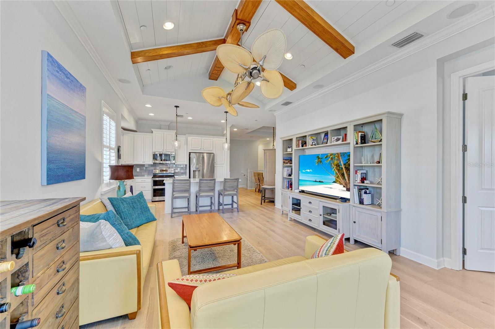 Welcome to this immaculate 3-bedroom, 3-bath, award-winning Andros-style home, perfectly situated in the gated coastal resort community of Harbour Isle on Anna Maria Sound. Nestled at the end of a quiet cul-de-sac, this premium homesite offers exceptional privacy and peaceful surroundings. With the main living room, sunroom, kitchen, and primary suite all facing west, you’ll enjoy expansive, unobstructed Sapphire Lake views and breathtaking sunsets every evening. This upgraded residence features beautiful, engineered wood flooring, designer lighting, and custom window treatments—including shutters and motorized blinds. The gourmet kitchen impresses with white cabinetry, newer GE stainless steel appliances, GE Café series refrigerator, double oven, and an extra quite Bosch dishwasher, sleek quartz countertops, and a generous island ideal for cooking and entertaining. The Great Room is enhanced by upgraded ceiling-mounted surround sound and an impressive 65” LG television for exceptional viewing and audio. Vaulted wood-beam and tray ceilings, crown molding throughout the common areas, shiplap accents in the guest room, wainscoting, and elegant French doors add warmth and architectural charm. A private elevator provides effortless access from the oversized two-car garage to the main living level. The tranquil primary bedroom boasts stunning water views and a spacious walk-in closet. beautiful mirrors flank each side of the king size bed. Most furniture can be included in this gorgeous home. Additional highlights include a 12-foot garage ceiling with abundant storage, a Trane air-conditioning system for year-round comfort. Just moments from the sugar-sand beaches and vibrant island lifestyle of Anna Maria, Harbour Isle offers an unmatched array of resort-style amenities. Enjoy scenic walking and biking trails, multiple pools, playgrounds, and the spectacular 23,000 sq. ft. Beach Club, complete with water views, Sky Bar restaurant, fitness center, resort-style pool, and private beach. Nearby, residents can also enjoy the Jimmy Buffett–inspired Compass Hotel, marina, and tiki restaurant. Outdoor enthusiasts will love the close access to Robinson Preserve and other pristine natural areas. Don’t miss the opportunity to make this exceptional coastal retreat your own—schedule your private showing today!