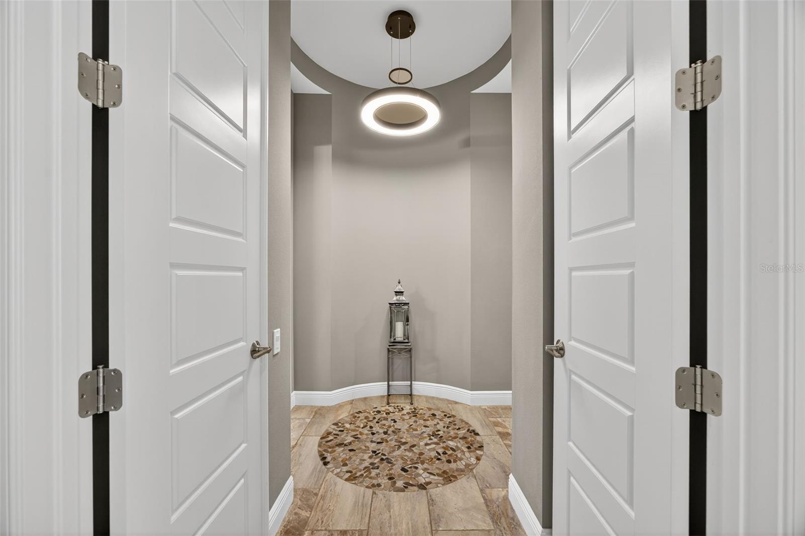 Here is the Slice of Heaven you've been waiting for in your forever home. This three-bedroom, three-bathroom, office and a larger den/flex home has thirteen-foot ceilings and fourteen-feet in the trays. Fabulous frontage with stone trimming, paver entry and three-car side load garage. Complete coverage with impact windows throughout and metal roof. Upon entry of the glass featured double front doors, you step on to stone tile floors and into the open floor plan living room with spectacular views through the sliders to lanai, saltwater pool/spa with waterfall, outdoor kitchen, pond and grounds. Stone featured wall with fireplace and shelving adorned wall and pocket four panel slider for extending the living space into the covered lanai. The tray ceiling kitchen has superior cabinetry, quartz counters, additional wine fridge, cabinet hidden entry to an extended and detail shelved larger pantry. Additionally, in the open plan is a dining space large enough for long table dining and has glorious views through infinity cornered sliders to the lanai and pond/preserve. Entering two glass doors into the spacious office having two long windows and two higher natural light windows. Additional double door entry to the Master suite hallway. Forward a grand master bathroom with separate sinks, extended cabinetry, long full tile shower part glass closure with larger Jacuzzi. External door to sun porch for morning coffee. Two master suite walk-in closets, each California closeted, and a spacious grand Master bedroom, door to the lanai and lovely views of the lanai, pond and preserve. Each of the two additional bedrooms are well sized, each with their own bathrooms. One bathroom with floor to ceiling tile for the walk-in shower and granite counter. The second, shower and bath tub with tile to ceiling, further granite counter. The crown trayed bonus/flex room is expansive, has double door closet, windows to the side and rear of the property. Utility room has cabinetry, larger wash sink and granite counter for folding. The five-acre property is true Florida ranch style with old oaks, a pond and room for two additional buildings. Property is touching one of the internal neighborhood equestrian trails. A perfect property to house your vehicle collection, Recreational vehicles or stable horses. This property has a simple HOA, but a community that cares about property values and respect. Saddlebag Creek is just a few minutes from Lakewood Ranch and Lorraine Road. The neighborhood road is community owned; there are several common ponds and two internal equestrian trails. Location is centered between Myakka City, St. Pete, Lakewood Ranch and Sarasota. This coastline has some of the best beaches in the United States.