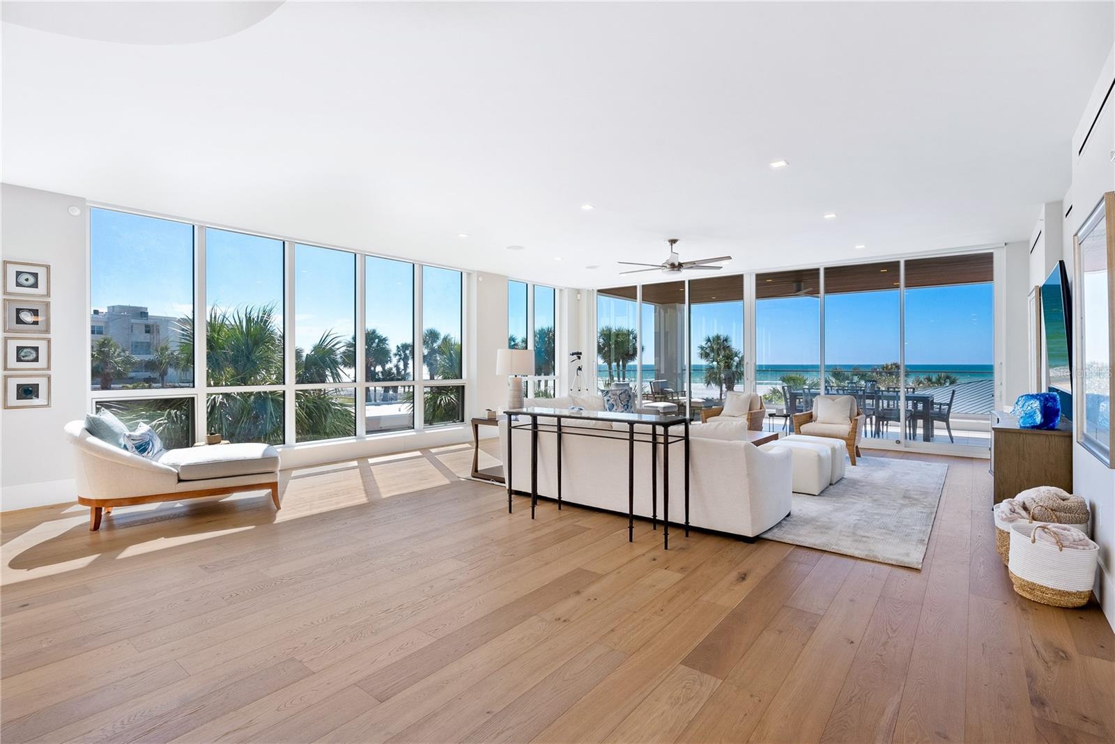 Welcome to Residence #201 at Halcyon Siesta Key—a rare opportunity within one of the island’s most exclusive boutique communities. With only six Gulf-front residences, Halcyon offers the ultimate in privacy, luxury, and architectural sophistication. This exquisite coastal retreat blends modern design with relaxed seaside living. Engineered hardwood floors, soft coastal hues, and floor-to-ceiling hurricane-impact windows frame sweeping views of the turquoise Gulf waters. Step off your private elevator into a bright, open floor plan designed for effortless entertaining. The gourmet kitchen features Wolf appliances, a wine fridge, and an oversized island flowing seamlessly into the dining and living spaces. The Gulf-front primary suite is a serene escape with a spa-inspired bath boasting dual vanities, a soaking tub, and a glass-enclosed shower. Two additional guest suites—each with private en-suite baths—offer exceptional comfort, while a versatile den/office provides flexibility for work or an additional bedroom. Unwind on your private Gulf-front terrace, where sunsets and sea breezes set the tone for everyday tranquility. Enjoy direct private beach access and the exclusive front amenity cabin, complete with a fitness center, bathrooms, comfortable lounge area, and an expansive deck ideal for entertaining or relaxing after a day by the water. A private two-car garage and resort-style amenities—including a beachfront pool and fire pit—complete this one-of-a-kind coastal lifestyle!