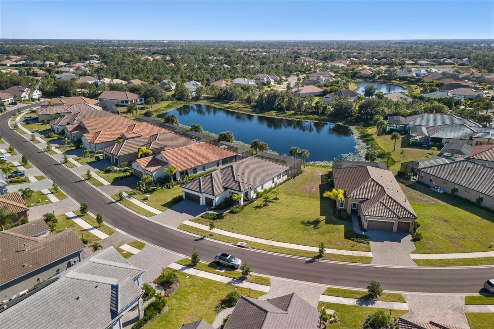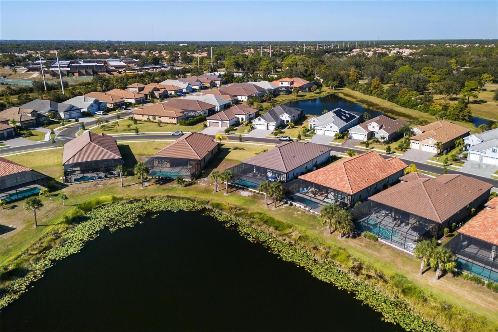 Under contract-accepting backup offers. Set on a peaceful lake with no homes across the water and a full width ClearView screen that frames the outdoors like a postcard, this home delivers true indoor-outdoor living. A southern facing lanai keeps the heated saltwater pool in the sun all day, and a huge covered outdoor living area features two premium Dan’s Fan City fans and an outdoor kitchen with gas BBQ grill, Green Egg smoker, and plenty of space to entertain. Stay comfortable in any storm with IMPACT WINDOWS, a WHOLE HOME GENERATOR, and the peace of mind of an X FLOOD ZONE where flood insurance is not required. Inside you will find soaring ten foot ceilings with crown molding, eight foot doors, luxury vinyl plank flooring, plantation shutters, smart home features including WiFi thermostats and a camera doorbell, and an eleven foot tray ceiling with 2 large impact glass sliders across the back of the home showcasing the water view. The chef inspired kitchen features quartz countertops, a walk in pantry with custom shelving, dovetail soft-close drawers, gas range, built in ovens, counter depth refrigerator, and a panel wrapped island with seating for six. The Sea Mist floor plan by Neal Communities offers a water view primary suite with dual walk in closets, a frameless glass walk in shower, and ceiling height mirrors, plus two guest bedrooms connected by a Jack and Jill bath with double vanity and a separate tub and shower room. A huge laundry room includes cabinetry, a sink, and LG front load washer and dryer. Built in late 2023 and barely one year old, this home has already completed its professional one year inspection, and all items were addressed through Neal Communities under warranty for genuine move in ready confidence. Pavers were professionally cleaned, leveled, and sealed in November 2025. Grand Palm offers resort amenities, and this property is located in an exclusive gated enclave with maintenance assisted lawn and landscape care included. Your home inspector is going to love this one. For showings, please enter through the River Road gates. Center Road gates are accessible to Grand Palm Residents only.