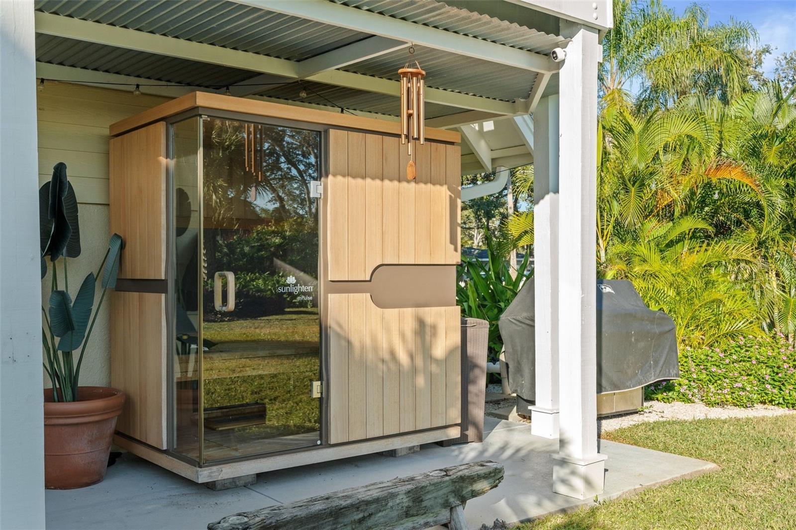 A Riverfront Retreat Where Coastal Living Meets Tranquility.. Immerse yourself in the serene rhythm of riverfront living in this custom-built coastal retreat on the Manatee River. Designed to embrace stillness, nature, and an effortless indoor–outdoor lifestyle, this home offers panoramic water views from nearly every room, whether you’re unwinding on the wraparound porch, greeting the morning from the owner’s suite balcony, or relaxing on the private deck of the guesthouse above the oversized two-car garage. Set on nearly one acre of lush, park-like grounds, the property feels like a secluded Old Florida sanctuary. 100+ year-old live oaks, breezy palms, and tropical gardens create a backdrop that enhances the home’s peaceful, retreat-like atmosphere. Inspired by coastal architecture and elevated with thoughtful craftsmanship, the main home features 3,411 sq ft, 3 bedrooms, and 2.5 baths, while a separate 600 sq ft studio with full bath offers flexible space for guests or a creative hideaway. Over 3,500 sq ft of covered porches invite you to slow down. Inside, a chef’s kitchen with Viking commercial appliances, granite counters, wood cabinetry, and a walk-in pantry anchors the home. A double-sided gas fireplace warms both the living and family rooms, while rich hardwood floors and detailed millwork bring timeless comfort throughout. Guests bedrooms with custom closets and feature either water or garden views. Upstairs, the owner’s retreat offers a spacious bedroom, flexible sitting/exercise/office alcove, two walk-in closets fitted with custom California closet systems, and a spa-like bath with footed tub, separate shower, and dual sinks. A private wet bar with refrigerator and a balcony overlooking the river complete this elevated sanctuary. The property’s resort-style amenities deepen the sense of escape: a saltwater pool and spa added in 2011, whole-home audio, central vac, and modern smart-home features. Built in 1999 to the 2004 code and updated in 2011, the home includes impact-rated windows, doors, and garage doors, plus newer Trane HVAC systems (main house 2020, studio 2019). The elevated design protected this home from severe flooding and a full crawl space for maintenance and storage. Also promoting whole-body wellness with a premium reverse osmosis system, a full-home salt-based water filtration, and a rejuvenating private spa experience featuring both a sauna and cold plunge, all designed to elevate daily living and support optimal health. A 320-foot dock with a 10,000 lb lift extends your living space into the river itself, a quiet place to take in sunrise or sunset, watch dolphins and manatees drift by, or cast a fishing line as pelicans glide overhead. 275 sqft of climate controlled and dehumidified storage space will keep all your gear ready and protected. All of this tranquility is perfectly balanced by proximity to vibrant coastal life: minutes to downtown St. Pete, the Bradenton Riverwalk, and the Gulf beaches, as well as dining, shopping, and cultural destinations. More than a home, this is a true waterfront retreat, and legacy estates like this are seldom on the market.