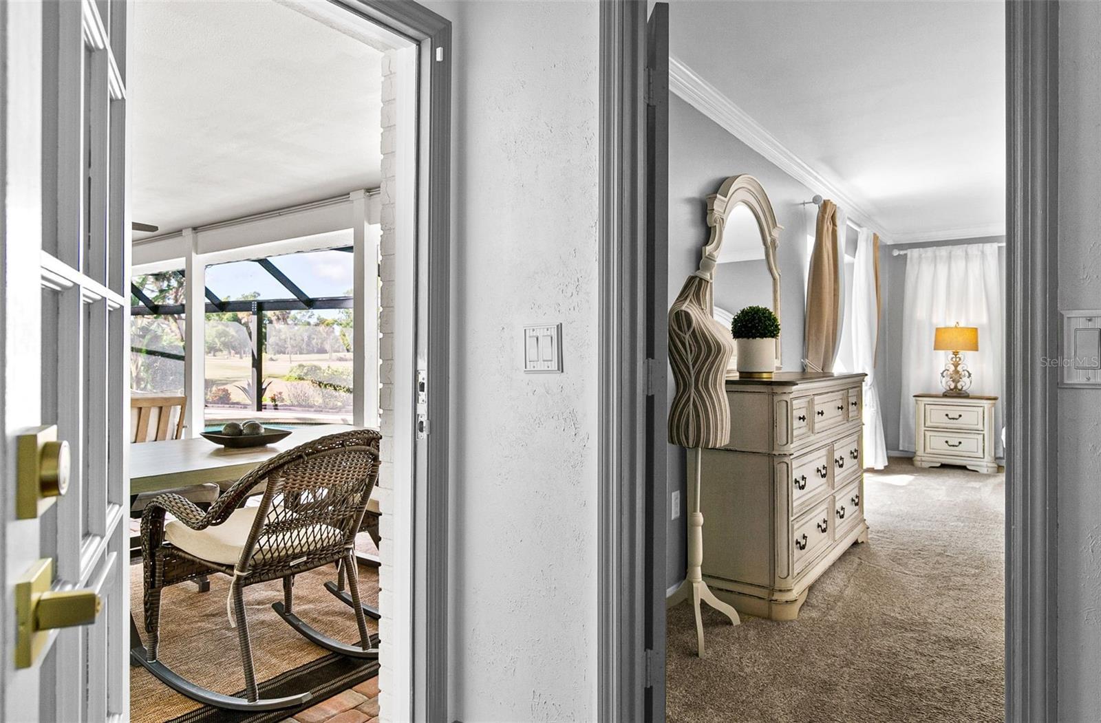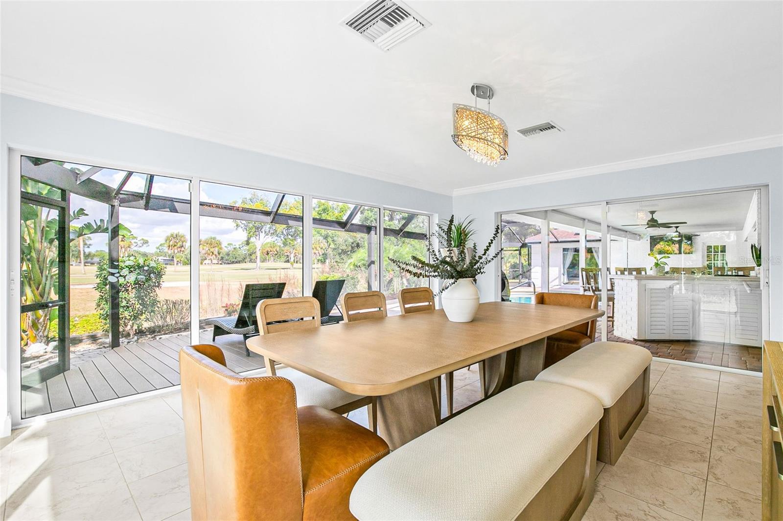 Welcome to this exceptional 5 bedroom, 3.5 bath home perfectly positioned at the end of a peaceful cul-de-sac on Bent Tree Golf Club. Designed for both upscale entertaining and comfortable everyday living, this residence offers a rare combination of privacy, elegance, and modern upgrades. Step inside to find formal living and dining rooms, crown molding throughout, and two charming wood-burning fireplaces that add warmth and character. The large designer kitchen features premium finishes, generous counter space, and seamless flow to the main living areas—ideal for gatherings of any size, a full wet bar elevates your hosting experience. The home features a NEW ROOF, NEW POOL CAGE and FULLY PAID SOLAR SYSTEM which provide unmatched efficiency and value for years to come. This smart home also includes a home gym, comprehensive security system, water softener/filtration, and thoughtful upgrades throughout. Outside, enjoy breathtaking sunset views from your private screened lanai and sparkling pool—your own serene retreat overlooking a manicured golf course. A rare opportunity to own a beautifully upgraded, move-in ready home in one of the area’s most sought-after neighborhoods.