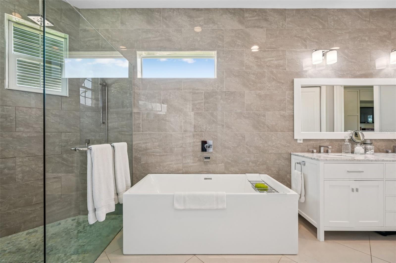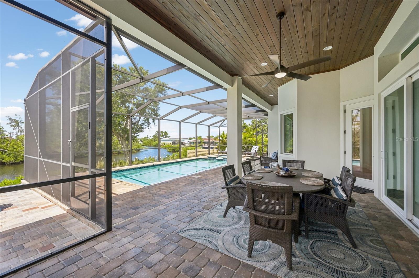 Waterfront Paradise on Curry Creek!! Step into a breathtaking waterfront sanctuary, where every detail invites you to immerse yourself in the beauty of nature. Set on over 1/3 acre of lush, tranquil surroundings, this home is a dream for wildlife enthusiasts, kayakers, boaters, and anglers alike. From your private dock, enjoy direct access to Roberts Bay and the Gulf of Mexico in just minutes. The outdoor oasis is nothing short of spectacular, with 270-degrees of unobstructed views overlooking a beautiful preserve beyond (bathing suit optional!). The outdoor living space features a heated pool and spa, expansive living spaces perfect for cooking, dining, and lounging, and a cozy fire pit area ideal for gatherings set up for outdoor movie watching. Witness the mesmerizing wildlife activity along the waterway—all framed by stunning sunsets. Inside, the residence boasts an inspired design with soaring 13-foot beamed ceilings and a thoughtfully crafted open floor plan. The gourmet kitchen, a culinary artist's dream, centers around a spacious island with wine storage, complemented by custom wood cabinetry, natural stone countertops, and elegant tray ceilings along with a walk-in pantry for exceptional storage. Top-of-the-line stainless steel appliances include a gas cooktop, dual built-in ovens (one microwave convection), a French door refrigerator and dishwasher. The master suite is a serene retreat, offering picturesque water views, coffered ceilings, custom built-ins and direct access to the private lanai. The spa-like master bath features dual vanities, a freestanding soaking tub for two, and a double rain shower, while the walk-in closet offers generous custom storage solutions. Each guest suite provides full en-suite baths and walk-in closets, ensuring unparalleled comfort and privacy. Additional architectural highlights include impact windows and doors for peace of mind, a site elevation of 12.1’, hardwood floors throughout, 8’ of stackable and disappearing living room sliders to the lanai, multiple ceiling trays and treatments, top of the line insulation, solid 8-foot doors, central vacuum. integrated structured wiring, a finished garage with 14-foot ceilings and extra storage. Situated just steps from the Legacy Trail and local favorites like Captain Eddie's, Joey D's, Chaz, Prime, La Botte and Café Evergreen, this home offers the perfect balance of tranquility and convenience. US-41 and I-75 are nearby, granting quick access to downtown Venice (5 minutes) and Sarasota (20 minutes). Nokomis Beach, one of Sarasota's most picturesque spots, is just a 5-minute drive, while top-rated schools like Pine View are within a 10-minute reach. With Sarasota Memorial Hospital's expansion and new shops, offices, and restaurants continuously transforming the area, Nokomis is truly a community on the rise. Don't miss this rare opportunity—schedule your private showing today and experience this extraordinary waterfront home for yourself.