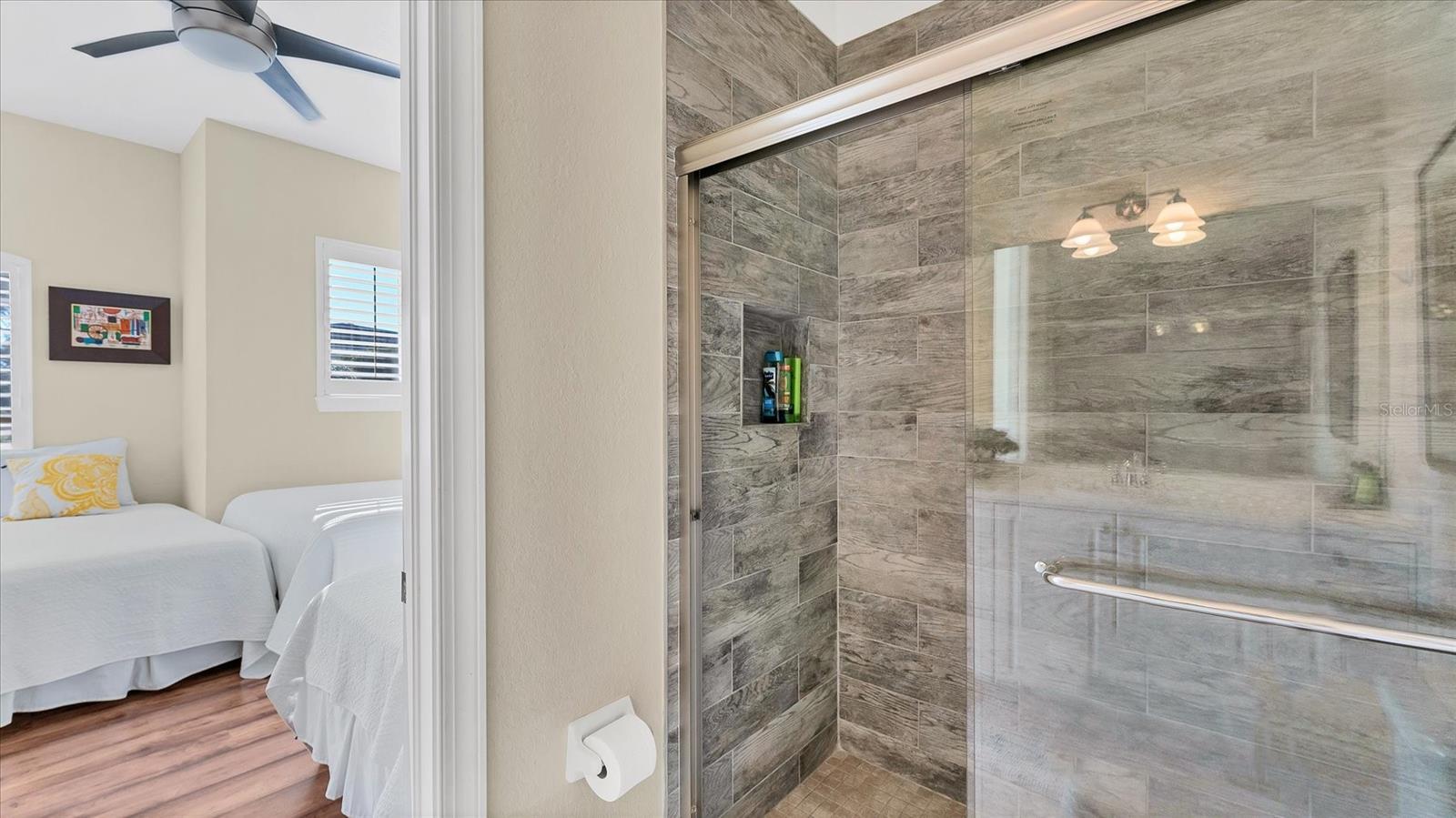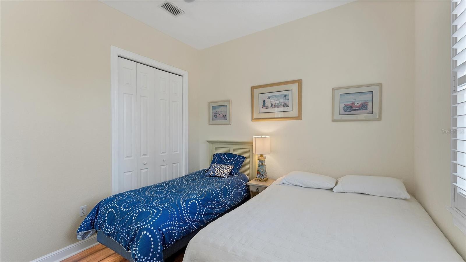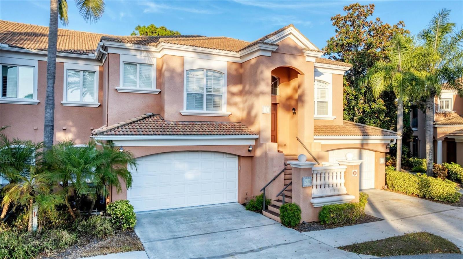 The lowest priced Furnished 4 Bedroom listing in Gated Academy Park Villas. Second/top floor spacious villa with vaulted ceilings and extra volume feel, situated in quiet cul de sac setting within a few steps to the community heated pool and hot tub. The villa is very well maintained, and has stainless steel kitchen appliances (2015), laminate flooring in family room and all bedrooms (2014), no carpeting. Huge kitchen with eat in space, large island, desk area, and plenty of pantry space. You will enjoy the screen porch with privacy setting overlooking trees. Master bathroom has large walk in shower, walk in closet, and lots of natural light. The villa also has ample storage with 4-5 spacious closets, nice window shutters, and a large sitting area in the master bedroom. For those attending the adjacent IMG Academy, they can walk, bike, or take the IMG tram for access to nearby campus facilities. Furniture available on separately negotiated bill of sale.