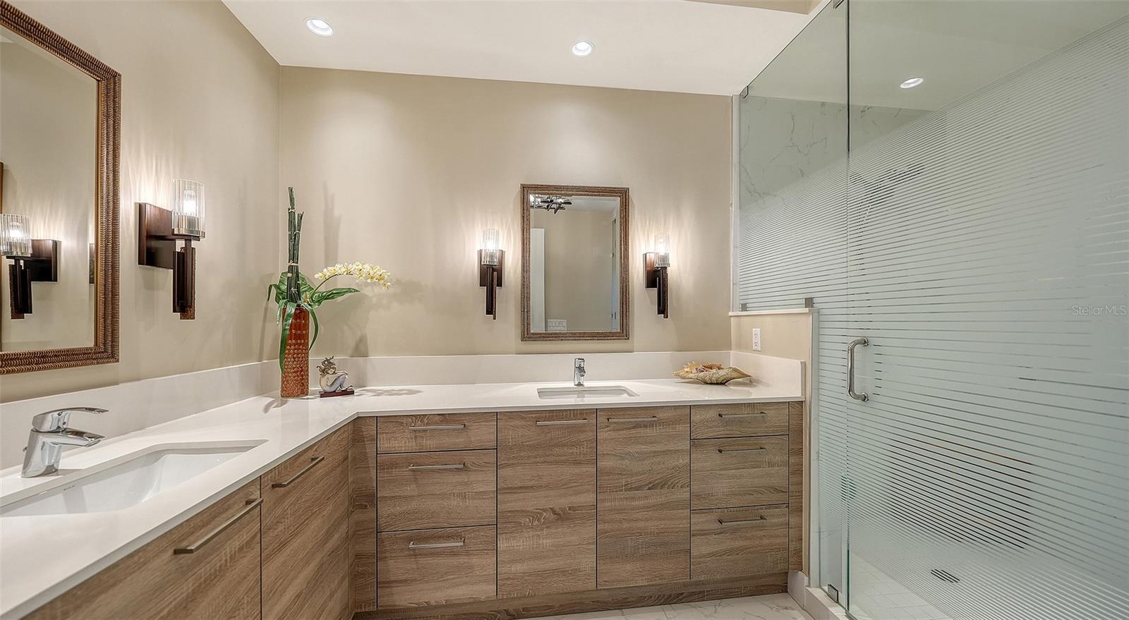 Welcome to The Mark- where it’s all happening in downtown Sarasota. This incredible city-view unit is the perfect height and position in the building- facing east for sun-filled mornings, it looks directly down State Street and at the city below. The Mark is a wonderfully amenitized newer building in the core of downtown Sarasota. Just out your front door is access to the finest in dining, shopping, and entertainment that Sarasota has to offer. Inside the building you will find a true oasis- you’ll be greeted by the friendly concierge, take the elevator up to you level and enjoy privacy and elegance. The amenities in the building include a heated pool and spa deck area with peek-a-boo views of the water and cityscape, outdoor seating and cabanas, a luxurious fitness center, meeting room, shared office area, grilling area, catering kitchen and much more. This unit stands out with one extra wide end parking space that was hand selected by the seller, and there is a 6x4 storage unit right across the hall. Inside this residence are lovely upgrades including tile in the main living area, automated blinds with blackout shades in the bedrooms, recessed can lighting, separate laundry room with sink, grass cloth accent walls and much more. You’ll love the open floor plan with bedrooms on either side, each with its own en-suite bathroom. There is a powder room for entertaining and abundant space for sitting and hosting in the main area. There is a tucked-away office area with built-ins, custom lighting throughout, and no storm concerns with impact glass windows in all openings! The luxurious kitchen features an island with bar seating, stainless steel appliances, custom glass tile backsplash and more. The primary suite offers abundant space, dual closets, bathroom with separately enclosed walk-in shower and commode, dual vanities, and access the balcony. The lovely east facing balcony is a great retreat to sit and let the day greet you, and even see the warm glow of sunset skies over the city in the evening. This unit has been lovingly cared for its original owner- don’t wait- schedule your private tour today!