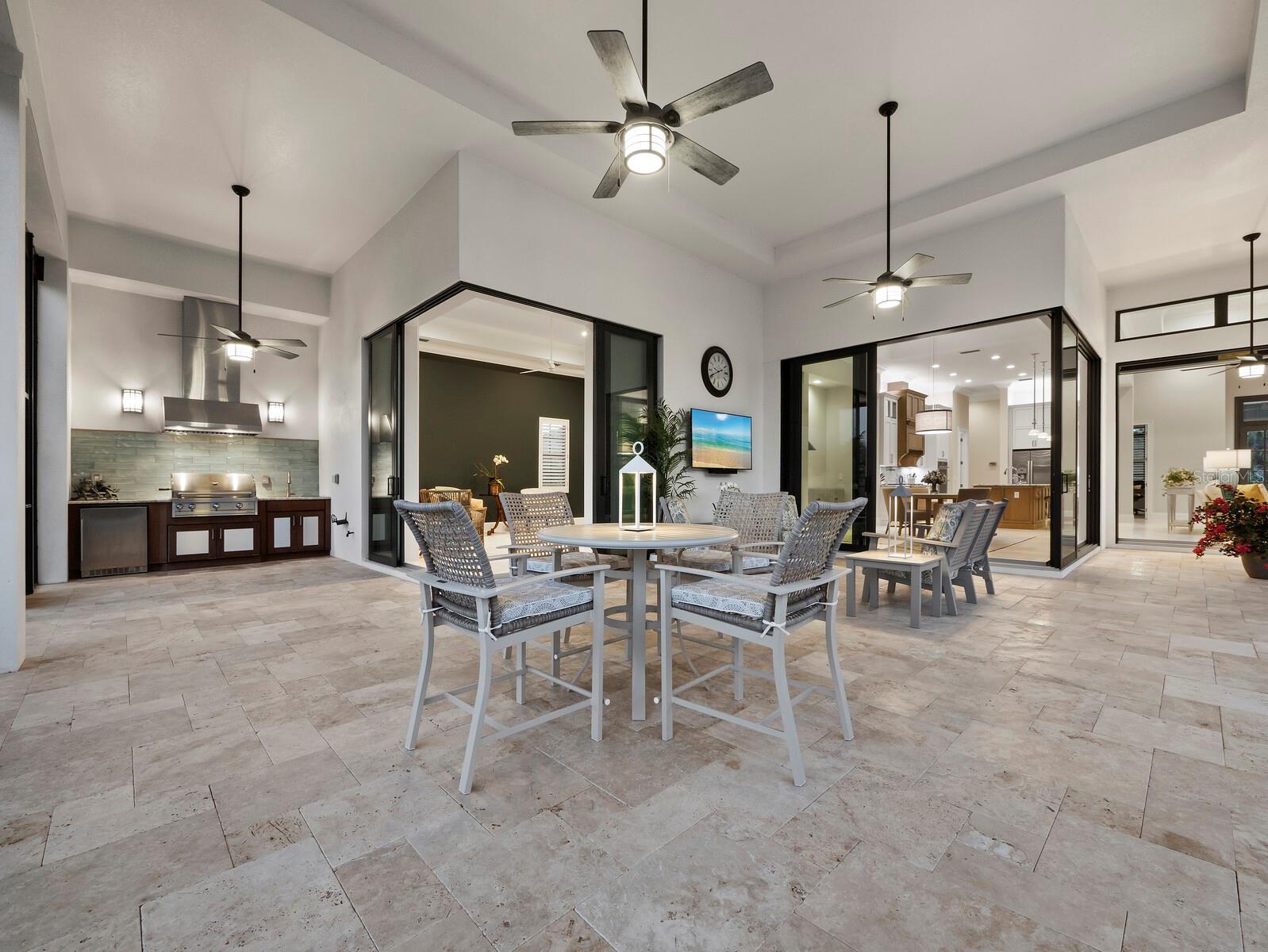 - Lighting, Outdoor Grill, Outdoor Kitchen, Rain Gutters, Sidewalk, Sliding Doors
