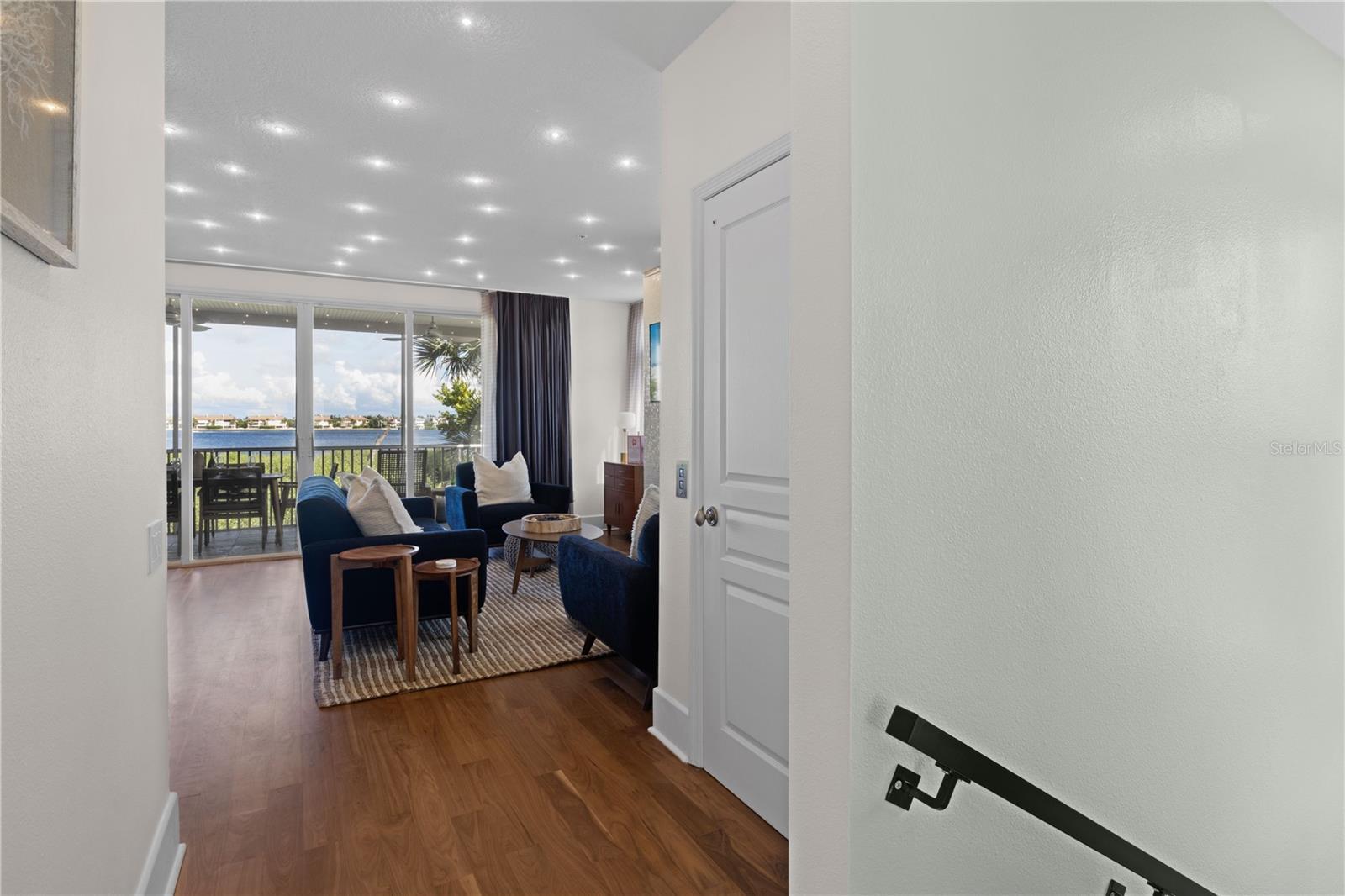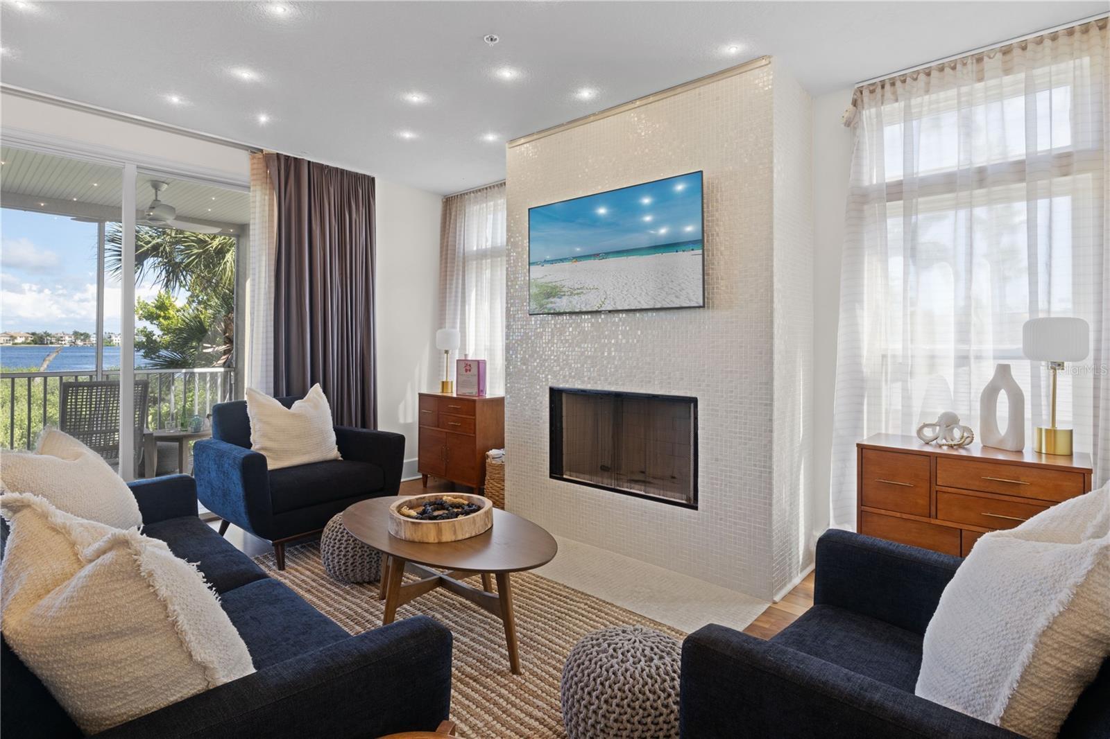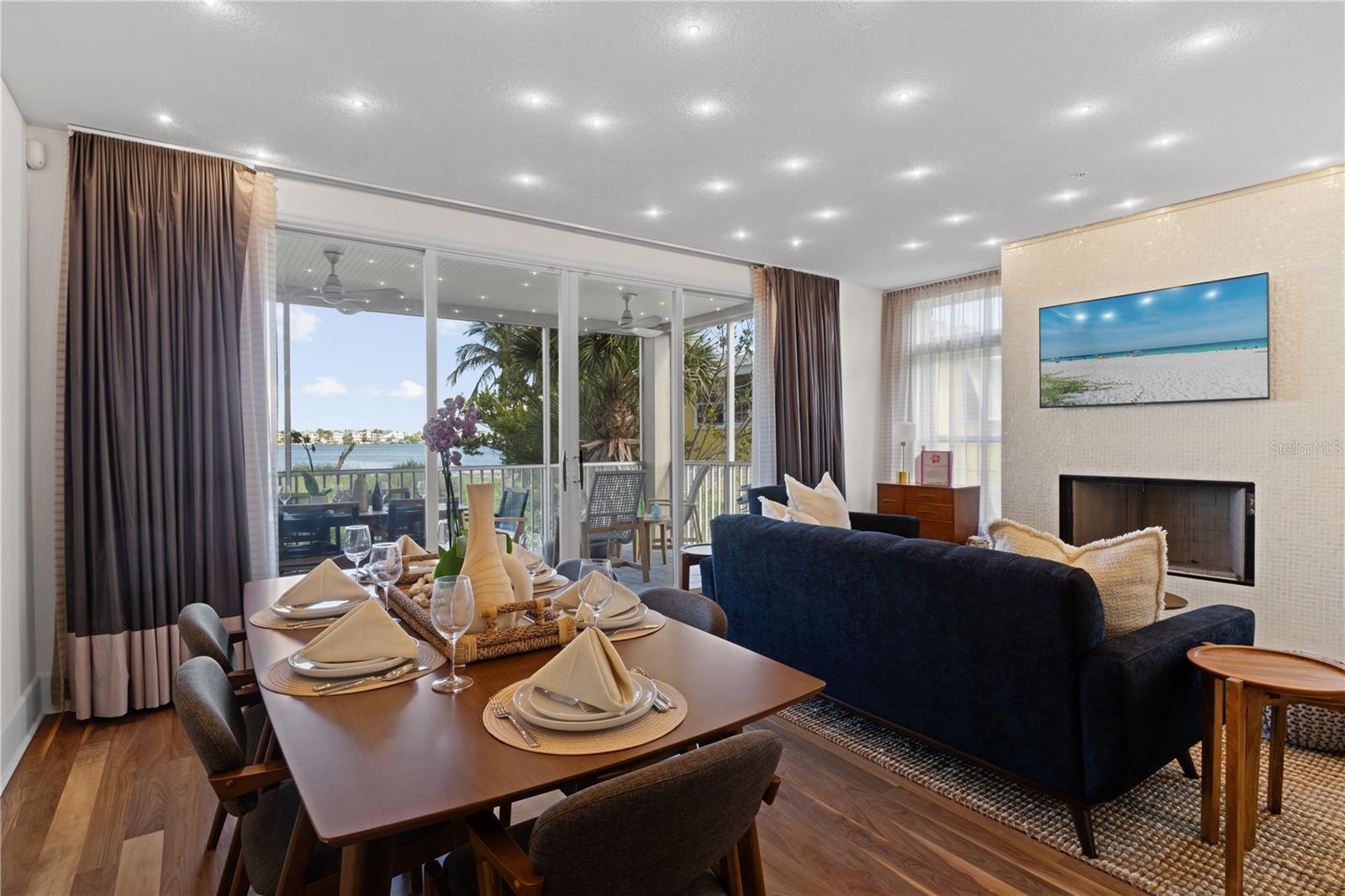 Under contract-accepting backup offers. Experience Elevated Coastal Living in this 3BR/2.5BA End-unit Bayfront townhome at the coveted Bradenton Beach Club. Perfectly positioned directly on the Intracoastal Waterway with a panoramic view and just steps to the Gulf, this residence blends modern luxury with a refined mid-century coastal aesthetic. Inside, you’ll find a thoughtfully designed interior featuring a Poggenpohl European kitchen, warm black walnut floors, custom lighting, built-ins, designer tile, and a sleek fireplace. A private elevator, security system, and generous storage add ease and sophistication to everyday living. The ground-floor bonus room—complete with a private entrance—is ideal for guests, a game room, or an exercise space. The home offers enhanced natural light and an open, airy flow. Step onto your private bayfront terrace and take in unobstructed, sweeping views of the Intracoastal—morning sunrises included. Then stroll across the street to your own private beach access at the end of the day for a sunset the never disappoints. Residents can enjoy resort-style amenities: private fishing pier, two pools (one beachfront), private beach access, fitness center, and a deeded Gulfside storage room for all of your beach gear. It is not often that an opportunity arises to enjoy bayfront living with convenient, private Gulf beach access. This is your chance for modern coastal living in one of Bradenton Beach’s most desirable communities.