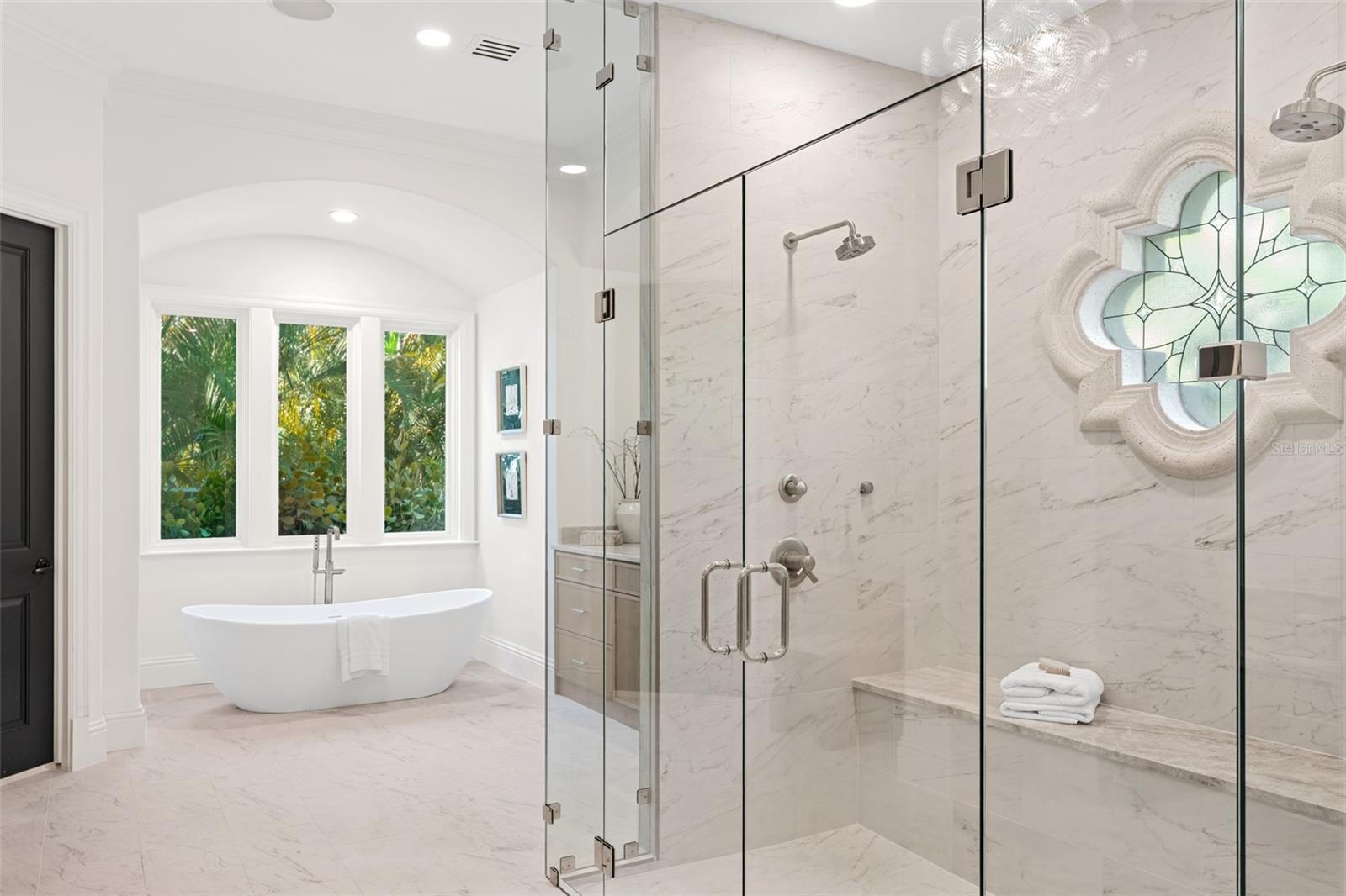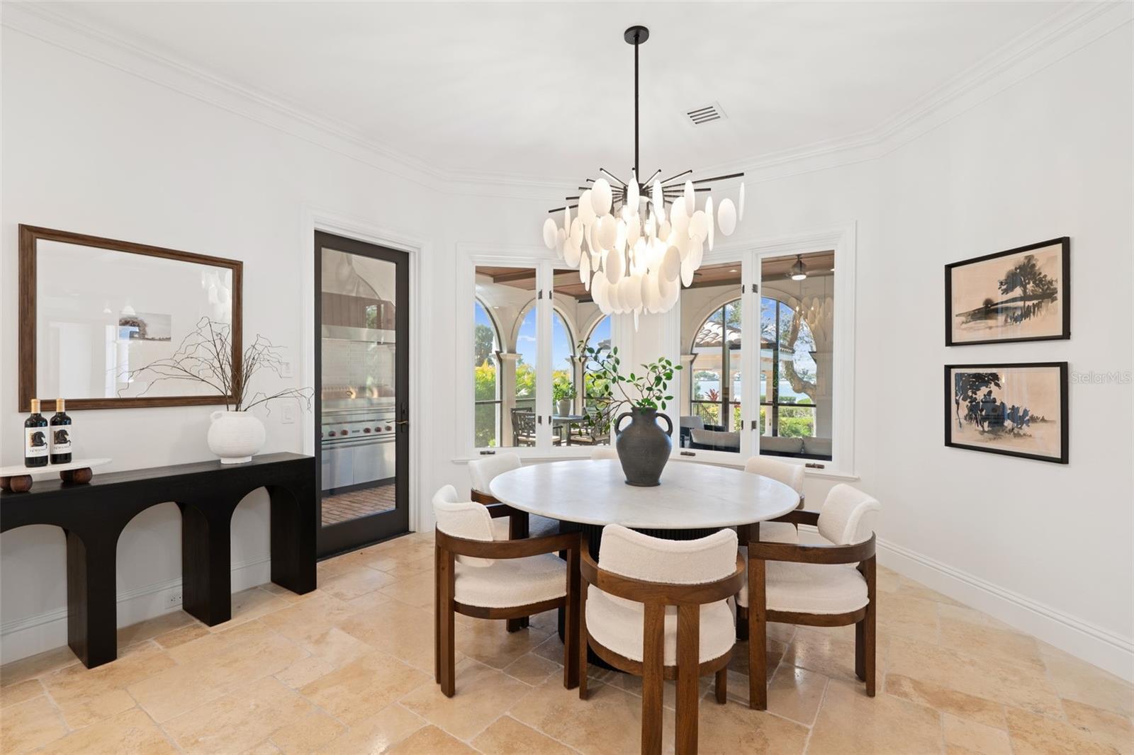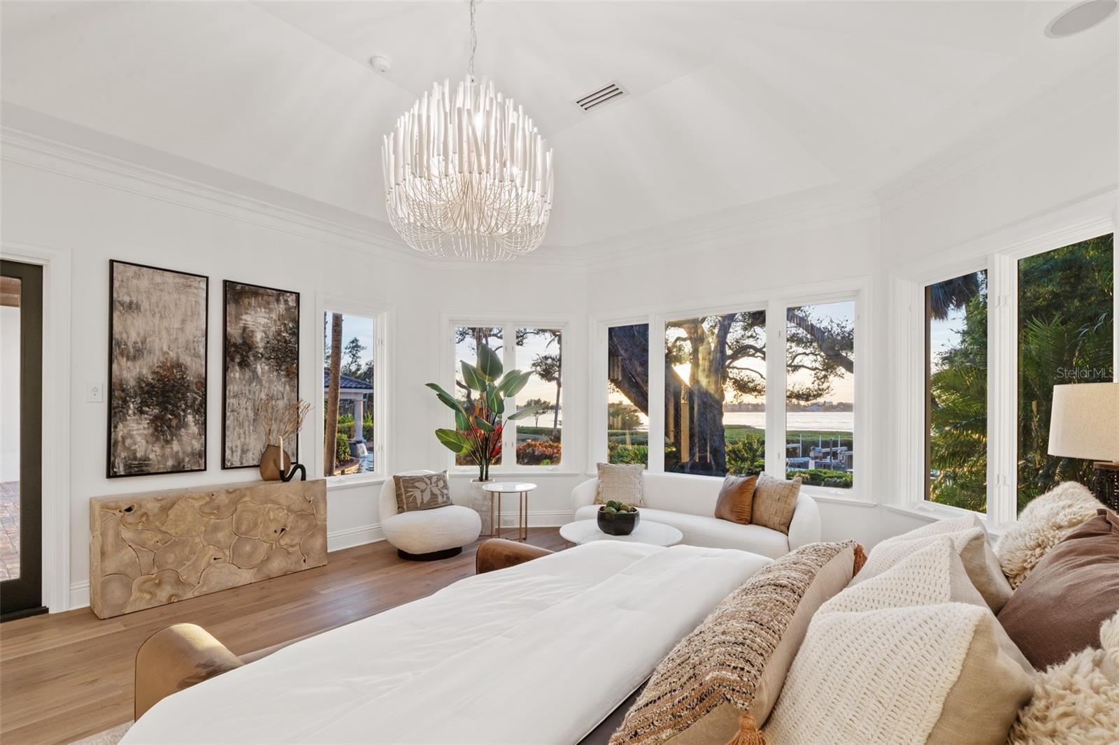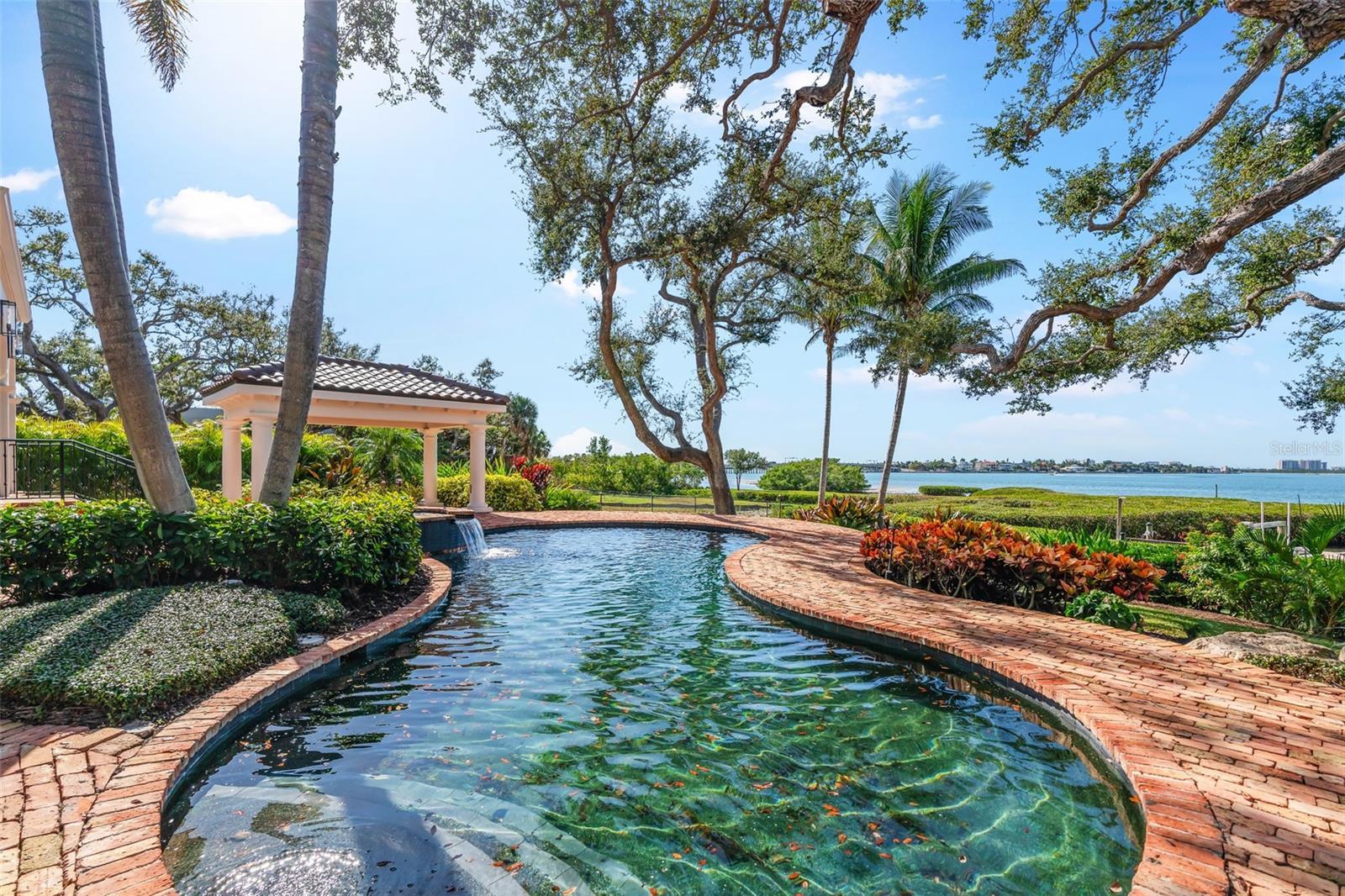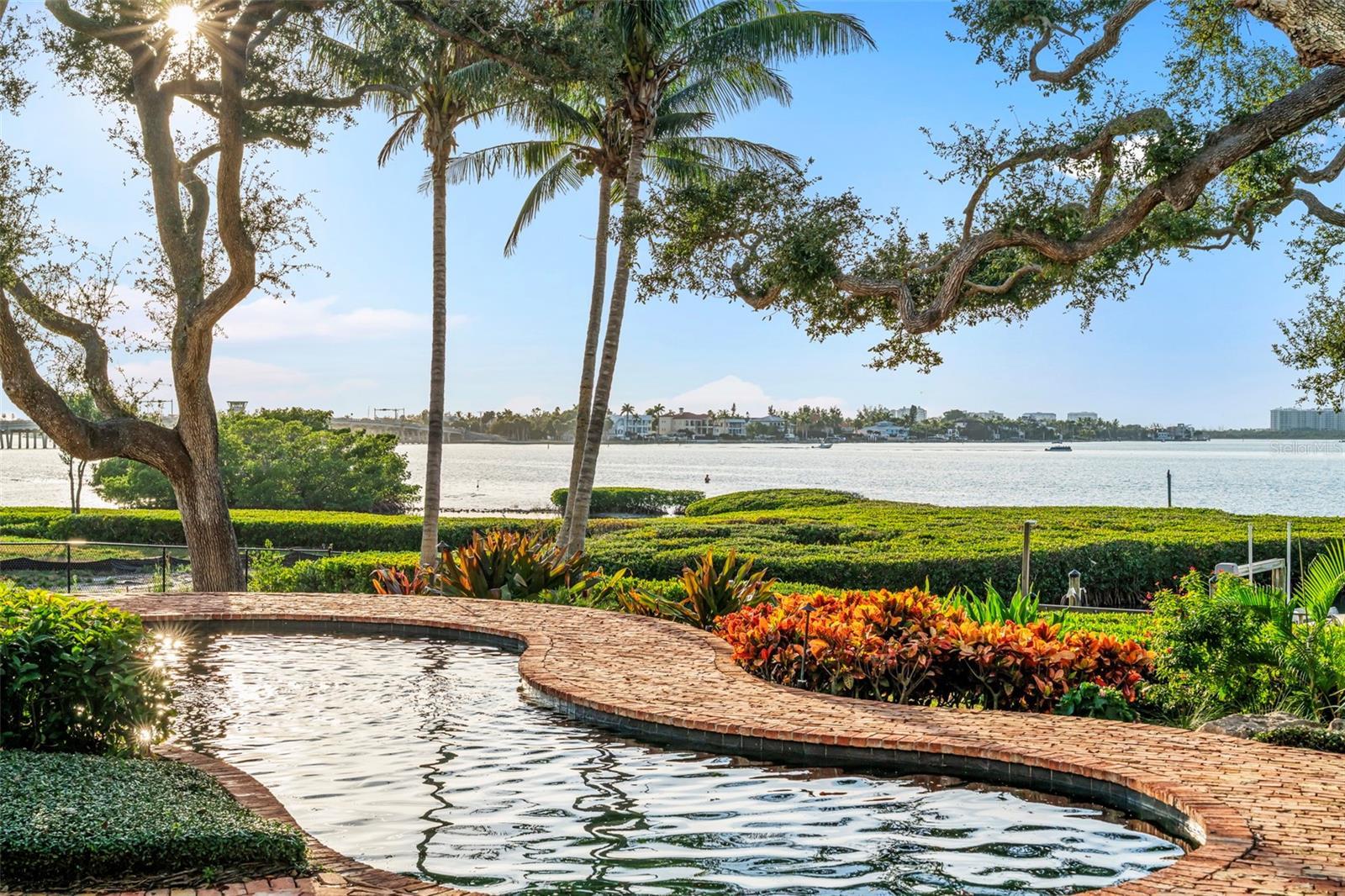 One of Sarasota’s greatest bayfront estates, this stunning 1.38 acre waterfront home has recently undergone a comprehensive renovation throughout, enhancing every room with refined finishes and modern systems while preserving its timeless architectural character. Hidden away at the end of Southwest Drive within the coveted Cherokee Park neighborhood, this 5-bedroom home offers exceptional seclusion and privacy, surrounded by lush, verdant landscaping, specimen trees and mature oaks, with tranquil water views providing a serene backdrop throughout the entire home. A masterpiece by design, this architectural gem was designed by esteemed architect Clifford Scholtz and built with impeccable craftsmanship by Rich Perrone of Perrone Construction. Among the recent exterior improvements are a new roof and gutters, fresh exterior paint, new decorative landscape lighting, and a refreshed outdoor shower. Inside, thoughtfully curated modern finishes and updates seamlessly blend with classic architectural details such as columns, archways, and a mahogany-paneled office, creating interiors that feel bright, open, and timeless. New European white oak flooring flows through the main living areas, while Stark carpeting adds warmth to the staircase, select bedrooms, and the bonus room. A culinary enthusiast’s dream, the completely updated kitchen boasts Taj Mahal leathered stone countertops, White Haze dolomite backsplash, a micro cement hood, painted cabinetry, an oversized island, new sinks and faucets, a Sub-Zero fridge/freezer, and more. The charming breakfast area and adjacent family room, featuring a new micro cement fireplace with Taj Mahal hearth, are set against a backdrop of expansive windows and glass doors that capture picturesque bay views. A luxurious and peaceful retreat, the elaborate primary suite features a beautifully updated bath showcasing new vanities with Taj Mahal countertops and Brizo fixtures, plus new flooring, soaking tub, and walk-in shower. Secondary baths throughout the home have also been refreshed. Covered patios and loggias extend from the main living areas, creating ideal spaces for relaxation and enjoyment. Upstairs, the expansive gathering room impresses with its custom Perla Venata quartzite bar, freshly painted ceiling beams, large windows, and balcony access overlooking the bay, pool, and lush grounds. This is the perfect perch to enjoy large gatherings, relax at the bar, shoot pool, or have friends and family over on game day. Outside, the property unfolds as a private oasis, with a screened porch featuring Chicago brick pavers, a Wolf gas grill, Sub-Zero fridge, and refreshed finishes including a tiled backsplash, updated hardware, new sink and faucet, and refinished cabinetry. Chicago brick pavers also surround the free-form pool, creating a cohesive outdoor living environment. At the water’s edge, boaters will delight in the protected deep-water boat basin with two lifts (10,000-lb. and 16,000-lb. capacities), providing effortless maritime adventures. A detached oversized 3-car garage, connected by a covered walkway, provides ample space for storage or workshop use. Additional updates of note include updated HVAC systems, tankless water heaters, and modernized electrical throughout. A whole house generator rounds out the superlative systems. This exquisitely updated estate represents a rare offering where timeless elegance meets modern sophistication on one of Sarasota's most extraordinary waterfront settings.