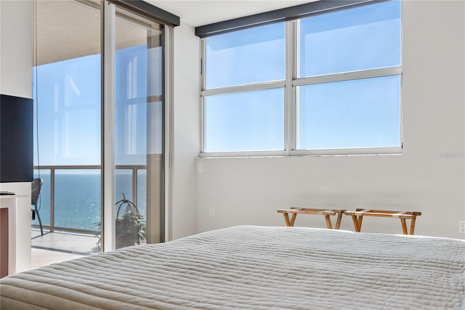 Experience luxury coastal living at its finest in this completely renovated 2-bedroom, 2.5-bath residence with an additional office at L’Elegance on Lido Beach. Perched on the 8th floor, this stunning condominium offers both Gulf and Sarasota Bay views from multiple balconies, delivering an ever-changing backdrop of sunsets, sailboats, and shimmering water. Step inside to an expansive, light-filled layout redesigned with modern living in mind. The newly enlarged kitchen features a wrap-around solid-surface counter-height bar—perfect for casual dining or entertaining—along with premium cabinetry, updated appliances, and dual beverage refrigerators. An expanded doorway to the office enhances the open feel of the home and was thoughtfully designed to capture even more of the breathtaking water views, whether you’re working or relaxing. The spacious primary suite offers a true retreat with a large walk-in closet and elegantly updated bath. A second ensuite bedroom ensures comfort and privacy for guests. Additional conveniences include an in-unit stacked washer and dryer, ample storage, and storm shutters for peace of mind. Located in the prestigious, gated L’Elegance community, residents enjoy resort-style amenities on one of Florida’s most coveted beachfronts. This fully renovated, view-rich residence combines contemporary sophistication with effortless coastal living—an exceptional opportunity on Lido Key