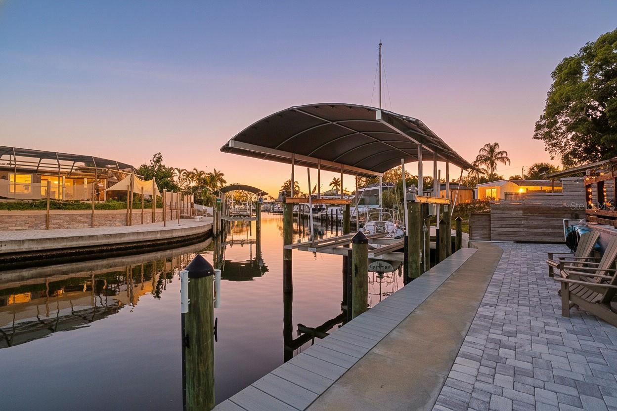 Paradise Found! Waterfront doesn't always have to come with a $5 million dollar price tag! Fully remodeled waterfront oasis just mere minutes of a boat ride from Sarasota’s best beaches, downtown, Longboat Key, and Anna Maria Island. Experience the ultimate Florida coastal lifestyle in this stunning, completely remodeled 4-bedroom, 3-bathroom canal-front home offering 2,498 sq ft of modern luxury and effortless indoor-outdoor living. Enjoy canal-front living on a through canal with easy access to waterfront restaurants, the sandbar, and only a quick 5-minute boat ride to Sarasota Bay (no fixed bridges!), you’re perfectly positioned between world-famous Siesta Key Beach, charming Anna Maria Island, vibrant downtown Sarasota, and the upscale boutiques and dining of St. Armand’s Circle—all within a 15–25 minute drive. This elevated home sits higher than surrounding canal-front properties, offering peace of mind with lower insurance costs. Step inside to bright, open-concept living with durable tile-plank flooring throughout, a gourmet kitchen featuring sparkling quartz countertops, soft-close cabinetry, and stainless appliances, plus a spacious great room that flows seamlessly to the waterfront lanai and pool area. Inside the master retreat you'll find water views, sliders to the screened in lanai, his and her dual sinks, stand alone tub for relaxing nights, large walk-in shower, and a walk in closet. The split-bedroom floor plan provides privacy for owners and guests alike, with generous closets and beautifully updated baths. New hurricane-impact windows provide added safety and storm protection. Your private backyard resort awaits: Saltwater pool with energy-efficient Hayward variable-speed pump, 53 ft of deep-water canal frontage with newer vinyl seawall panels, 10,000 lb remote-controlled power boat lift - bring your yacht or center-console and be on the open bay in minutes! Expansive paver patio with outdoor kitchen, multiple entertaining areas and tropical landscaping with nighttime accent lighting. Additional stand-out features: Oversized driveway + covered 4-car carport (perfect for toys, guests, or RV/boat trailer parking). Whole-house water purification system, newer 5-ton A/C system and tankless water heater for year-round comfort and efficiency, and full ADT security system with exterior cameras and motion-activated lighting. No HOA, no CDD fees — true freedom to enjoy your property your way. Community perks include a freshly remodeled clubhouse and amenities (updated 5–6 years ago), an optional marina with wet-slip rentals, and a private boat ramp for just $80/year. Whether you’re looking for a full-time residence, a vacation retreat, or an income-producing seasonal rental, this turn-key waterfront gem delivers the best of Sarasota living: quick access to sugar-sand beaches, boating freedom, SRQ Airport, IMG Academy, and downtown culture - all without the restrictions or fees. Homes like this, with direct Gulf access and this level of recent renovation, rarely last long. Schedule your private showing today and start living the saltwater dream!