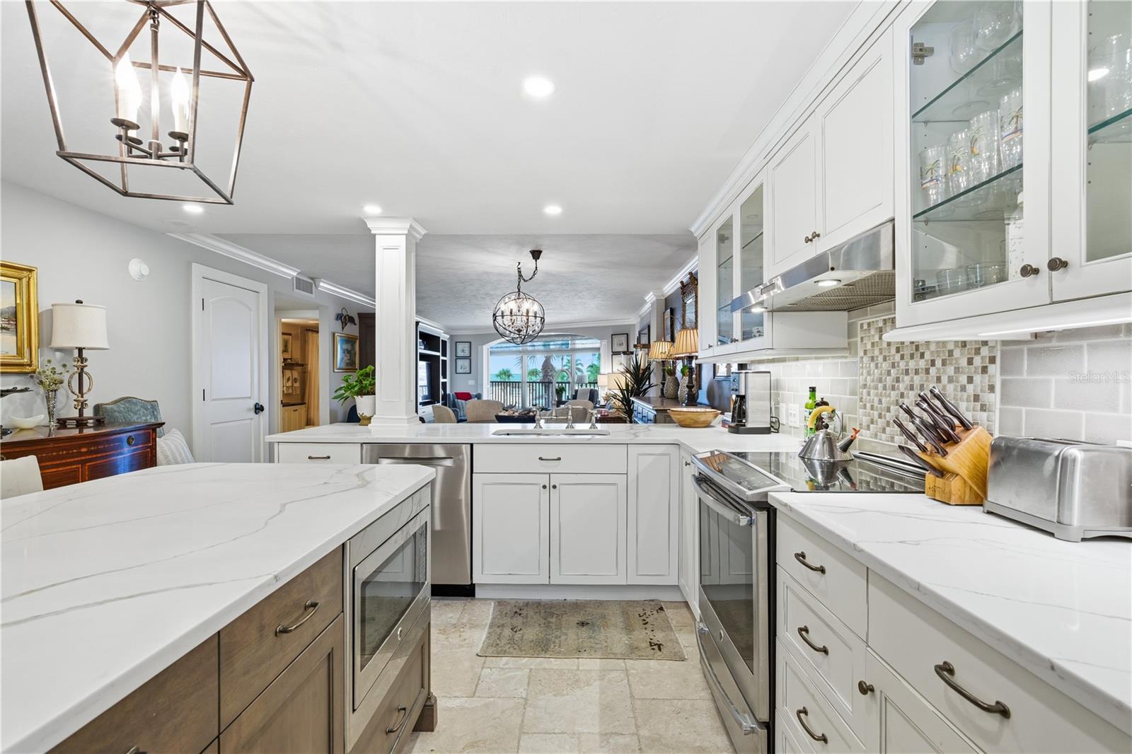 Welcome to Casarina, one of Siesta Key’s most beautifully updated beachfront communities—and a place that truly captures the best of coastal living. This beautifully renewed 2-bed, 2-bath residence in Unit 302 blends comfort, quality, and a relaxed island feel from the moment you walk in. The entry opens to a light-filled space accented with custom-built-in cabinetry, detailed mouldings, and upgraded luxury lighting that makes the home feel warm and inviting. The enclosed lanai adds valuable living space and creates a bright, peaceful spot to unwind with your morning coffee or enjoy quiet evenings after a day on the beach. The kitchen is refined and functional with modern updates, under-cabinet lighting, and a smooth flow into the dining and living areas—perfect for easy everyday living or hosting guests. The primary suite offers a calm retreat with a renovated bath and generous closet space, while the guest bedroom provides comfort and privacy for visitors. You’ll also appreciate the in-unit laundry with additional storage space. Casarina offers a true resort-style experience across 7 acres of lush, tropical landscaping. The entire property has been thoughtfully reimagined to elevate outdoor living. Generous in size, the pool offers ample room for both lap-style swimming and relaxed lounging, all set just steps from the sand. The surrounding oversized sun deck provides abundant seating, shaded areas, and open spaces to soak in the Florida sunshine. Residents enjoy pickleball and tennis courts, a grilling pavilion with outdoor kitchen space, and private pathways that lead to the community’s deeded Crescent Beach access—one of the most pristine stretches on Siesta Key. The building features secure key-fob entry, a sleek glass elevator, and impeccably maintained grounds that create a peaceful, upscale coastal environment. A rare private garage space, highly coveted in beachfront communities, adds exceptional convenience and value. Living in Casarina means embracing a laid-back coastal lifestyle where every day feels like a getaway. Enjoy morning beach walks on powder-soft quartz sand, sunset dinners at waterfront restaurants, and a vibrant local scene filled with boutique shops, live music, and outdoor recreation. With its welcoming community and effortless blend of luxury and leisure, Casarina offers a lifestyle that truly feels exceptional.