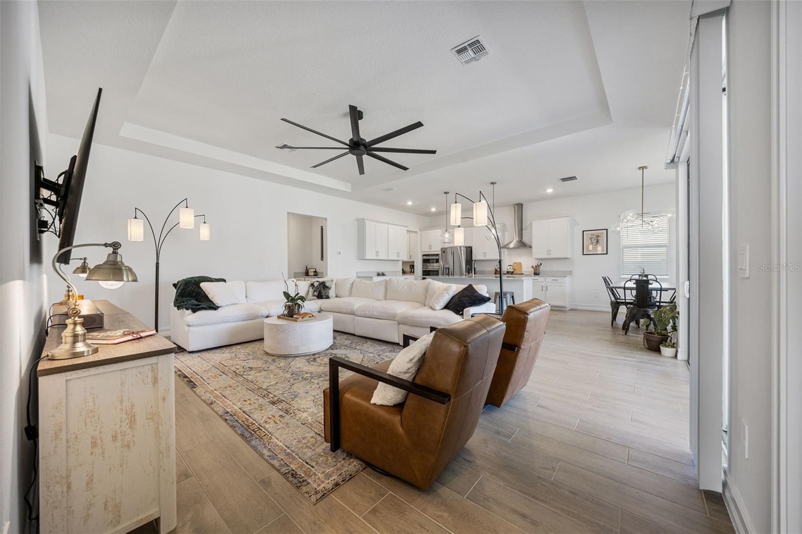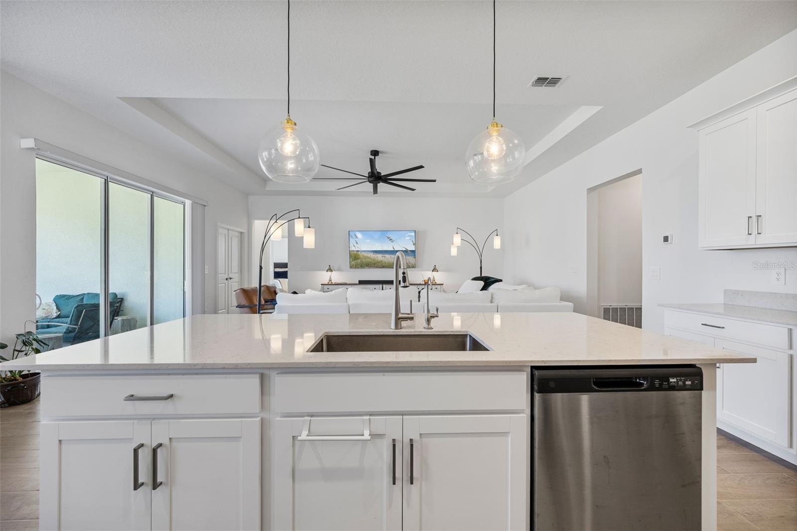 - Ceiling Fans(s), Coffered Ceiling(s), Dry Bar, Eat-in Kitchen, Kitchen/Family Room Combo, Living Room/Dining Room Combo, Open Floorplan, Solid Surface Counters, Solid Wood Cabinets, Thermostat, Walk-In Closet(s)