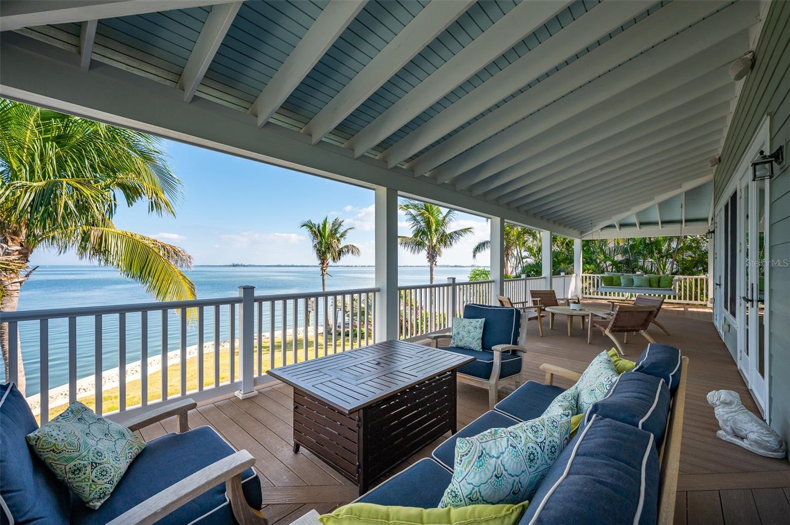 Welcome to this 4,995-square-foot architectural masterpiece designed by well-known architect Gene Aubry, featuring five bedrooms, five baths, an office, a second living area and a gym, all on 225 feet of direct bay frontage in Holmes Beach. This bayfront estate in the heart of Anna Maria Island reflects superior craftsmanship and thoughtful detail, from the hand-scraped maple flooring, metal roof, to impact-resistant Anderson windows, new high efficiency air-conditioning units, tankless water heater, an oversized garage with new epoxy flooring, an updated spa-style primary bath and an elevator servicing all levels. The chef's kitchen is equipped with Sub-Zero refrigeration, Wolf and Bosch appliances, a new built-in ice machine, beverage cooler and custom cabinetry ideal for everyday living and elevated entertaining. Additional features include whole-home audio and security systems, a dedicated gym with epoxy flooring and a bonus room pre-plumbed for an efficiency kitchen. Outdoors, professional landscaping with curated lighting surrounds a saltwater pool and spa with all-new equipment. Irrigation is supported by a rain-fed cistern system. A composite wraparound deck that is plumbed for an outdoor kitchen, and a mosquito-control misting system for added comfort while enjoying unobstructed bay views. Boaters will appreciate the new seawall, 10,000-pound lift and fish cleaning station. This rare waterfront estate presents the opportunity to own a residence that embodies architectural integrity, refined island living and modern luxury.
