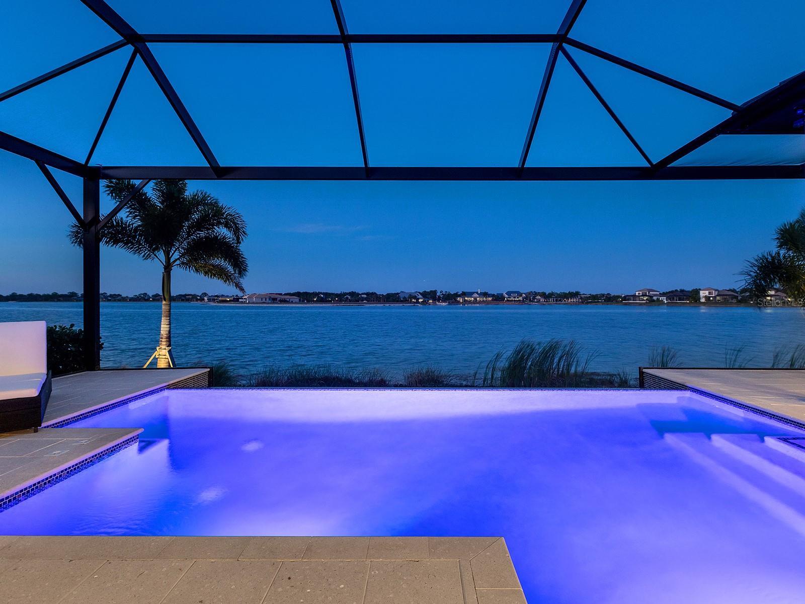 Sophisticated, elegant, and timeless - this completely custom 2023 Arthur Rutenberg residence is the home of your dreams. Inspired by California design, this modern/mid-century residence is filled with clean lines, plus elements of wood, stone, and bathed in glass to capture the views and provide seamless indoor-outdoor living on an exceptionally private lakeside lanai. With only 12 homes on this desirable street in Lakehouse Cove you'll be close to the clubhouse and amenities, plus all of the advantages of Waterside Place just 2 miles away. This home features open entertaining space plus a private study, and multi-functional bonus room. From the long driveway with meticulous landscaping, you’re welcomed home to a sweeping foyer displaying the fine features you’ll find throughout this residence including oak wood flooring, custom ceilings with crown molding, modern square recessed lighting, designer light fixtures, and lake views that can be seen from almost every room. The central great room is the heart of the home with a warm wood feature wall, disappearing corner impact sliding glass doors to the lanai, and custom window treatments. The lanai is reminiscent of a five-star luxury resort with its heated saltwater infinity edge pool, separate above ground heated spa, private cold plunge, and panoramic views of the lake. The covered entertaining areas have wood ceilings, speakers, remote control hurricane screens, and custom outdoor kitchen. Enjoy your meals alfresco, or in the expansive indoor dining room with dry bar, and its own impact sliders with lake views. The kitchen is the penultimate chef’s experience with multiple lit tray ceilings, central island with apron sink, two-tone modern wood cabinetry to the ceiling, full-height quartz backsplash and counters, and cleverly hidden walk-in pantry completely lined with cabinetry and its own full-size refrigerator. The Thermador professional-grade stainless steel appliance suite makes preparing every meal a delight with 36” gas cooktop with 6 burners, dishwasher, built-in wall oven and microwave, plus 36” refrigerator, 36” freezer, and a full-size wine refrigerator. Even working from home is enjoyable with a private study featuring custom cabinetry with lots of storage and built-in quartz desk. The multi-functional rear bonus room is suitable for any activity with a lofted desk area featuring custom cabinetry, media space with lake views, and dry bar with wine cooler. Ultimate relaxation is found within the hotel-inspired primary suite with fabulous lake views, oversized walk-in closets, and an en-suite bathroom that rivals the Ritz complete with floor-to-ceiling tile, dual sinks on split vanities, modern freestanding tub, and the walk-in shower of your dreams with rain shower head and steam functions. Guests will find comfort in their two guest bedrooms with en-suite bathrooms, one of which has access as a pool bathroom. Rounding out this one-of-a-kind residence is a large laundry room with plentiful storage cabinetry and 3-car air-conditioned garage with a private infrared sauna, workshop, and 2 EV chargers. Peace of mind is ensured with impact windows and doors throughout, additional hurricane screens on the lanai for added convenience, and a whole house generator. Lakehouse Cove offers the best amenities in Waterside with an upscale clubhouse, lakeside pool and spa, fitness center, playground, dog park, walking trails, and dock house for lake access and kayak storage.