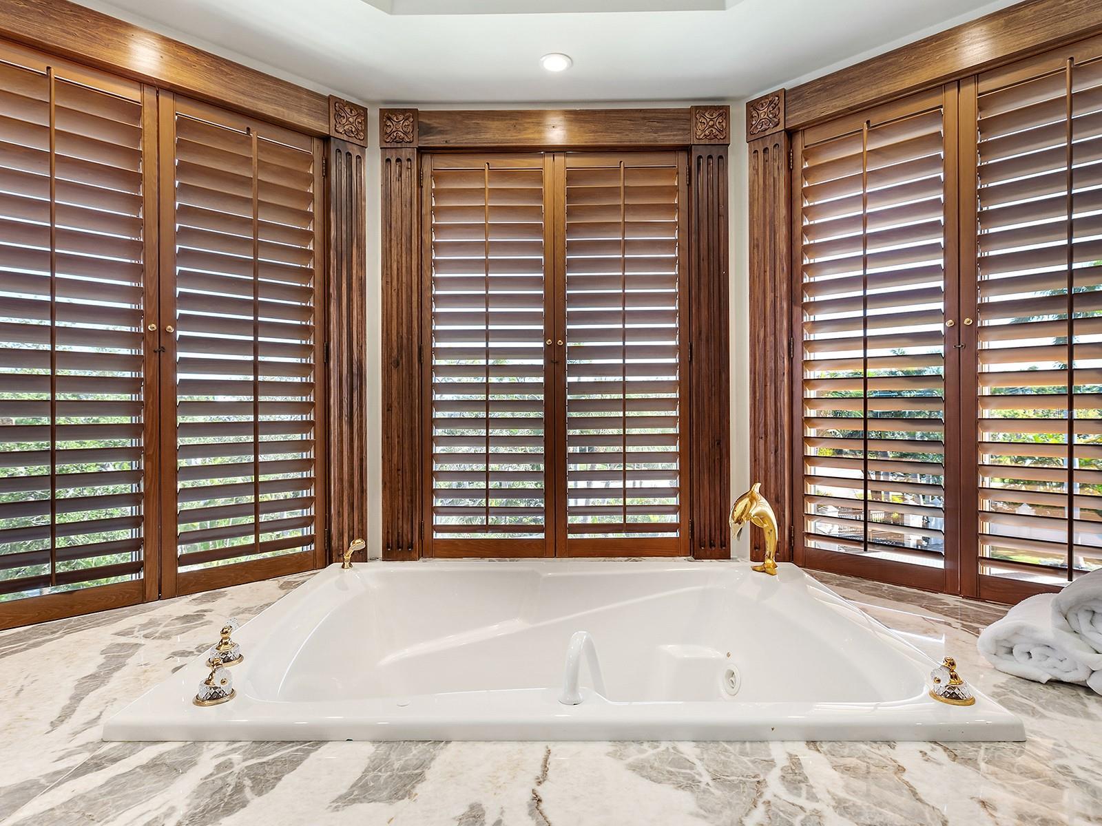 - Built-in Features, Cathedral Ceiling(s), Ceiling Fans(s), Crown Molding, Eat-in Kitchen, Elevator, High Ceilings, Primary Bedroom Main Floor, Solid Surface Counters, Solid Wood Cabinets, Split Bedroom, Stone Counters, Walk-In Closet(s), Wet Bar, Window Treatments