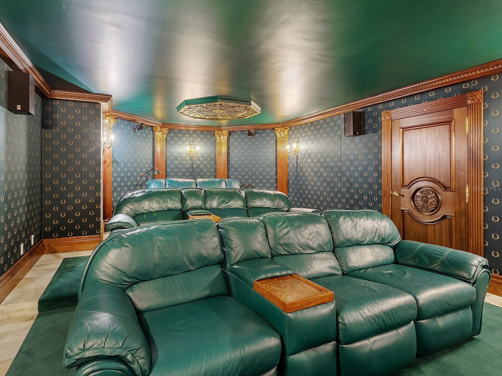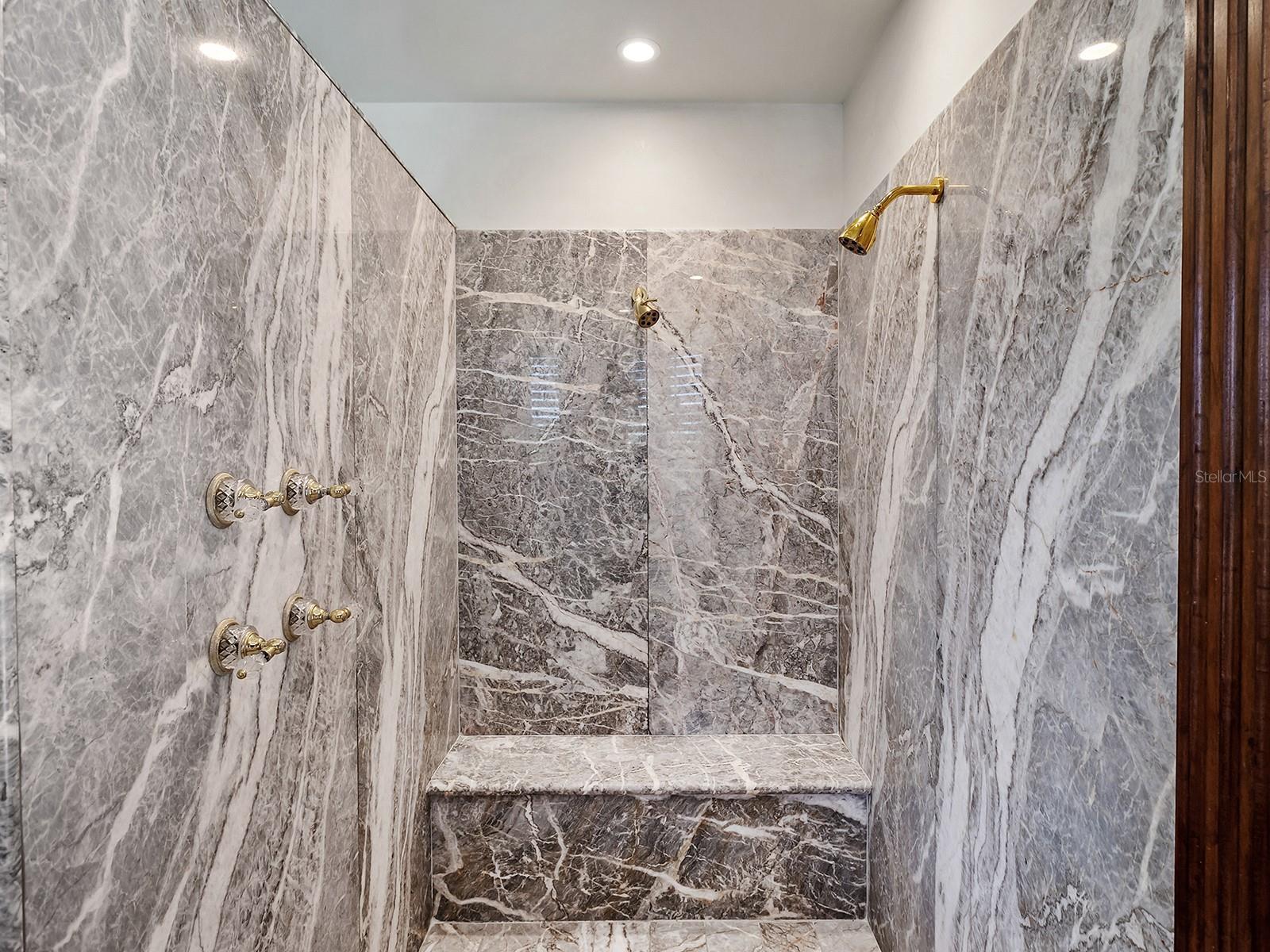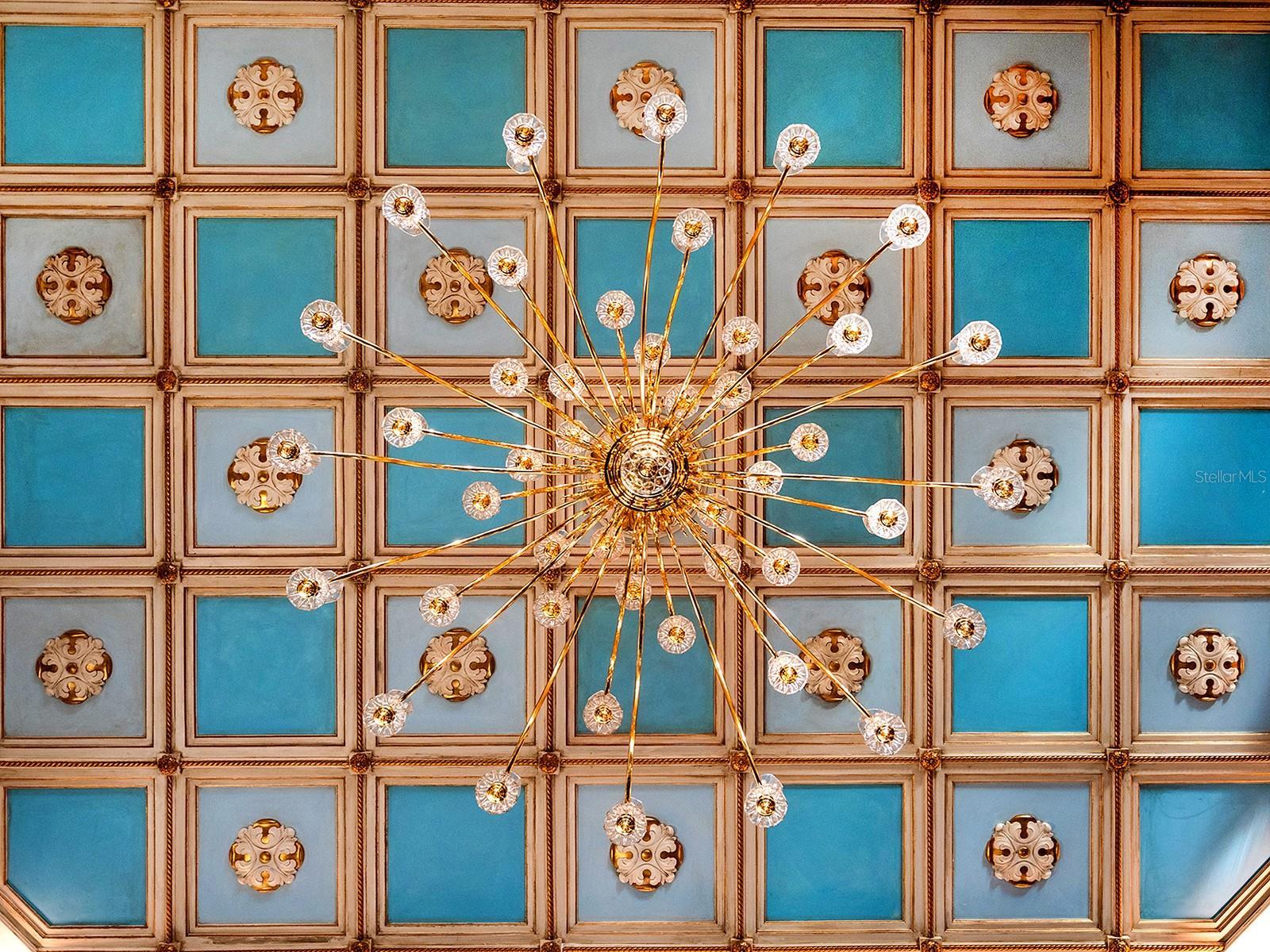 Welcome to Villa Meraviglia - A Home Beyond Imagination. An extraordinary Neo-Classical Italian Renaissance Estate set on 1.22 bayfront acres in Sarasota’s exclusive Oyster Bay Estates. Featuring 146 feet of pristine, direct frontage along the sparkling waters of Little Sarasota Bay, where sweeping panoramic views unfold, this walled and gated estate feels like a grand villa on the shores of Lake Como. A bold metallic gate, crowned with a striking Medusa head, sets the tone for the arrival experience, while two additional gold leafed gates - each equipped with electromagnetic openers - provide secure access, including a private entry to the neighboring yacht club. Encompassing more than 800 feet, the custom perimeter wall is more than a boundary: it’s a commanding architectural statement of luxury and artistry. Completely reimagined and expanded under the guidance of a classically trained Italian architect, the residence blends timeless European artistry with modern luxury. Inspired by Italy’s Villa del Balbianello and the iconic Casa Casuarina, the home showcases exquisite craftsmanship showcasing Venetian plaster walls, custom millwork gilded in 23-carat gold, hand-painted frescos, and pecky cypress ceilings. Spanning nearly 10,700 square feet of refined interiors, and over 4,000 square feet of air-conditioned space tailored for creativity and leisure, the home includes gracious entertaining areas, four ensuite bedrooms, four full and two half baths, and dual Clive Christian inspired kitchens designed for both family living and large-scale entertaining. Marvel at frescoed ceilings, stone-inlaid courtyards, and tranquil terraces that redefine elegance. Outside, lovely layered terraces and lush gardens frame peaceful, unobstructed bay views. A private dock with boat and jet-ski lifts anchors the waterfront lifestyle, while a resort style pool clad in shimmering mosaic tile, an octagonal pavilion, and a beautifully crafted summer kitchen elevate the outdoor experience to true luxury resort living. The sunken poolside kitchen is a beloved family gathering space ideal for relaxed al fresco dining. A large propane grill rises smoothly from its concealed appliance lift, while 100 year old Chicago reclaimed brick flooring, herringbone-pattern ceiling, and a beautiful maple wood dining set, create a warm, inviting ambiance. Thoughtfully curated seating areas capture breathtaking views in every direction, perfectly paired with spectacular year-round sunsets. Dive into luxury with the pool decking that elevates the iconic design of the Versace Property. Large, smooth marble stones imported directly from Italy weave a tapestry of geometric patterns that echo classic mythology. These intricate mosaics, true to Versace's legendary style, envelop the pool and its surroundings with a bold, artistic flair. A delicate Medusa mosaic graces the walkway, seamlessly connecting the pool area to the dock. Every element, from the imported Italian roof tiles to hand cast balustrades and hand painted frescos to the bespoke lighting and hardware reflects a deep commitment to authenticity, artistry, and permanence. Perfectly private yet ideally located near The Field Club and just minutes from Sarasota’s cultural scene, fine dining, and Gulf beaches, Villa Meraviglia stands as a rare masterpiece of design and craftsmanship. A world apart—where Old World elegance meets idyllic coastal living and every detail is a Living Gallery of beauty and craft.