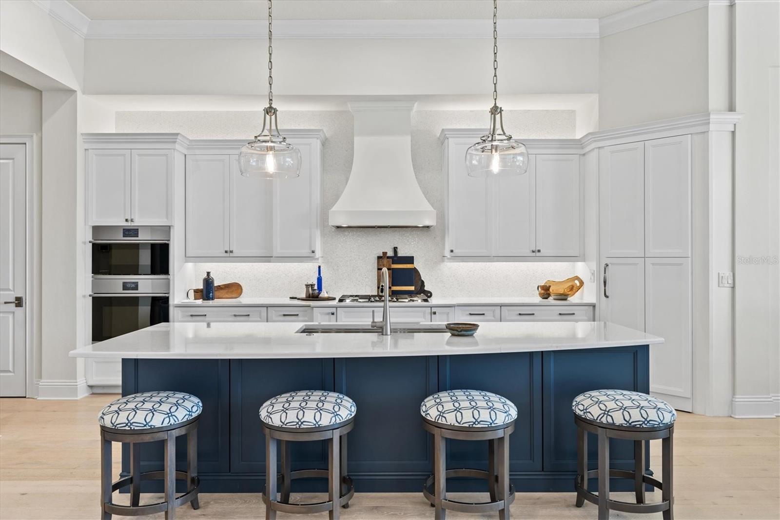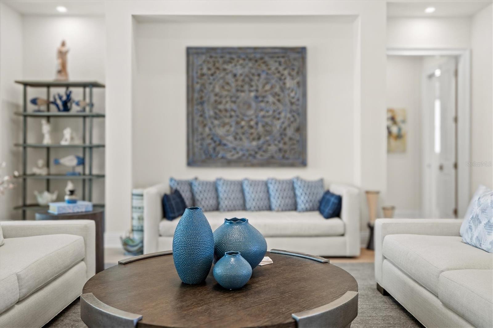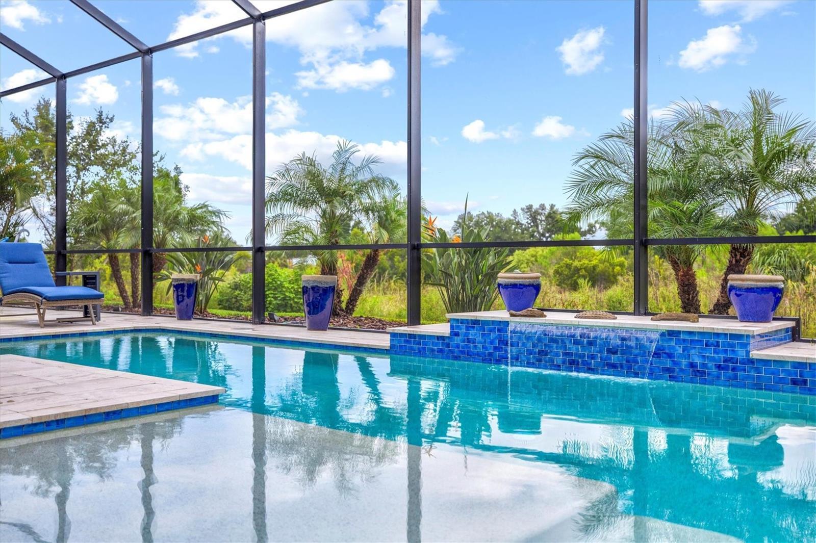 Not every home is simply built to be lived in; the most exceptional are crafted to be experienced. We invite you to discover this prestigious custom-built Lee Wetherington architectural masterpiece in LakeHouse Cove at Waterside. This home offers a floor plan that celebrates both scale and intimacy, set against the rare privacy of a protected preserve. Crafted with precision and curated with intention, it reflects the sensibilities of owners who value refinement at every turn. Step through the glass entry into soaring twelve-to-fourteen-foot ceilings, framed by expansive niches, custom lighting, and wide crown detailing. Walls of pocketing glass disappear and blend the interior with the outdoors in a way that feels effortless yet striking. Engineered wood floors flow through open living spaces, while an Arhaus Dandelion chandelier anchors the main gathering room with quiet drama. The kitchen is designed as both a showpiece and a place of purpose. Café Platinum appliances, including a five-in-one Advantium oven, and the custom wood hood and mantle elevate the space. A Ruvati forty-five-inch workstation sink takes functionality to a new level with the Dual-Tier collection that converts your sink into a full workspace. Heavy-duty cookware drawers and a walk-in pantry with custom carpentry ensure beauty and function remain in balance. The designer backsplash is an opulent luster that rivals mother-of-pearl, infused with flare straight from the sea and extending from counter to ceiling, complemented by under-cabinet lighting and discreet outlets that preserve clean lines. The primary suite is a retreat defined by thoughtful scale and elegant finishes. Two oversized walk-in closets with mirrored dressing space adjoin a bath featuring dual vanities, a deep soaking tub, and a triple-head shower with dedicated lines for comfort and performance. Two additional ensuite bedrooms, an office framed by solid core double pocket doors, and a versatile bonus room complete the interior. Beyond its beauty, this home is engineered for lasting comfort. PGT Low-E impact glass, whole-house water filtration with salt-free conditioning, a Navien tankless system with rapid hot water, dual HVAC air handlers, climate-controlled storage, and exterior security cameras with NVR reflect a commitment to quality. The outdoor living environment enhances the sense of privacy with its preserve backdrop. The lanai becomes a destination of its own with a summer kitchen featuring an oversized grill, a fire table lounge, and generous dining space that invites gatherings of every scale. The custom pool, complete with waterfall, sun shelf, and programmable lighting, transforms the setting into a resort-inspired centerpiece. Professional landscaping with dramatic uplighting frames the residence, ensuring it shines just as brightly at night. LakeHouse Cove is a lifestyle shaped by thoughtful amenities and natural surroundings. Residents enjoy a resort-style pool, fitness center, and clubhouse, along with kayaking, pickleball, and bocce. Hop on the community water taxi to Waterside Place or head to the boathouse to use the community kayaks. Acres of preserve and miles of shoreline create a natural rhythm, while Waterside’s vibrant lakefront town center offers dining, culture, and convenience within moments of home. This residence is a rare opportunity to own a home where architectural artistry, meticulous craftsmanship, and an extraordinary lifestyle come together in harmony.