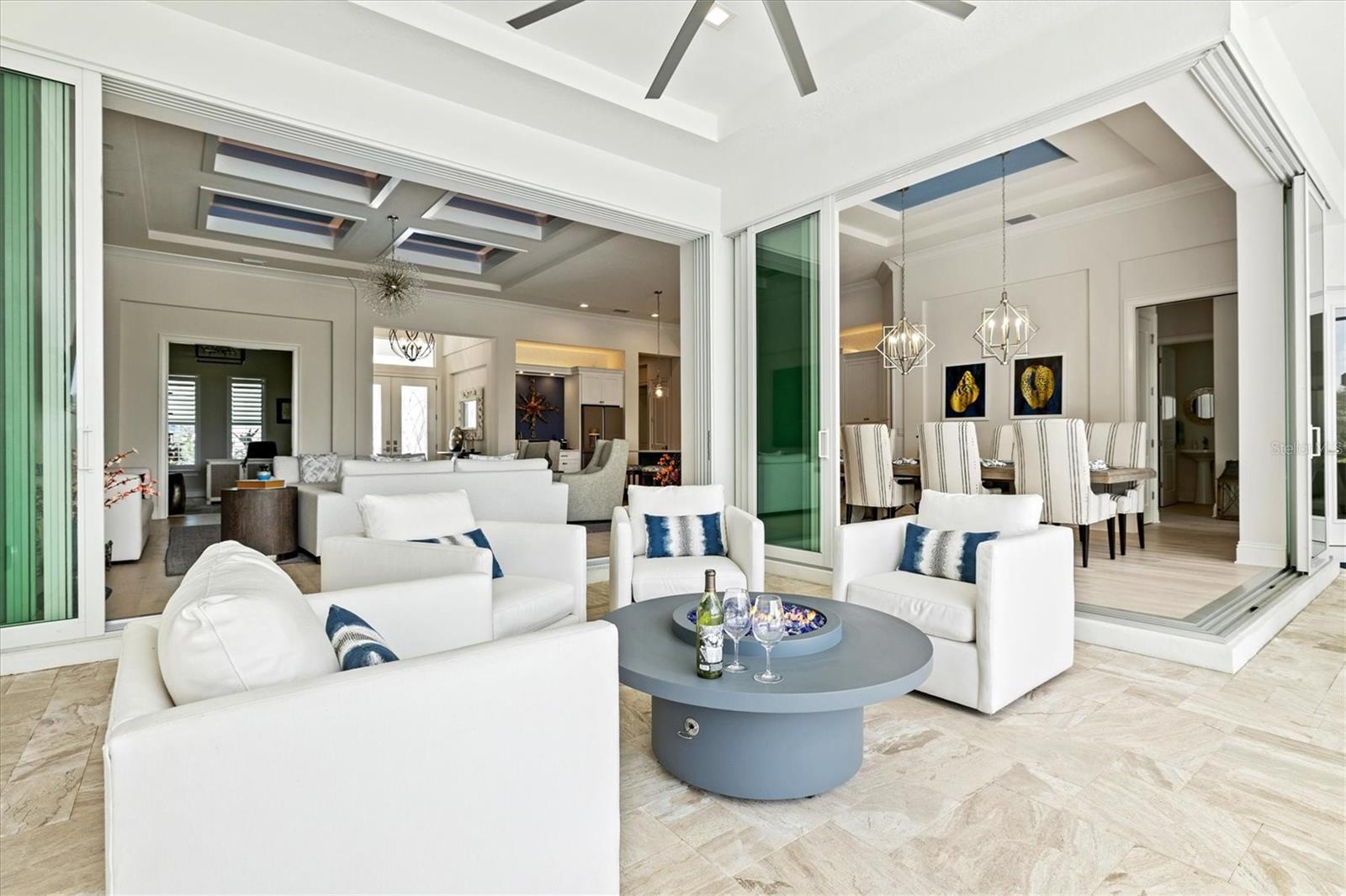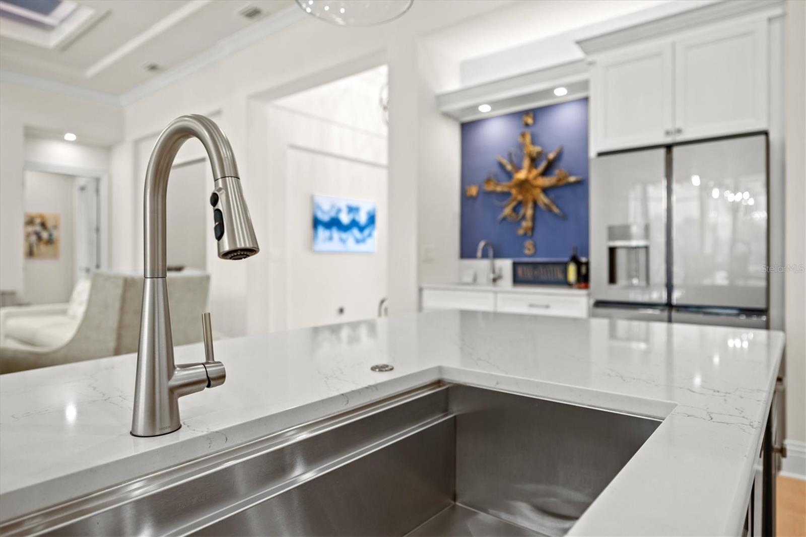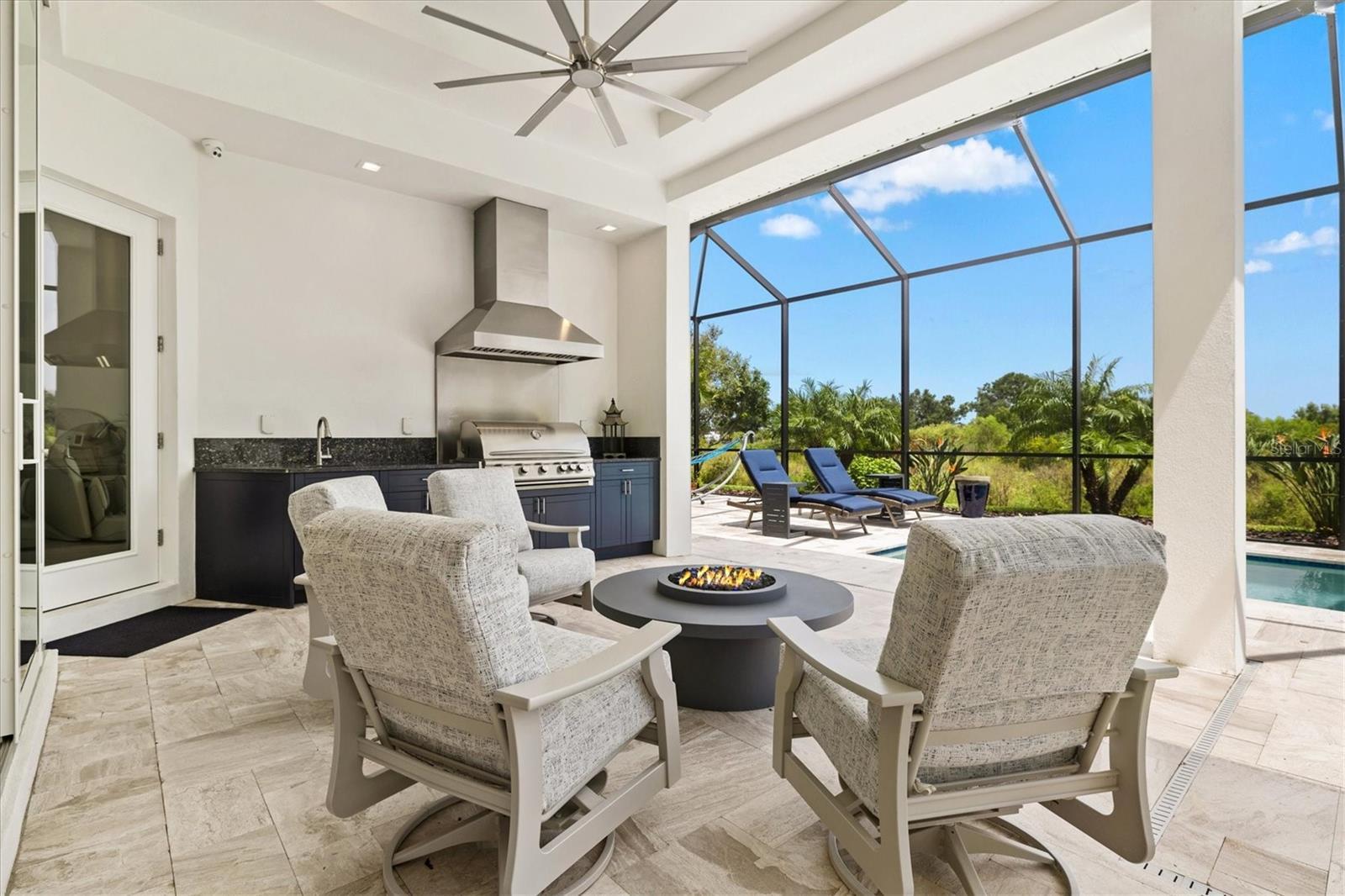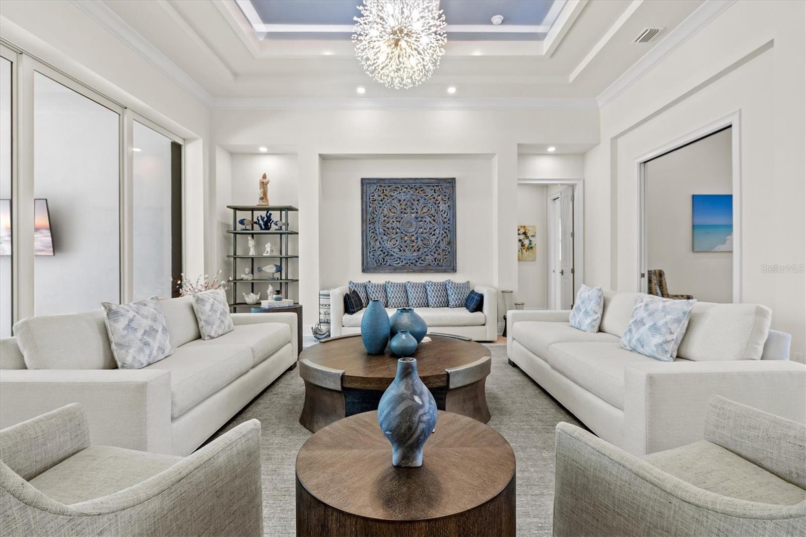 Not every home is simply built to be lived in; the most exceptional are crafted to be experienced. We invite you to discover this prestigious custom-built Lee Wetherington architectural masterpiece in LakeHouse Cove at Waterside. This home offers a floor plan that celebrates both scale and intimacy, set against the rare privacy of a protected preserve. Crafted with precision and curated with intention, it reflects the sensibilities of owners who value refinement at every turn. Step through the glass entry into soaring twelve-to-fourteen-foot ceilings, framed by expansive niches, custom lighting, and wide crown detailing. Walls of pocketing glass disappear and blend the interior with the outdoors in a way that feels effortless yet striking. Engineered wood floors flow through open living spaces, while an Arhaus Dandelion chandelier anchors the main gathering room with quiet drama. The kitchen is designed as both a showpiece and a place of purpose. Café Platinum appliances, including a five-in-one Advantium oven, and the custom wood hood and mantle elevate the space. A Ruvati forty-five-inch workstation sink takes functionality to a new level with the Dual-Tier collection that converts your sink into a full workspace. Heavy-duty cookware drawers and a walk-in pantry with custom carpentry ensure beauty and function remain in balance. The designer backsplash is an opulent luster that rivals mother-of-pearl, infused with flare straight from the sea and extending from counter to ceiling, complemented by under-cabinet lighting and discreet outlets that preserve clean lines. The primary suite is a retreat defined by thoughtful scale and elegant finishes. Two oversized walk-in closets with mirrored dressing space adjoin a bath featuring dual vanities, a deep soaking tub, and a triple-head shower with dedicated lines for comfort and performance. Two additional ensuite bedrooms, an office framed by solid core double pocket doors, and a versatile bonus room complete the interior. Beyond its beauty, this home is engineered for lasting comfort. PGT Low-E impact glass, whole-house water filtration with salt-free conditioning, a Navien tankless system with rapid hot water, dual HVAC air handlers, climate-controlled storage, and exterior security cameras with NVR reflect a commitment to quality. The outdoor living environment enhances the sense of privacy with its preserve backdrop. The lanai becomes a destination of its own with a summer kitchen featuring an oversized grill, a fire table lounge, and generous dining space that invites gatherings of every scale. The custom pool, complete with waterfall, sun shelf, and programmable lighting, transforms the setting into a resort-inspired centerpiece. Professional landscaping with dramatic uplighting frames the residence, ensuring it shines just as brightly at night. LakeHouse Cove is a lifestyle shaped by thoughtful amenities and natural surroundings. Residents enjoy a resort-style pool, fitness center, and clubhouse, along with kayaking, pickleball, and bocce. Hop on the community water taxi to Waterside Place or head to the boathouse to use the community kayaks. Acres of preserve and miles of shoreline create a natural rhythm, while Waterside’s vibrant lakefront town center offers dining, culture, and convenience within moments of home. This residence is a rare opportunity to own a home where architectural artistry, meticulous craftsmanship, and an extraordinary lifestyle come together in harmony.