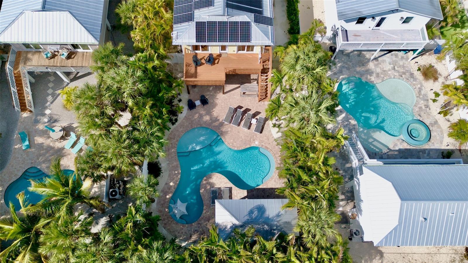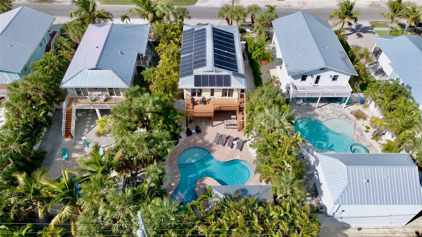 Under contract-accepting backup offers. Welcome to Cabana Breeze, an elevated, eco-friendly retreat on the coveted north end of Anna Maria Island. Complete with solar panels—this four-bedroom, two-bath home sits just a short walk from Anna Maria City Beach and steps from Pine Avenue’s popular shops and restaurants. The outdoor oasis features a large lagoon-style heated pool with in-water seating, two shaded cabanas for dining and bar lounging, and a recreation room with foosball, TV, and a tiki bar. With its prime location and resort-style amenities, Cabana Breeze also makes an excellent investment as a high-performing vacation rental. Inside, the open great room offers coastal charm with comfortable seating, wood floors, a modern dining area, and a updated kitchen with granite counters, stainless steel appliances, and a breakfast bar. Sleeping arrangements include two king bedrooms—both with patio access—plus two queen bedrooms and a queen sleeper sofa for added flexibility. The primary suite features a walk-in shower and double vanity, while the remaining bedrooms share a well-appointed hall bath. Combining sustainable living, an exceptional location, and strong rental appeal, Cabana Breeze is the perfect blend of island comfort, convenience, and investment potential. Don’t miss your chance to own this exceptional AMI retreat- call today to schedule your private showing.