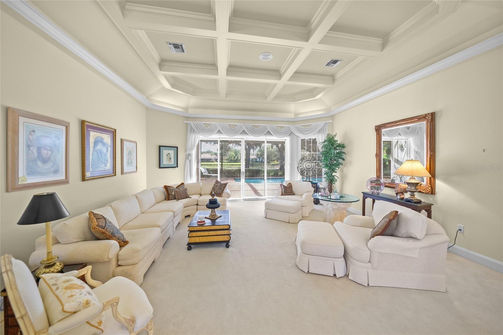 - Built-in Features, Cathedral Ceiling(s), Ceiling Fans(s), Coffered Ceiling(s), Crown Molding, Eat-in Kitchen, High Ceilings, Kitchen/Family Room Combo, Open Floorplan, Solid Surface Counters, Solid Wood Cabinets, Split Bedroom, Stone Counters, Vaulted Ceiling(s), Walk-In Closet(s), Window Treatments
