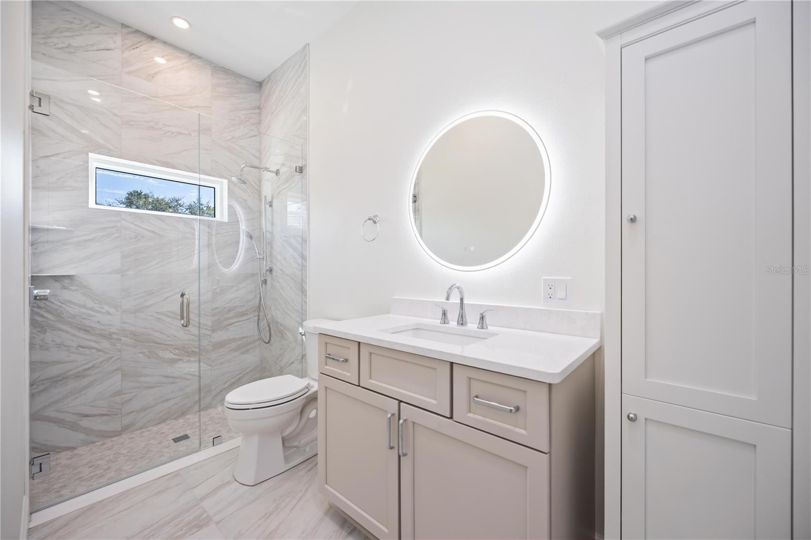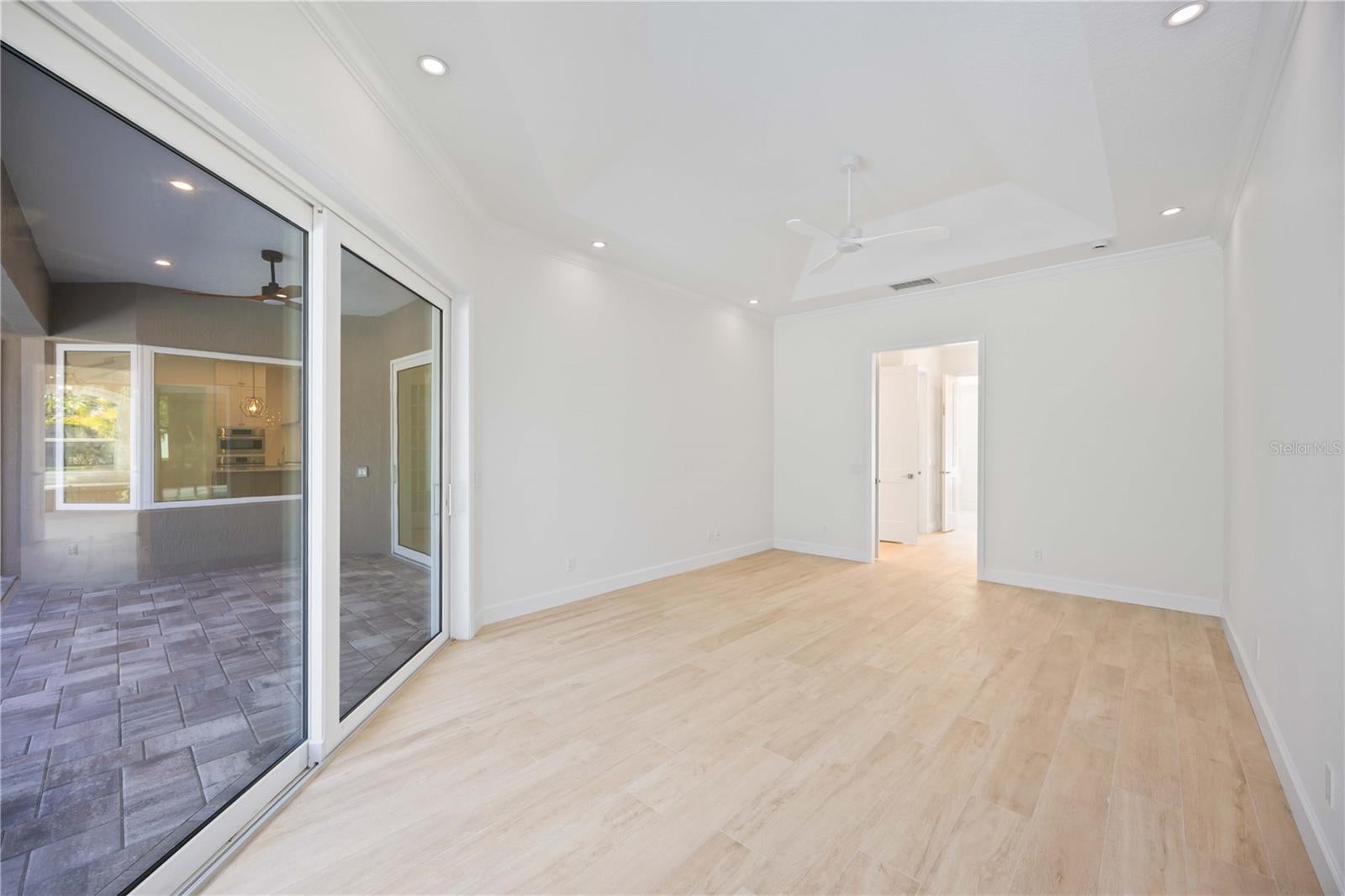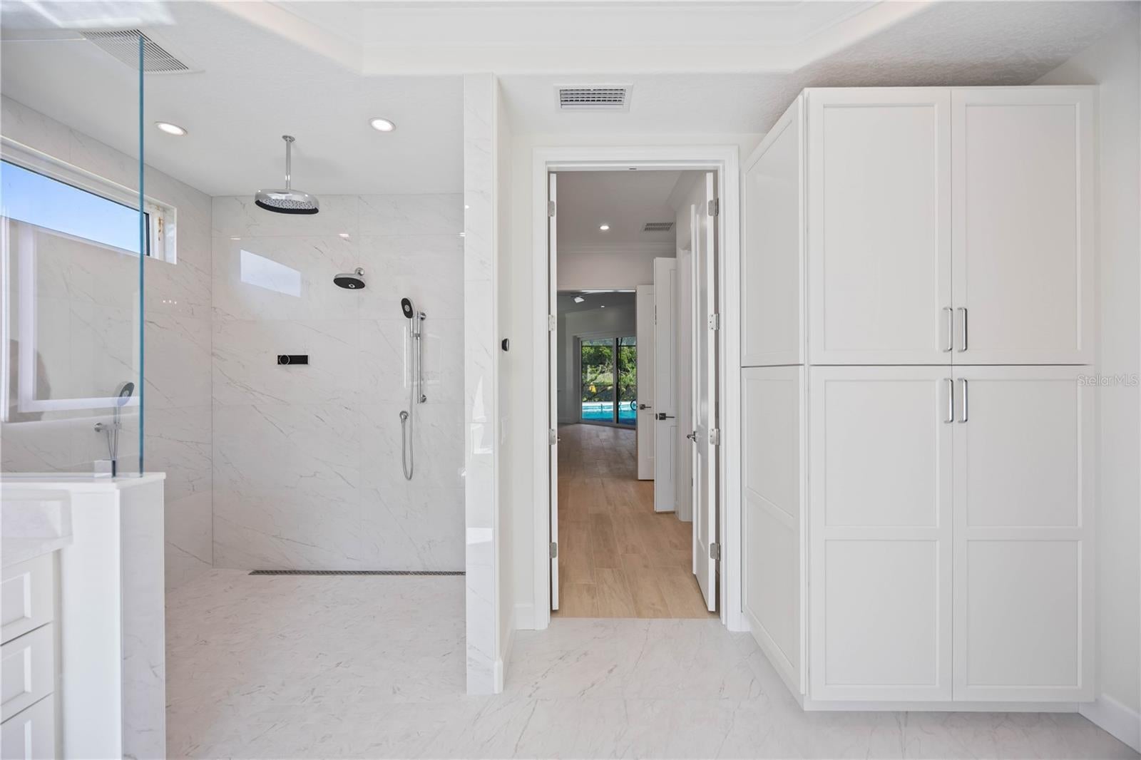 Welcome to a comprehensively renovated, beautiful home in the sought-after, gated community of Lakewood Ranch Country Club. The meticulous transformation of this residence affords a lifestyle of relaxation and outdoor living. This home sits on a one-third acre private lot with over 120 feet of frontage, and it backs up to a wide expanse of green space. Upon entering this home, you will be pleasantly surprised by the decorative glass entry doors, high ceilings, sliding glass doors overlooking the pool, and the 8-foot, shaker-style solid core interior doors. Take note of the magnificent plank wood-look porcelain tile flooring throughout the entire living area, new lighting, and modern ceiling fans. In addition to 4 bedrooms, this home includes a living room, a family room, and a flex room that could be used as a home office or formal dining room. The chef-inspired kitchen is equipped with solid wood shaker-style cabinets, Cambria quartz countertop, striking tile backsplash, large island, breakfast nook that overlooks the pool, and all new Bosch appliances, which include a built-in microwave, a convection oven, and a 5-burner natural gas cooktop. All 3 bathrooms have been completely renovated with new showers/faucets, marble-look porcelain tile, upgraded shower glass, Cambria quartz counters, and solid wood shaker-style cabinets. Bedrooms 2 and 3 share the expansive hall bath and bedroom 4 utilizes the pool bath. The primary suite has a large bedroom with sliding glass doors that lead to the heated pool and spa. Two spacious walk-in closets with custom built-ins will not disappoint. The spa-inspired primary bath is luxurious with its large soaking tub that includes a heated hydro massage, dual sinks, private water closet, and a linen cabinet. The walk-in shower has a rain head, shower head, 2 hand-held shower heads, a bench, and upgraded shower controls. Entertaining is effortless with multiple gathering areas that spill into the kitchen and outdoor lanai overlooking the pool and spa. Bring on the pool parties and dine al fresco with your fully redesigned outdoor kitchen which showcases granite countertops, weatherproof cabinets, a Lynx Sedona gas grill, stainless steel sink, and an under cabinet refrigerator. The pool cage, lanai paver deck, and resurfaced pool with Marquis quartz finish and glass waterline tile are recently installed-2024. The home features PGT impact-rated, insulated, and low energy windows and front door(2023). A new roof was installed in 2021. The side-entry, three-car garage is spacious, with a new epoxy flooring and garage door openers. With a low monthly HOA fee of approx $13 per month, you can also take advantage of optional membership opportunities at the Lakewood Ranch Golf and Country Club, which include four golf courses, a state-of-the-art fitness center, clubhouse, junior Olympic-sized pool, tennis, pickleball, and diverse dining opportunities. In Lakewood Ranch, you'll enjoy a vibrant lifestyle filled with community events, miles of scenic walking and biking trails, and beautifully maintained parks. The home is centrally located near fine dining and shopping at Waterside Place and University Town Center, with convenient access to both Sarasota and Tampa airports, and just a short drive from some of the nation’s most beautiful beaches. Don’t miss your chance to own this remarkable property in Lakewood Ranch Country Club—your perfect blend of luxury and comfort awaits! Schedule your private showing today.