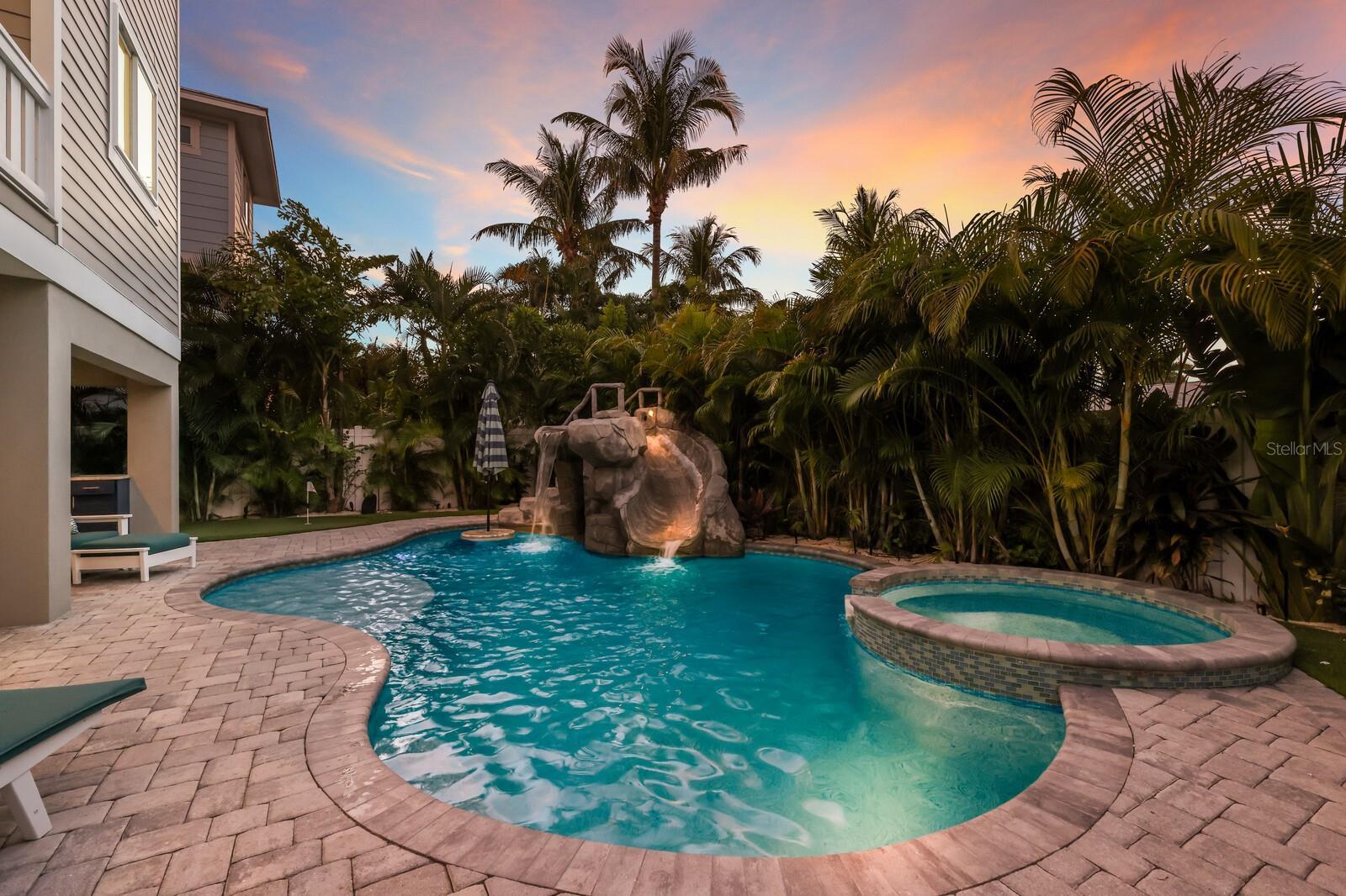 Where beach living meets everyday comfort. Perfectly located between the Gulf and the Bay, this 7-bedroom fabulous turnkey home offers water views, thoughtful updates, and easy access to the beach and Bridge Street shops, dining, and entertainment. It’s an ideal spot for enjoying island life or hosting visiting family and friends. The main level features an open living, kitchen, and dining space that flows onto two covered balconies with Gulf and Bay views. Recent improvements include new appliances, updated lighting, designer living room and kitchen furnishings, upgraded WiFi, and a whole-house Sonos system—making the home feel fresh, functional, and move-in ready. Two ensuite bedrooms are on this floor, while four more ensuite rooms plus a den/office are upstairs, offering plenty of room and privacy. Outside, enjoy your own private backyard retreat with new turf, mini golf, lush landscaping, landscape lighting, new gutters, and a mosquito misting system for easy care and extra comfort. The heated pool features a sun shelf, spa, and a fun waterslide—plus a pool chiller to keep the water comfortable year-round. Generous patio seating makes entertaining easy, and the new outdoor kitchen lets you cook and gather outdoors with ease. The outdoor shower is perfect after a long day at the beach. At the end of the street, you’ll also find a shared day dock on the bay side — ideal for parking a boat, jet skis, or simply enjoying time on the water. Cap it all off with a rooftop deck offering 360-degree views—a favorite spot for morning coffee or sunset cocktails. Whether you want a full-time retreat or a high-demand rental opportunity on Anna Maria Island, this home delivers on location, lifestyle, upgrades, and space.