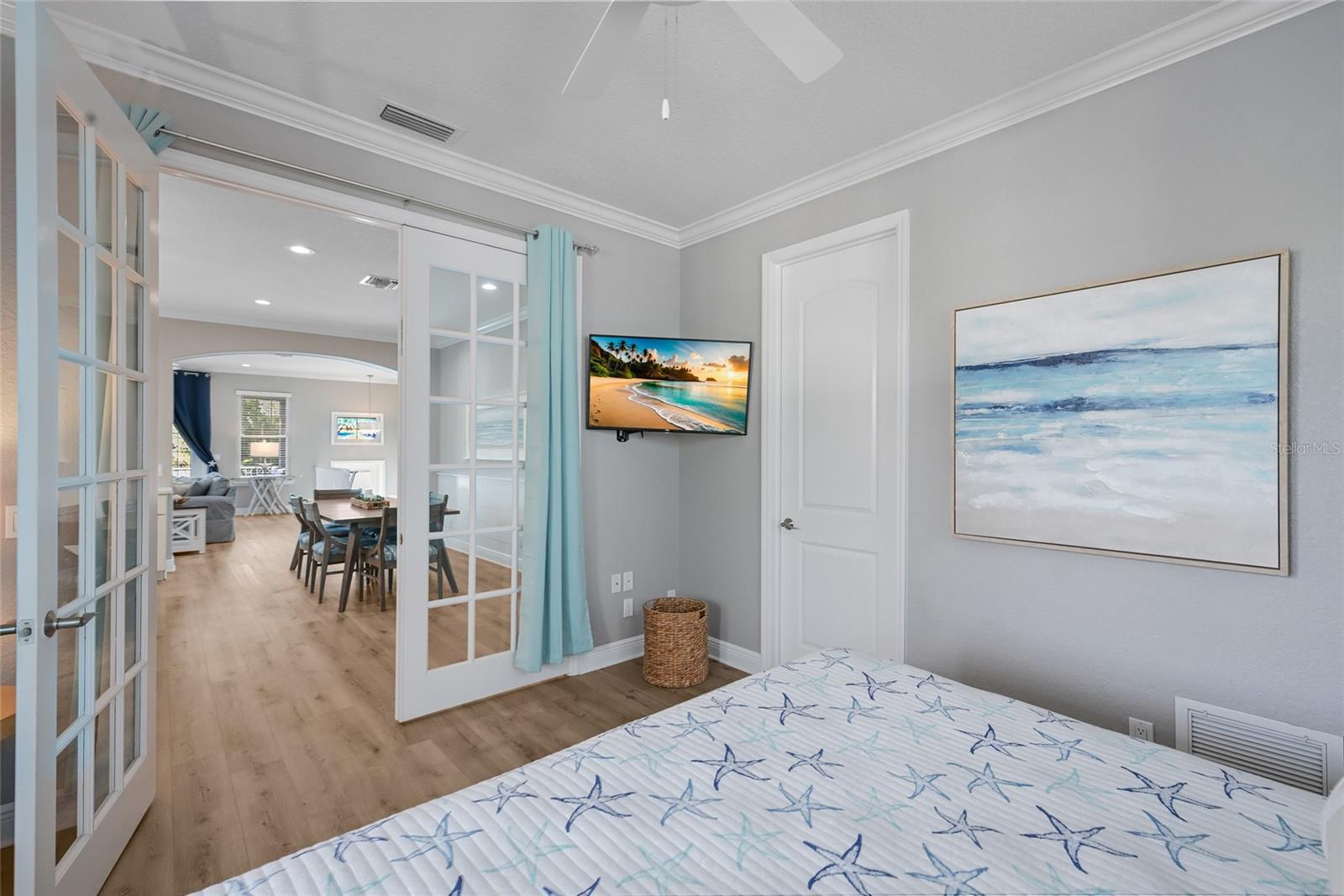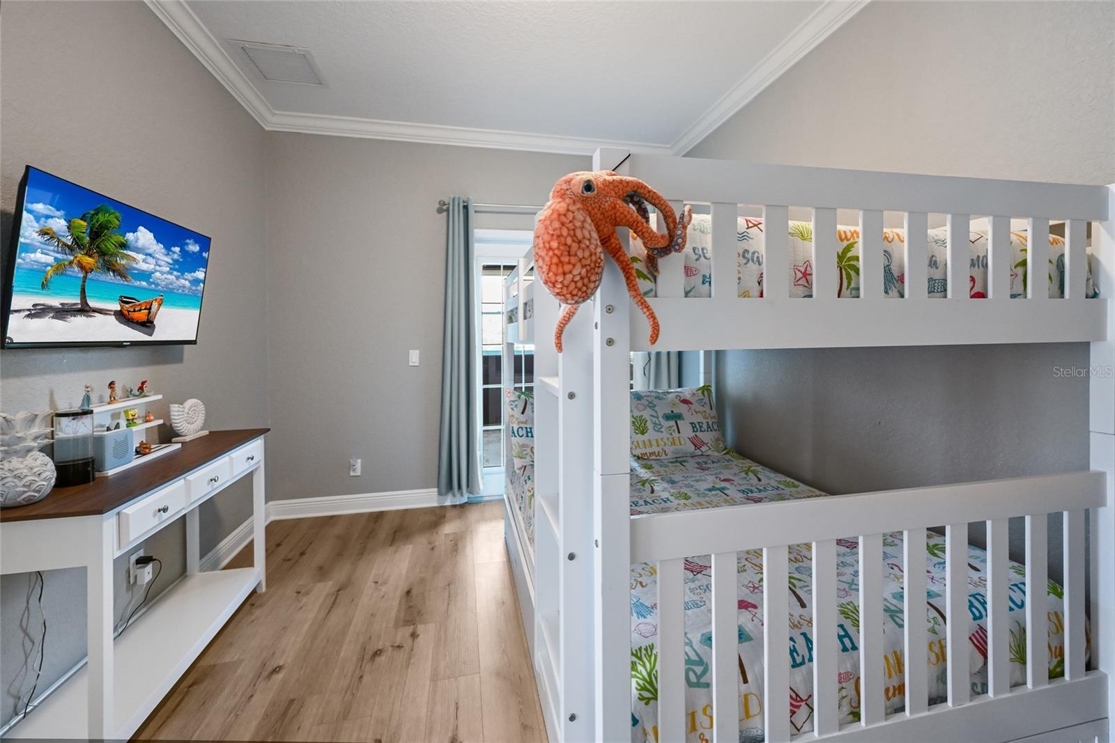 Location, location, Location. Welcome to Tropical Paradise. What more can you ask for in the City of Anna Maria? This home checks all the boxes. It is three houses and 200 steps to the calm beaches at Bayfront Park. It is an easy walk to the almost complete City Pier, the Waterfront Restaurant and all the other shops and restaurants on Pine Ave. It is the perfect home for any of your needs. Make it your full-time residence and enjoy island living year-round. Use it as a second home, turn it into a fabulous vacation rental or combine the two. This home was built in 2007 and is elevated. It was also constructed with hurricane impact windows and doors. It also has superior hurricane protection with a metal roof. All these factors lower your insurance costs dramatically. The home has 2567 SF of air-conditioned space on two floors. Two new HVAC units and a new hot water heater were installed in 2025. When you pull up in front of the home you are greeted by two large decks overlooking the street with views of Tampa Bay. These decks have both been re-surfaced with new wood look ceramic tiles. The stairs and deck leading to the front door have been rebuilt with new composite decking. There is a large double wide car garage door opening into a massive 4 car garage that goes from the front to the back of the home. There is a direct access staircase to the living space from the garage. Go up the front stairs onto the first floor of the home. All the flooring throughout the living area, including the stairs, has been re-done with weatherproof luxury vinyl planking. There is a large open-air floor plan with a comfortable great room, huge dining area and updated kitchen with granite counters, a tile back splash, breakfast bars, and stainless-steel appliances. Also on this level is one of the four bedrooms. It has a Jack and Jill bathroom with a re-tiled walk-in shower and a new vanity. The kitchen and bedroom both have access to a rear porch with a spiral staircase leading down to the backyard and pool. Going up to the third floor, you have two added bedrooms, a hallway bath with a new vanity, a large laundry room and a spacious primary suite. Both bedrooms have French doors with access to a rear enclosed porch. The hallway bath has a private bathtub and a new vanity. Now walk into the massive primary bedroom. There are two walk-in closets and a private bath suite with a walk-in shower, jacuzzi soaking tub and a new large dual vanity. There are French doors from the primary bedroom opening onto the front balcony. From here, there are views of Tampa Bay and the Skyway Bridge. You can also enjoy the sunrise with your morning coffee while relaxing outside. On each level you will find a large storage closet. These are a future elevator shaft. The garage is big enough for all your toys. At the back of the garage are patio doors leading out to your private Astroturf back yard and heated pool. You can easily turn the back of the garage into gathering area overlooking the pool. The yard has an eight-foot rear fence for added privacy. From your front door, it is less than a 2-minute walk to the calm beaches of Bayfront Park, overlooking the Skyway Bridge. Here there are changing rooms, showers, gazebos, and charcoal grills for a picnic on the bay. If you prefer, the Gulf about a 10-minute walk from the house. The free AMI trolley-stop is just down the street. This home is offered turn-key furnished and presently being booked in an active rental program.